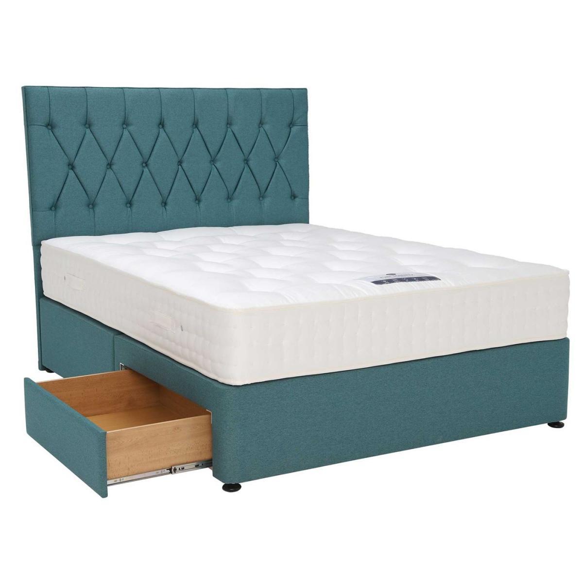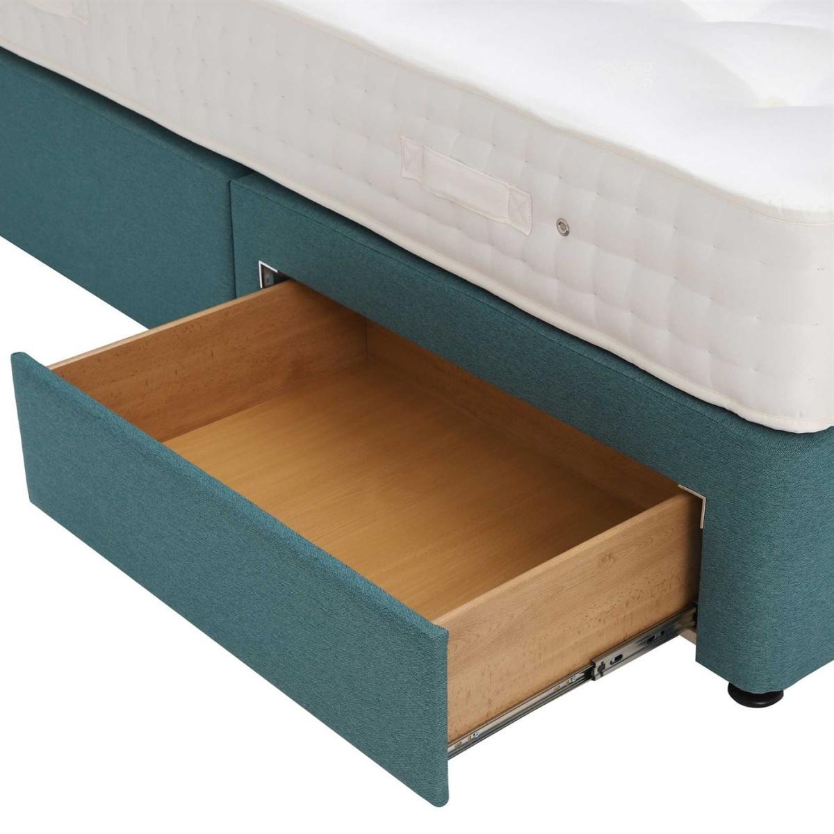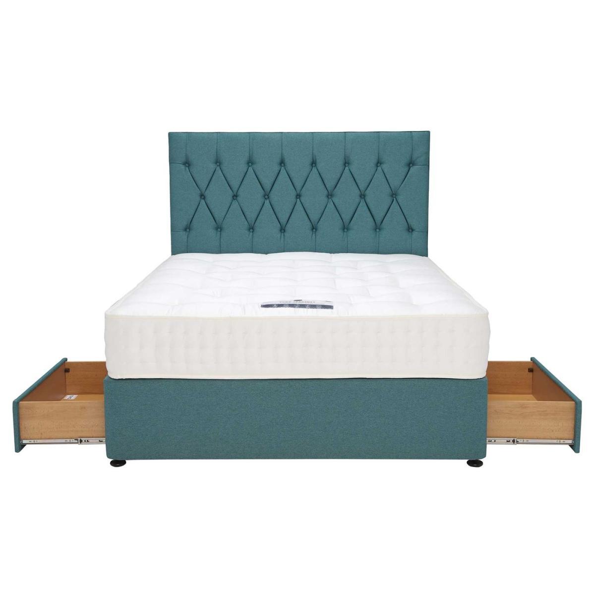 Design. A truly cosy set of the Pure Serenity Mattress and its stunning linear base that includes 2 handy storage drawers for neatly tucking away any bedroom clutter, the Pure Serenity strikes a perfect balance between style, storage and supportive comfort. Customisable to suit your space with various sizes to choose from, plenty of gorgeous fabrics and the option to add the opulent Charlesworth headboard for a strikingly regal finish, the Serenity is sure to be the crowning glory of any bed space. Please note, the headboard option will be supplied in the same fabric as chosen for the main body of the bed. Free storage upgrade to include 2 drawers as shown.