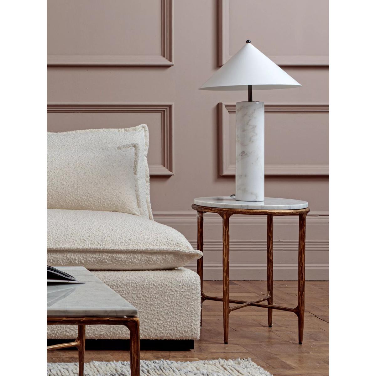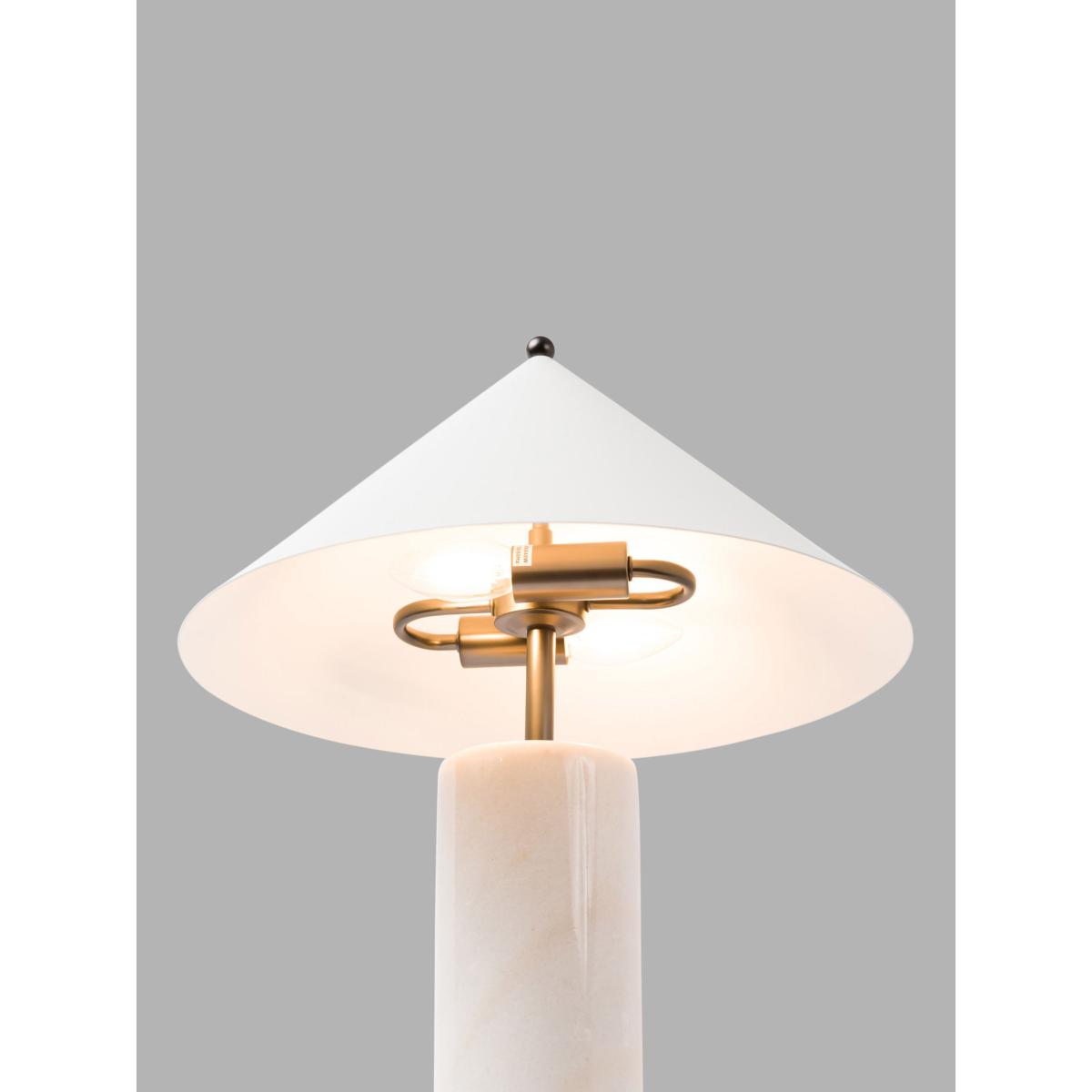 The Alaska table lamp is a striking and timeless light designed with a white marble, cylindrical base and a sleek white metal shade. This lamp is ideal for use in a living room or placed in a pair, in an entrance hall.