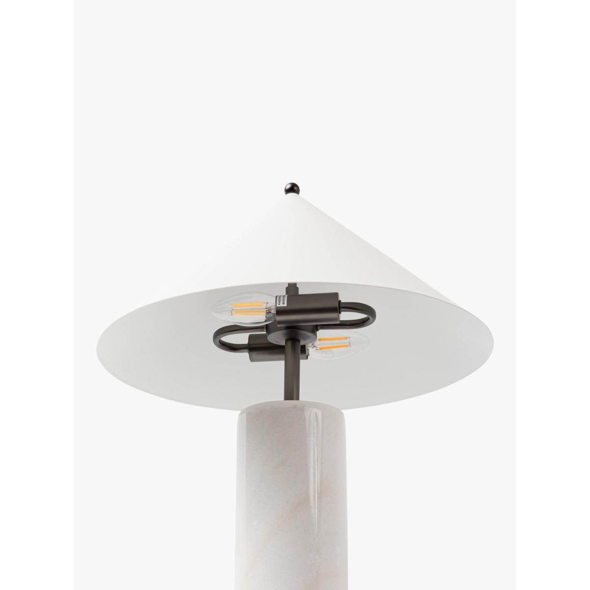 I love the clean, sophisticated look of this table lamp - the white marble base adds a touch of luxury, making it a versatile piece that works well in both contemporary and minimalist interiors. It’s ideal for pairing with neutral colour schemes or natural textures, such as wood or linen, for a cohesive aesthetic. For practical styling, consider placing it on a side table or console to create a calm, inviting atmosphere, or use it as a statement piece on a desk in a home office. Its understated elegance means it won’t overpower other décor elements, but rather enhance them with subtle refinement.