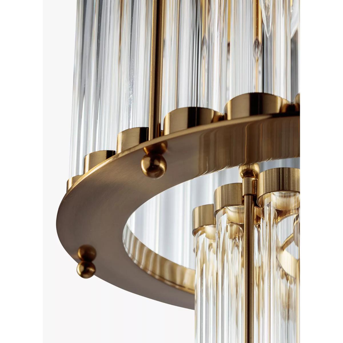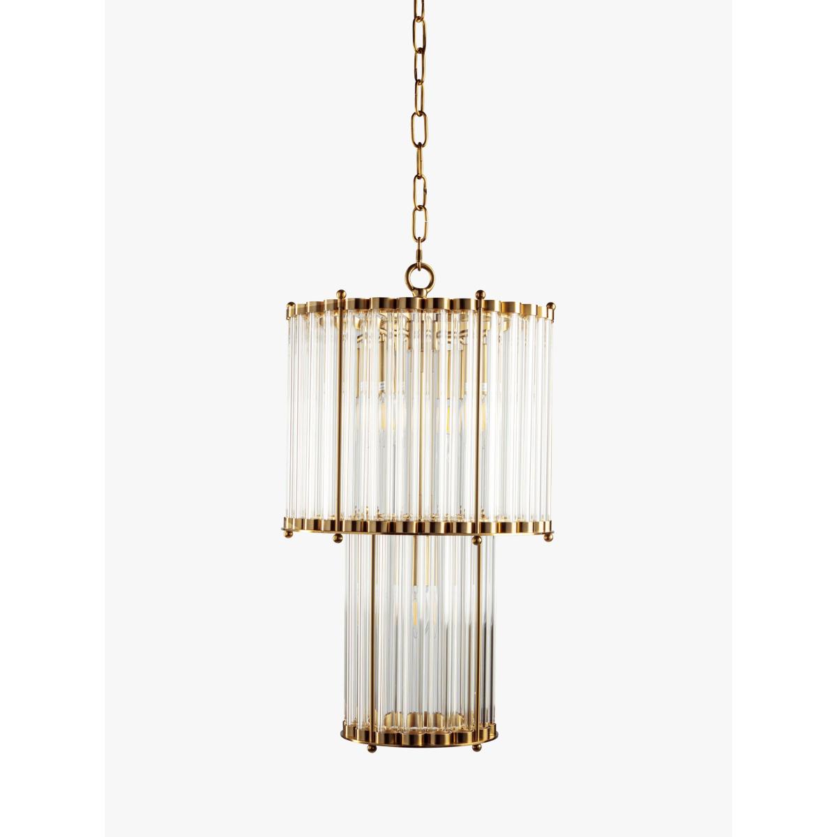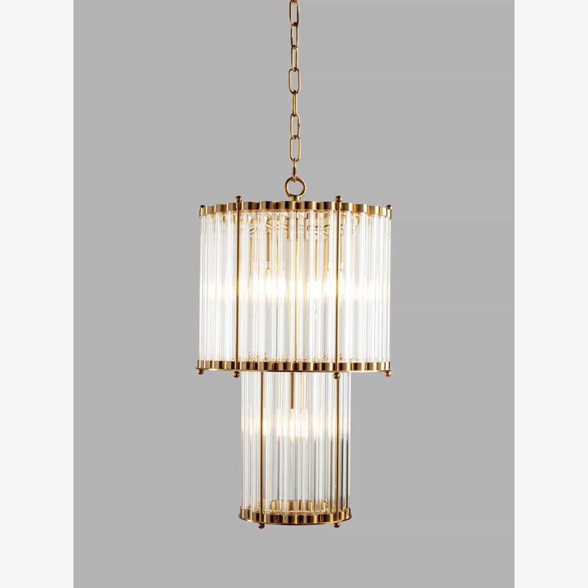 The tiered Monza ceiling light is inspired by mid-century design, perfect for use in stairwells or kitchen islands, the soft lighting is diffused through the glass rods.