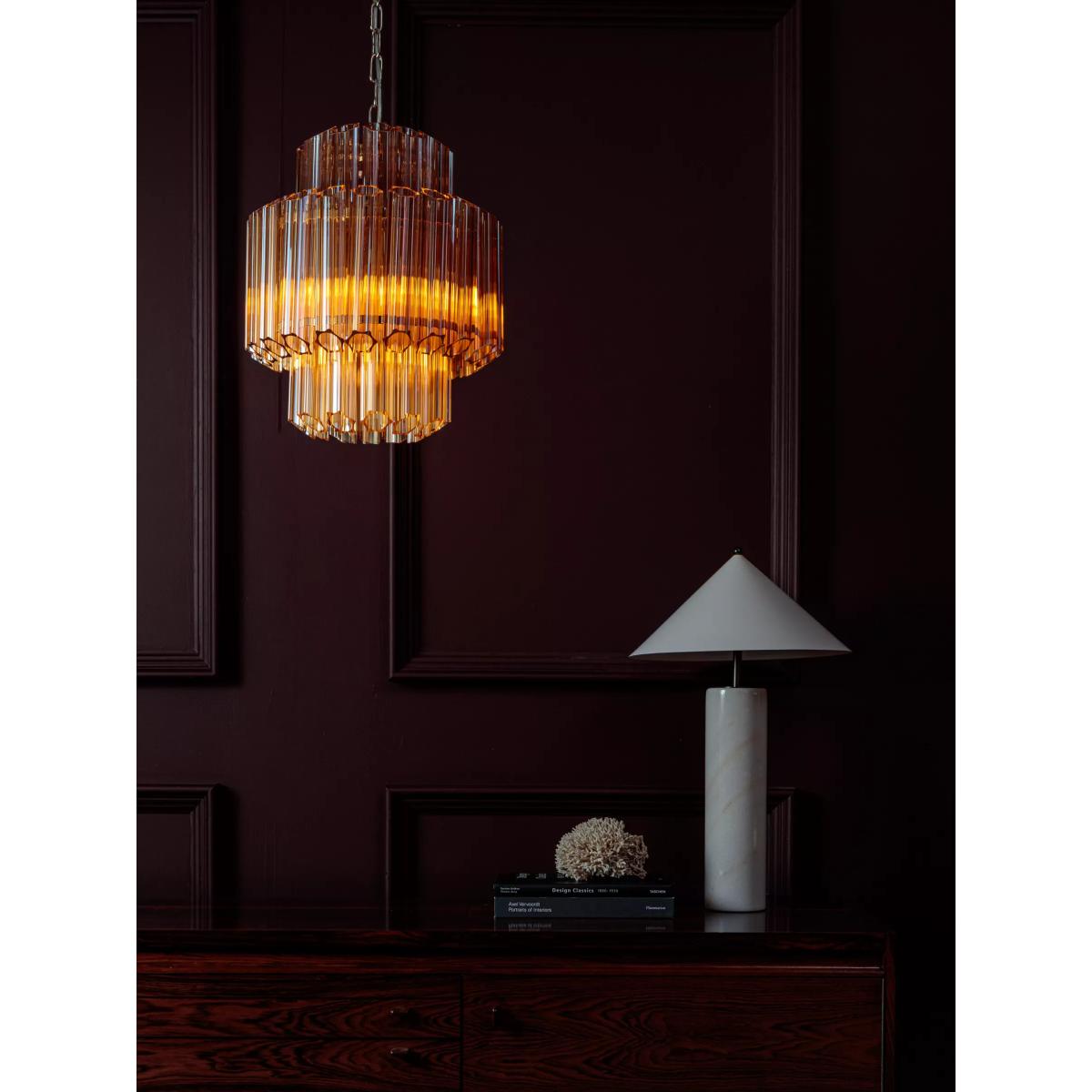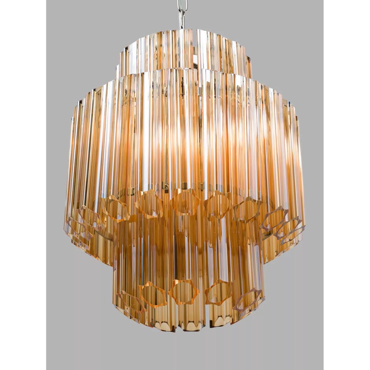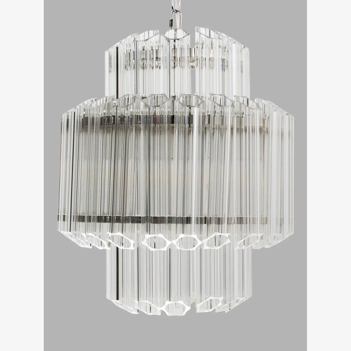 This chandelier is a great choice for adding a touch of modern glamour to both contemporary and transitional interiors. I love how its clean lines and subtle transparency create a light, airy feel, making it perfect for spaces where you want to make a statement without overwhelming the room. It works particularly well in front rooms, dining areas, or bedrooms with high ceilings. For styling, keep surrounding decor minimal and let this piece be the focal point-pair it with neutral tones or metallic accents for a cohesive look. Installing it at the centre of a room or above a dining table will maximise its visual impact, while matching its understated elegance with simple, sleek furnishings will ensure it feels integrated and stylish.