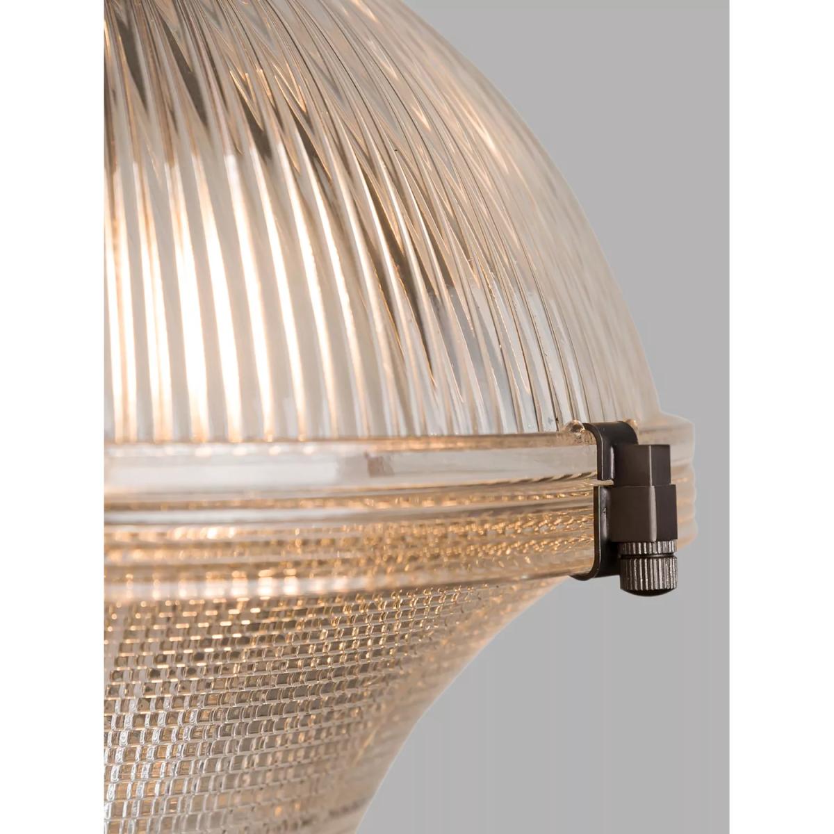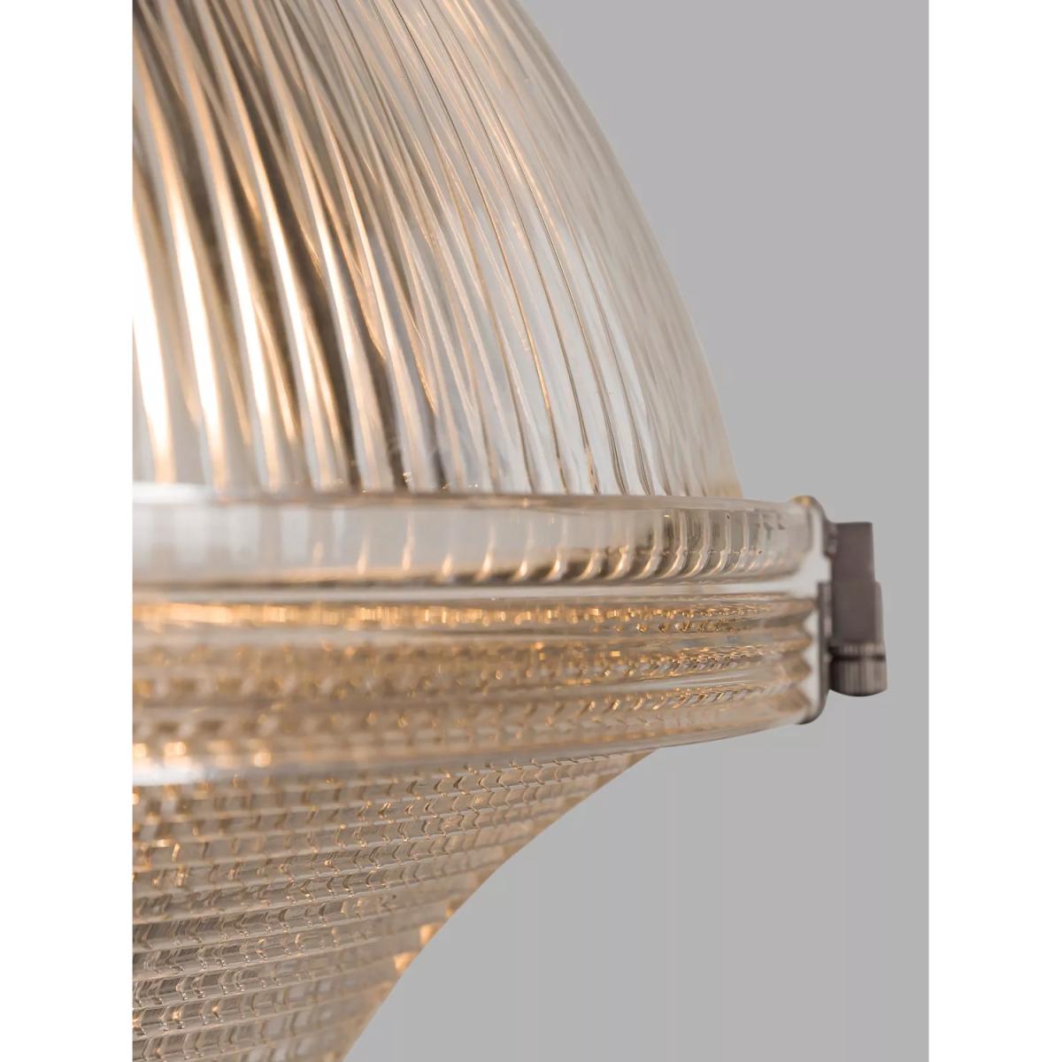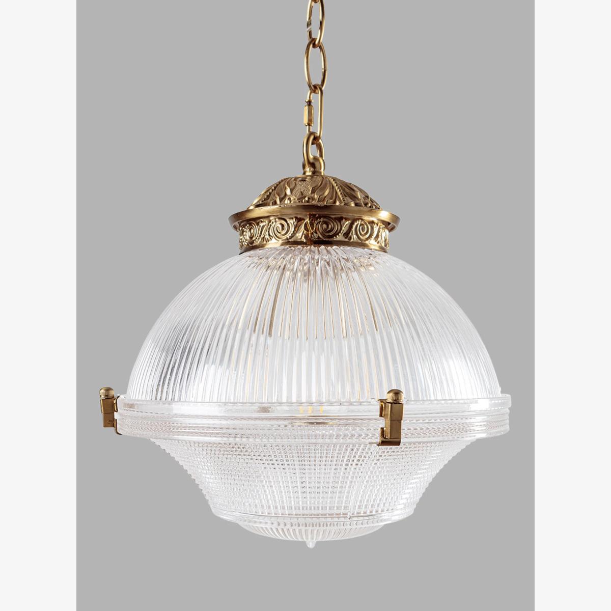 The Sloane pendant is made from prismatic and ribbed glass in the style of the Holophane lighting of the early 20th century. The two pieces of glass are delicately clamped together with decorative fixing clips. These lights are ideal for introducing some elegance to your hallway or entrance-way or they can be grouped over a bar or kitchen island.