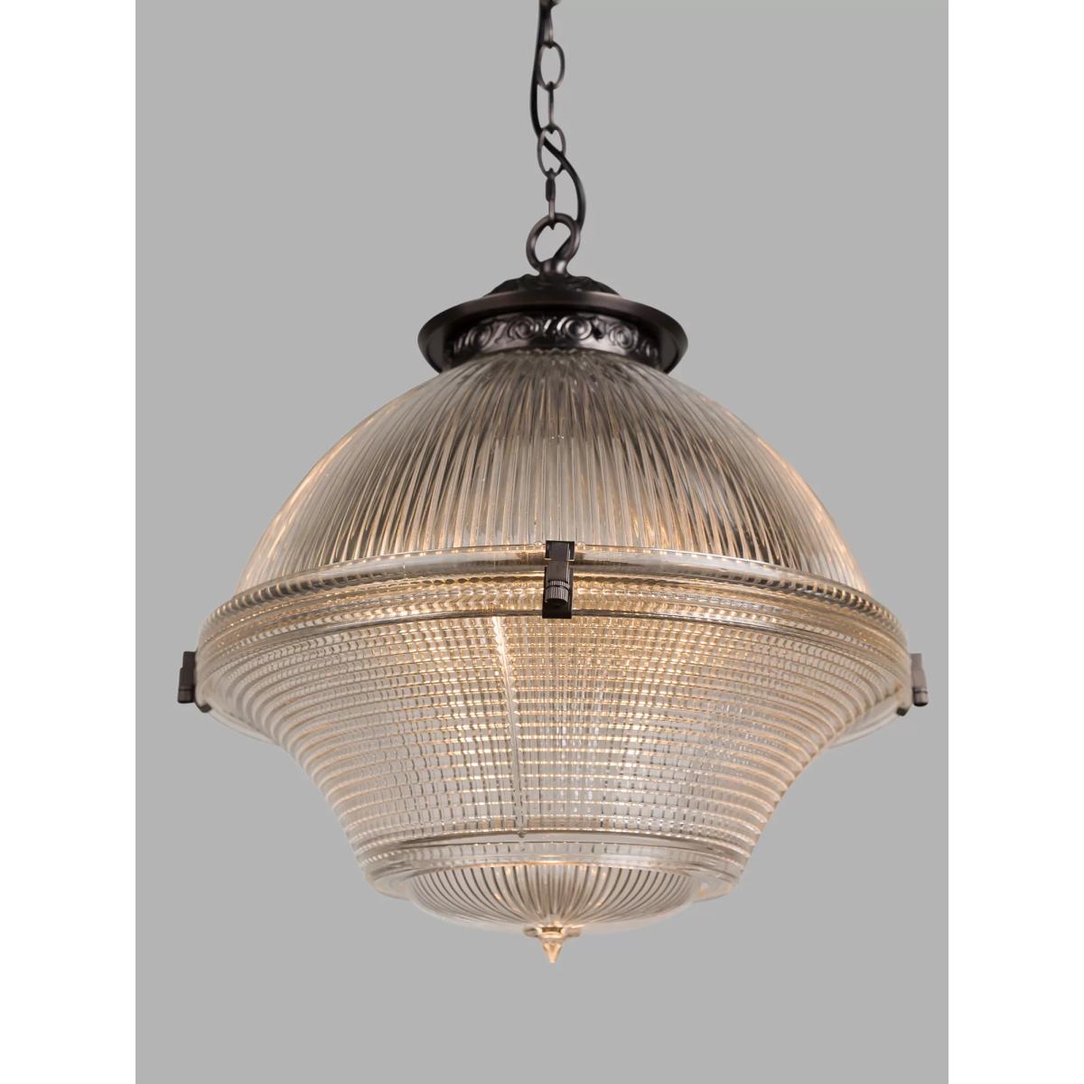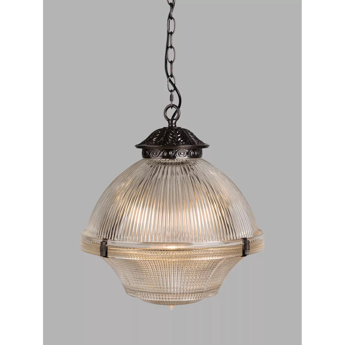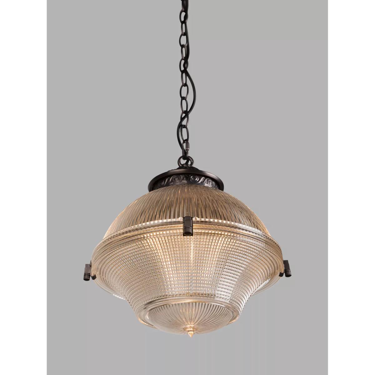 The Sloane pendant is made from prismatic and ribbed glass in the style of the Holophane lighting of the early 20th century. The two pieces of glass are delicately clamped together with decorative fixing clips. These lights are ideal for introducing some elegance to your hallway or entrance-way or they can be grouped over a bar or kitchen island.