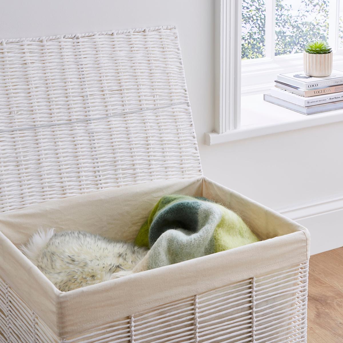 * Crafted from sturdy, robust paper rope* Add decorative storage space to your home* Designed to be hardwearing* Washable lining* Foldable and save space when not use Whether you're storing throws and blankets or toys and games, this extra large storage box is the perfect size for your home. It's fabric lining can be removed and washed for a quick refresh and the flexibility to fold when it's not in use is idea for space saving.