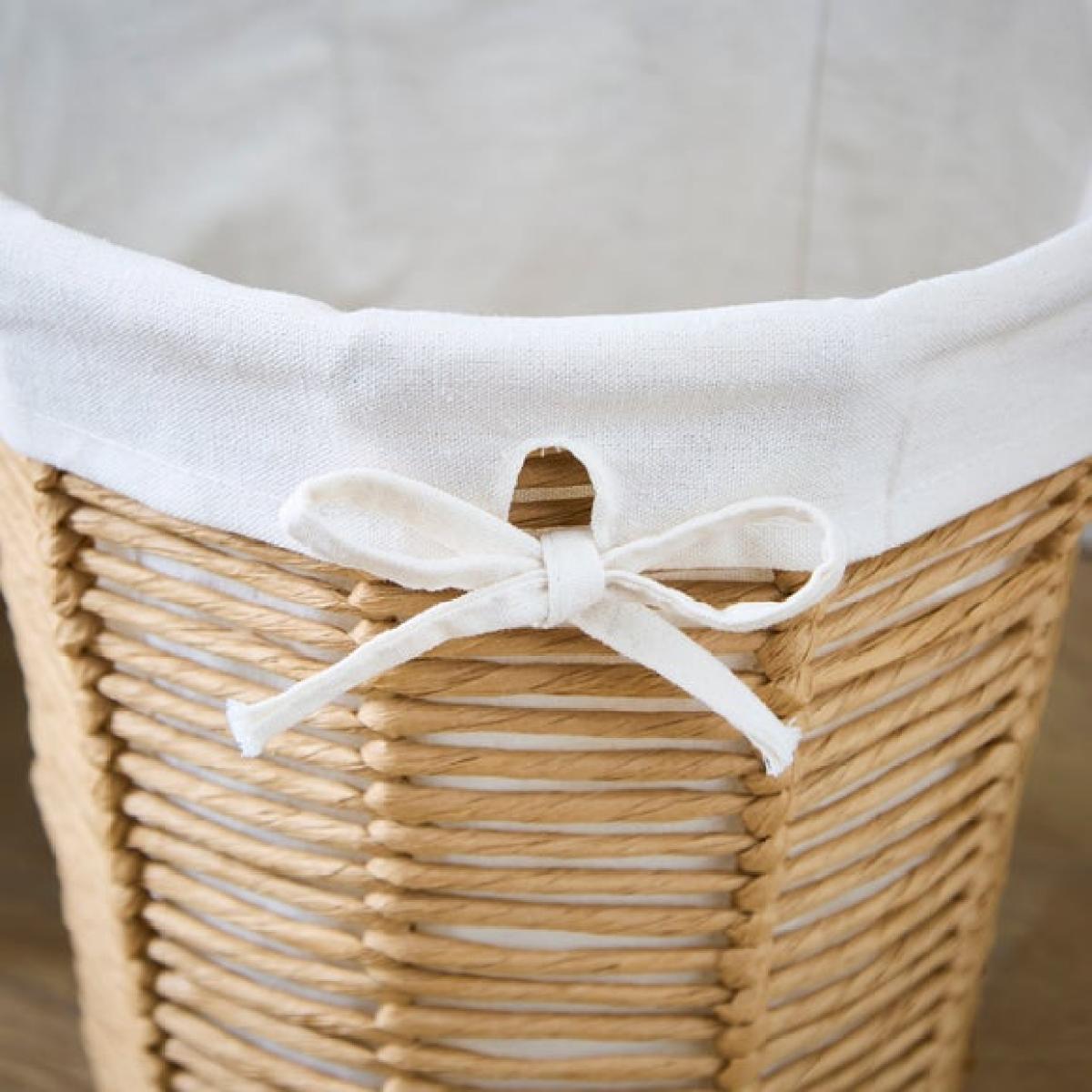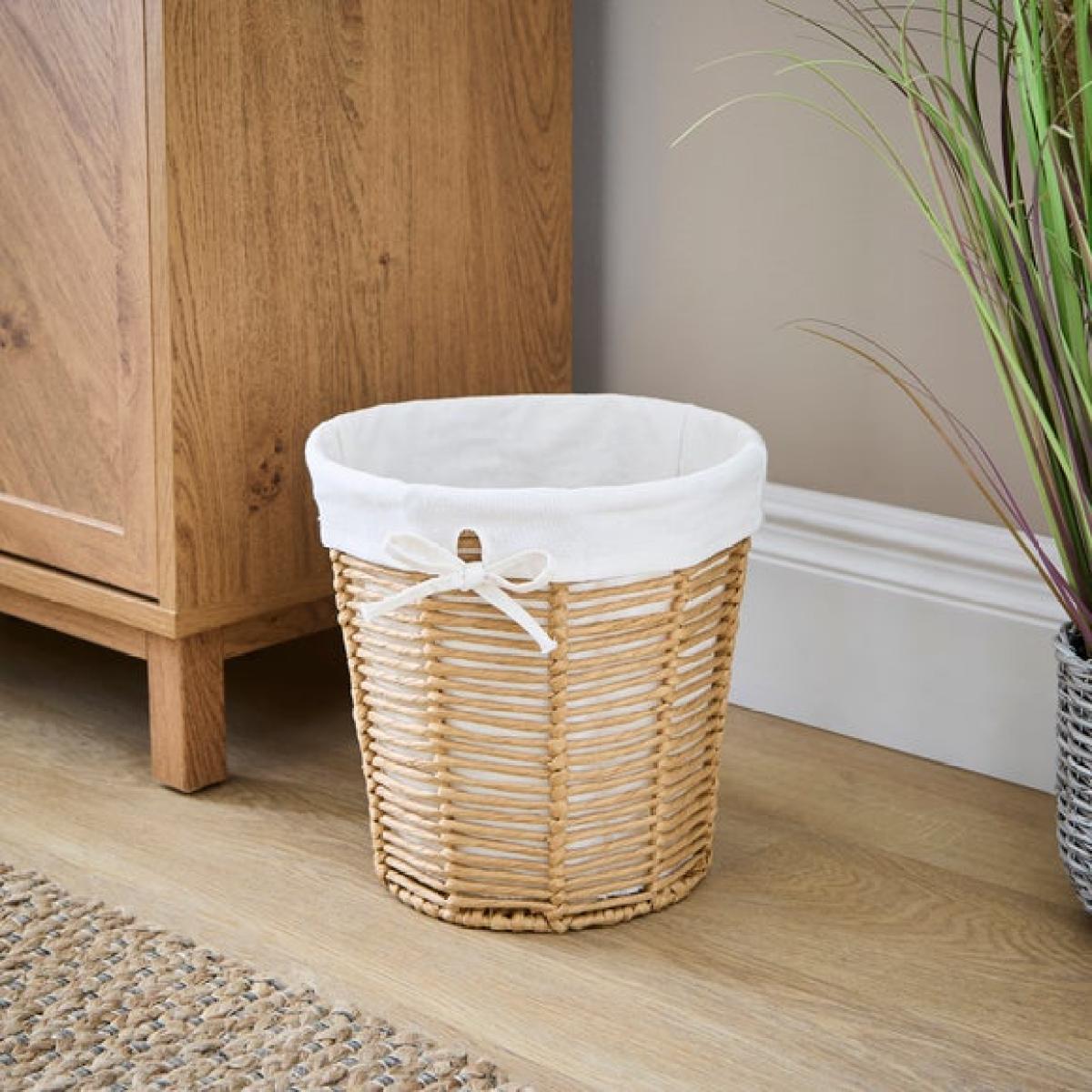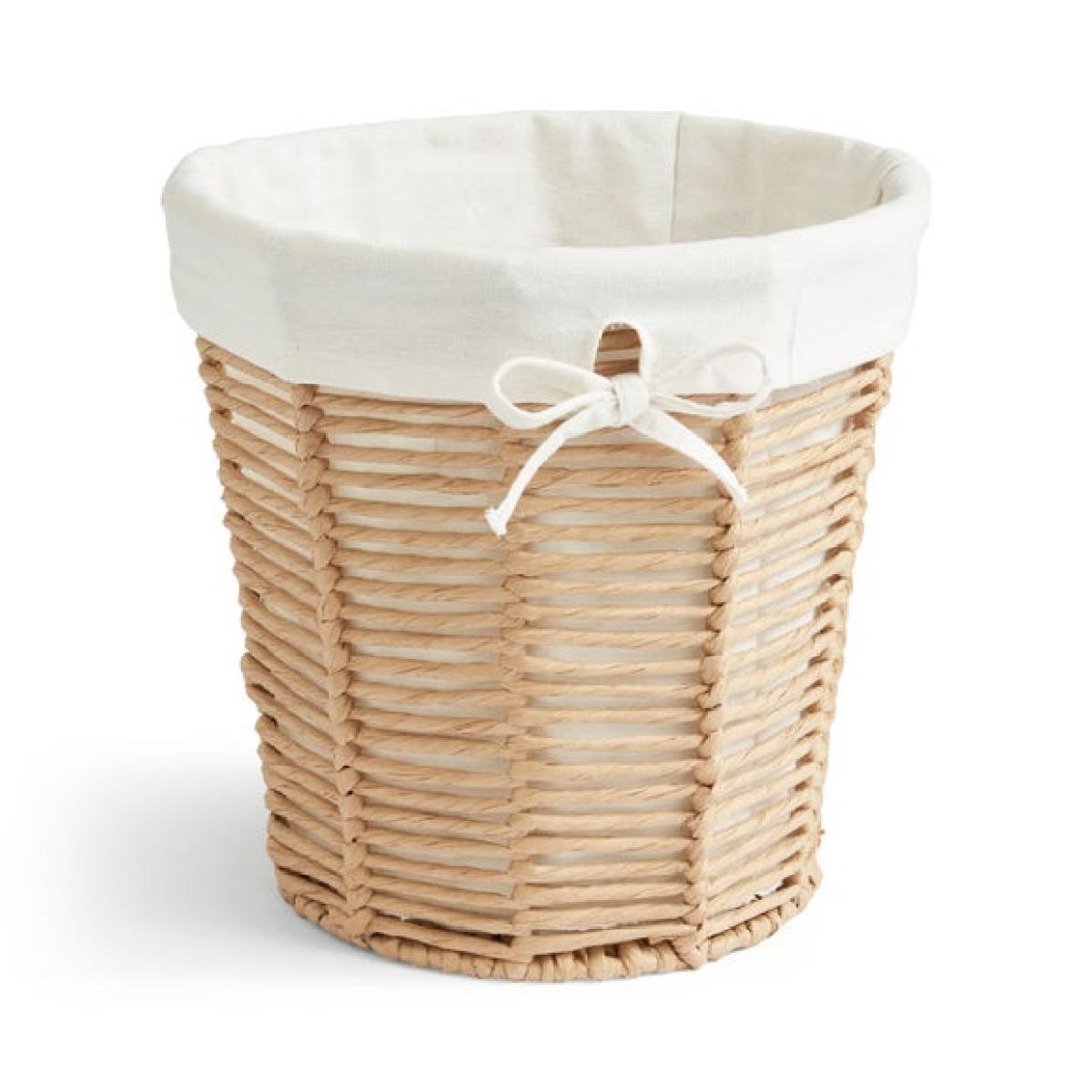* Woven basket bin * Includes cotton lining * Sturdy metal frame Stylish and functional, this waste bin is crafted from durable paper rope with a sturdy metal frame. Featuring a washable lining, it brings a decorative touch to any space while keeping it neat.