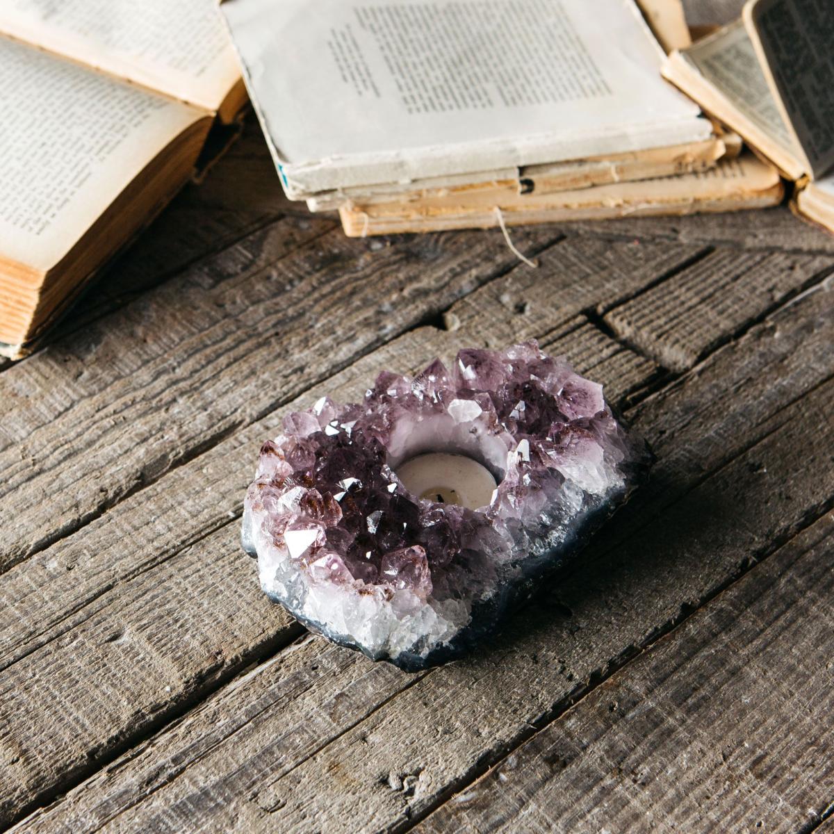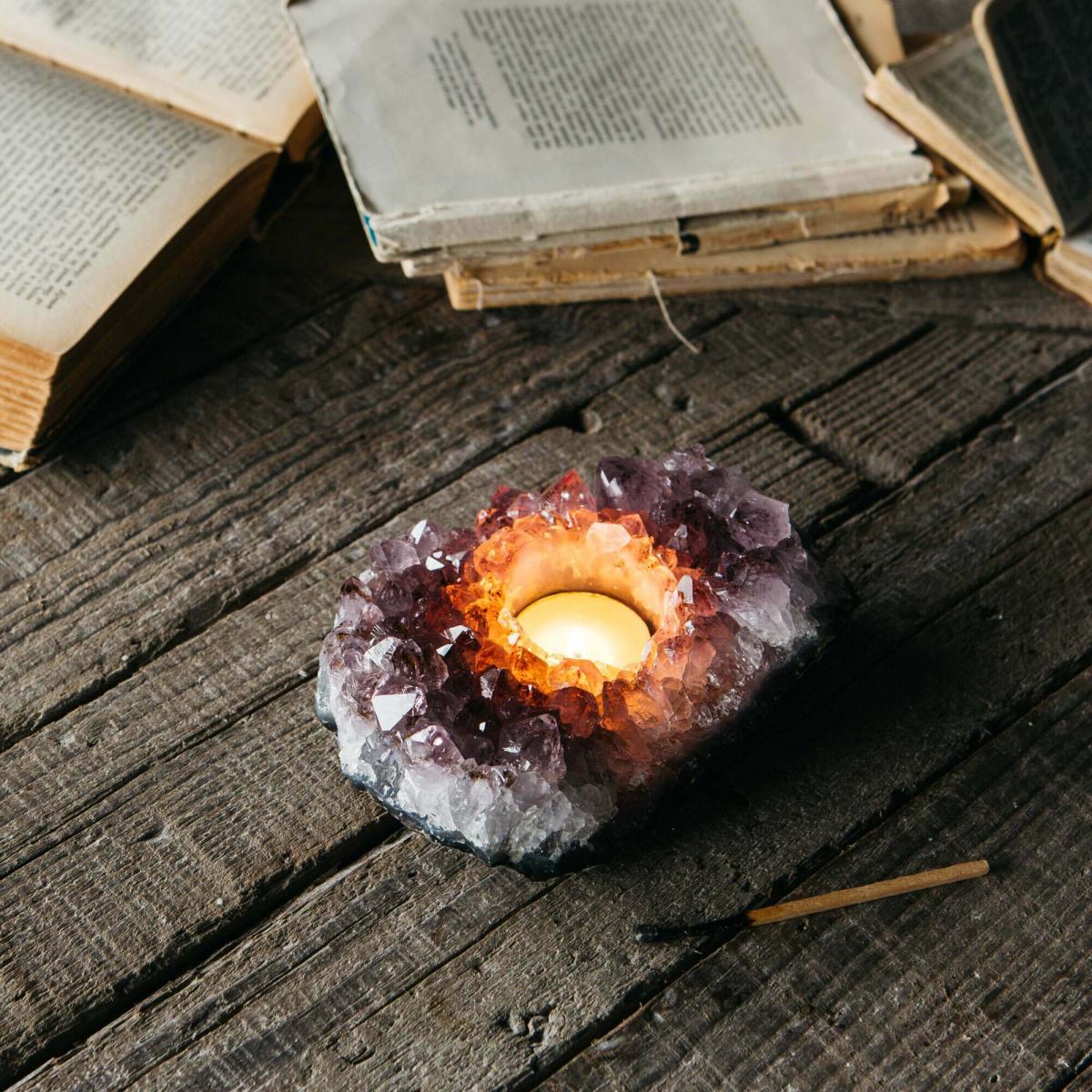 Ignite a sense of calm in your home with this amethyst tealight holder, place a candle inside and watch as the quartz sparkles in the light.