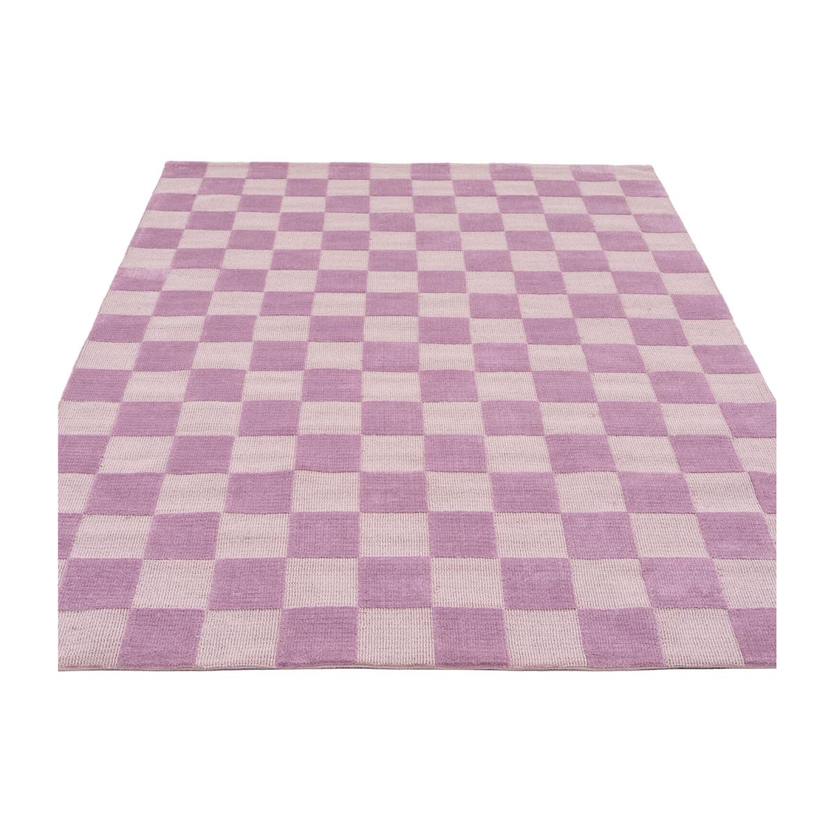 Purple Retro Checkerboard Wool Living Area Rug - Purple on beige / 170cm