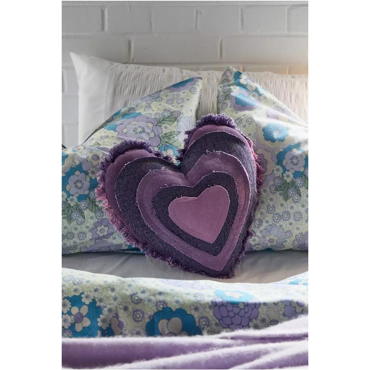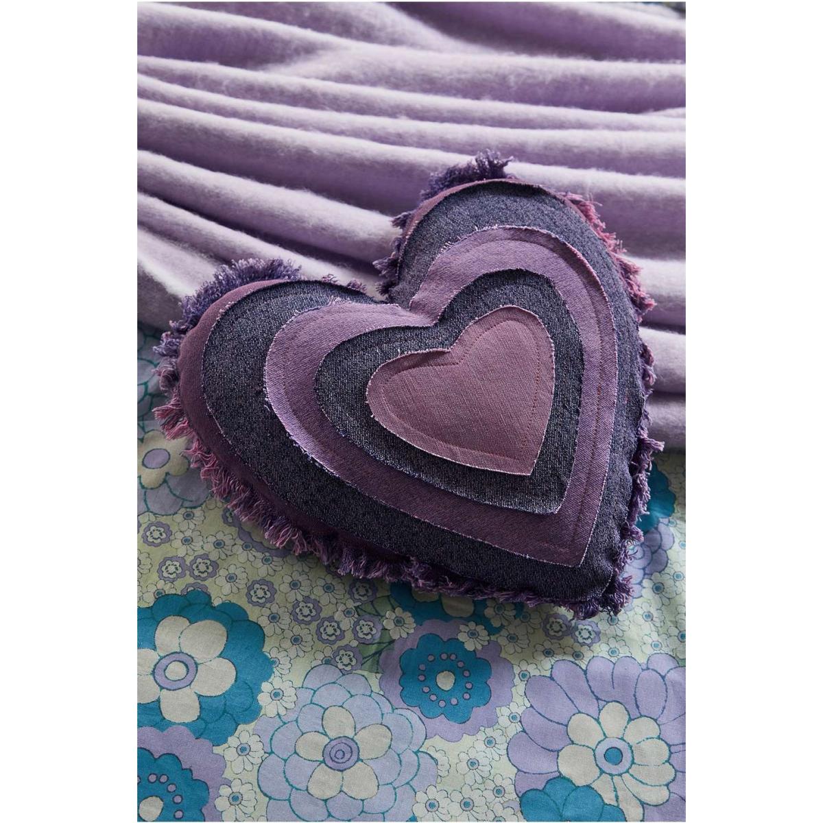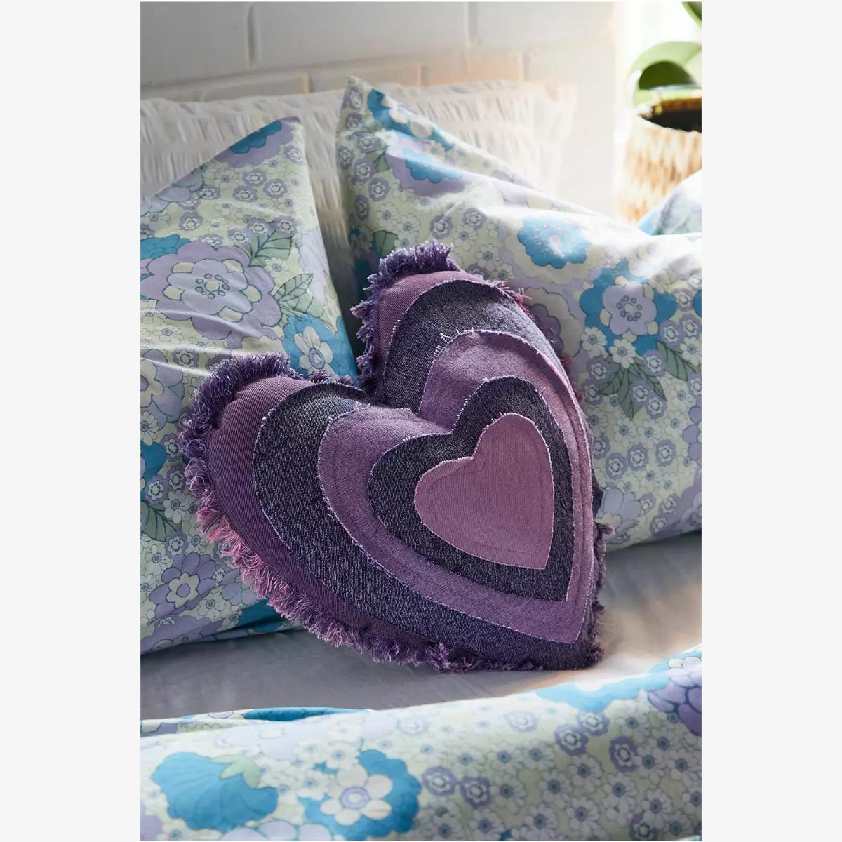 Purple Tinted Denim Patchwork Heart Cushion - ALL at Urban Outfitters