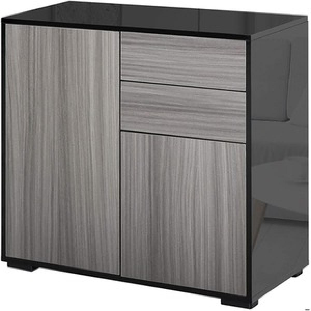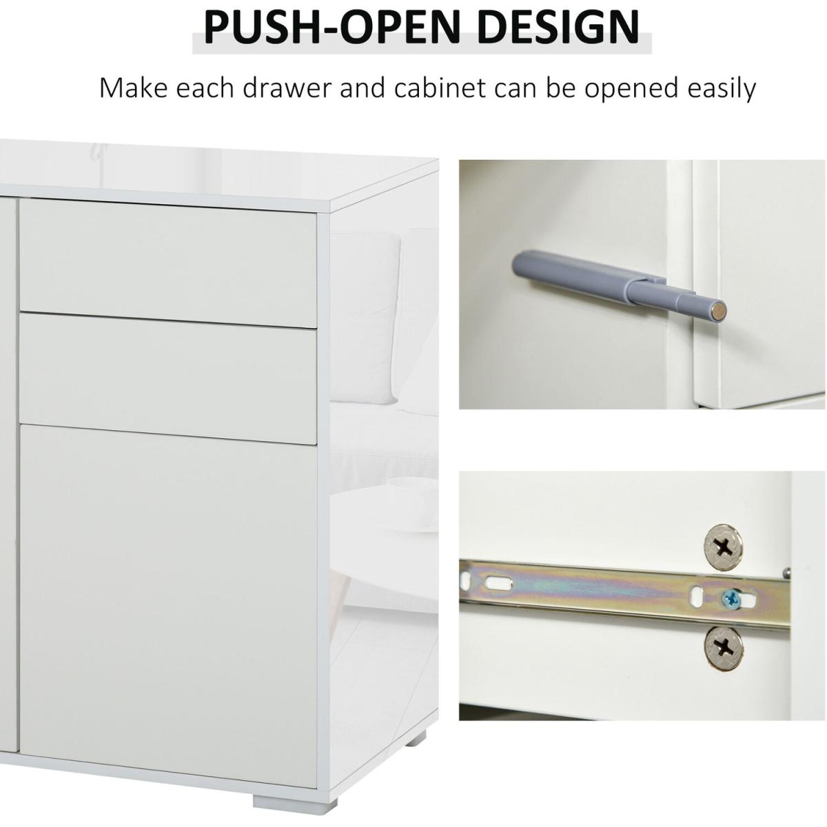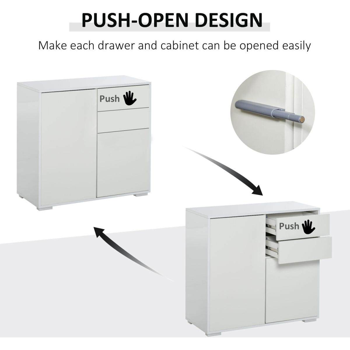 Push Open Side Cabinet with 2 Drawers and Door - High Gloss White