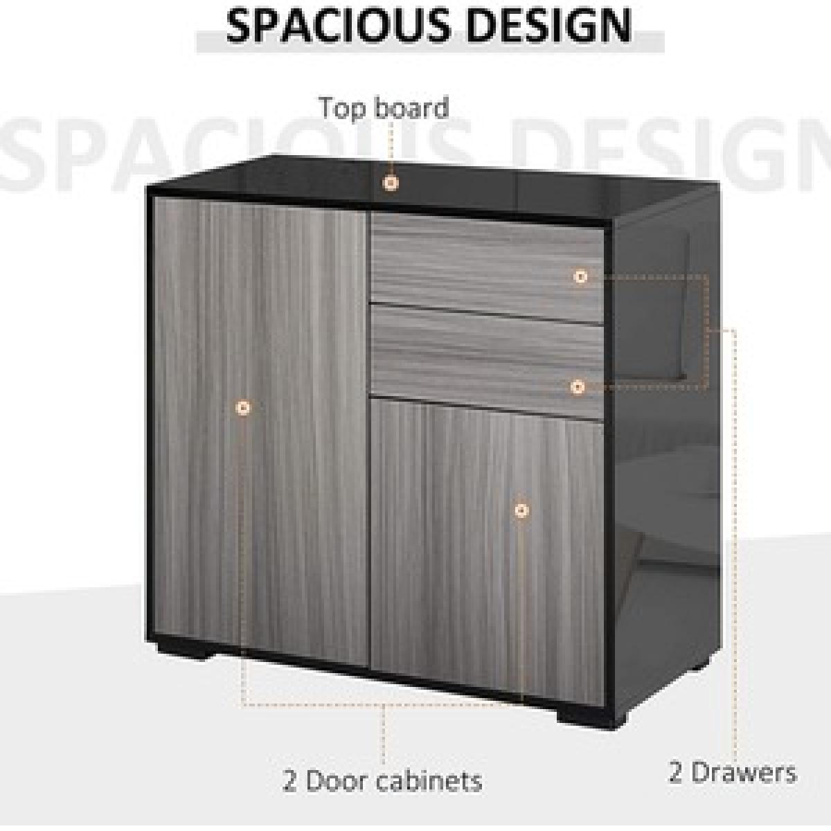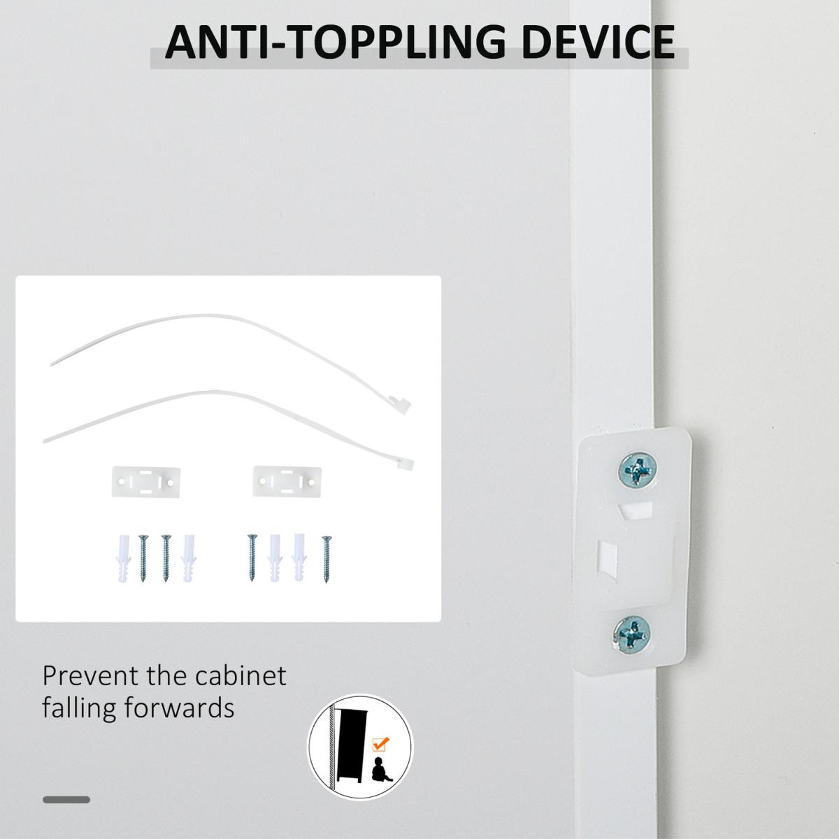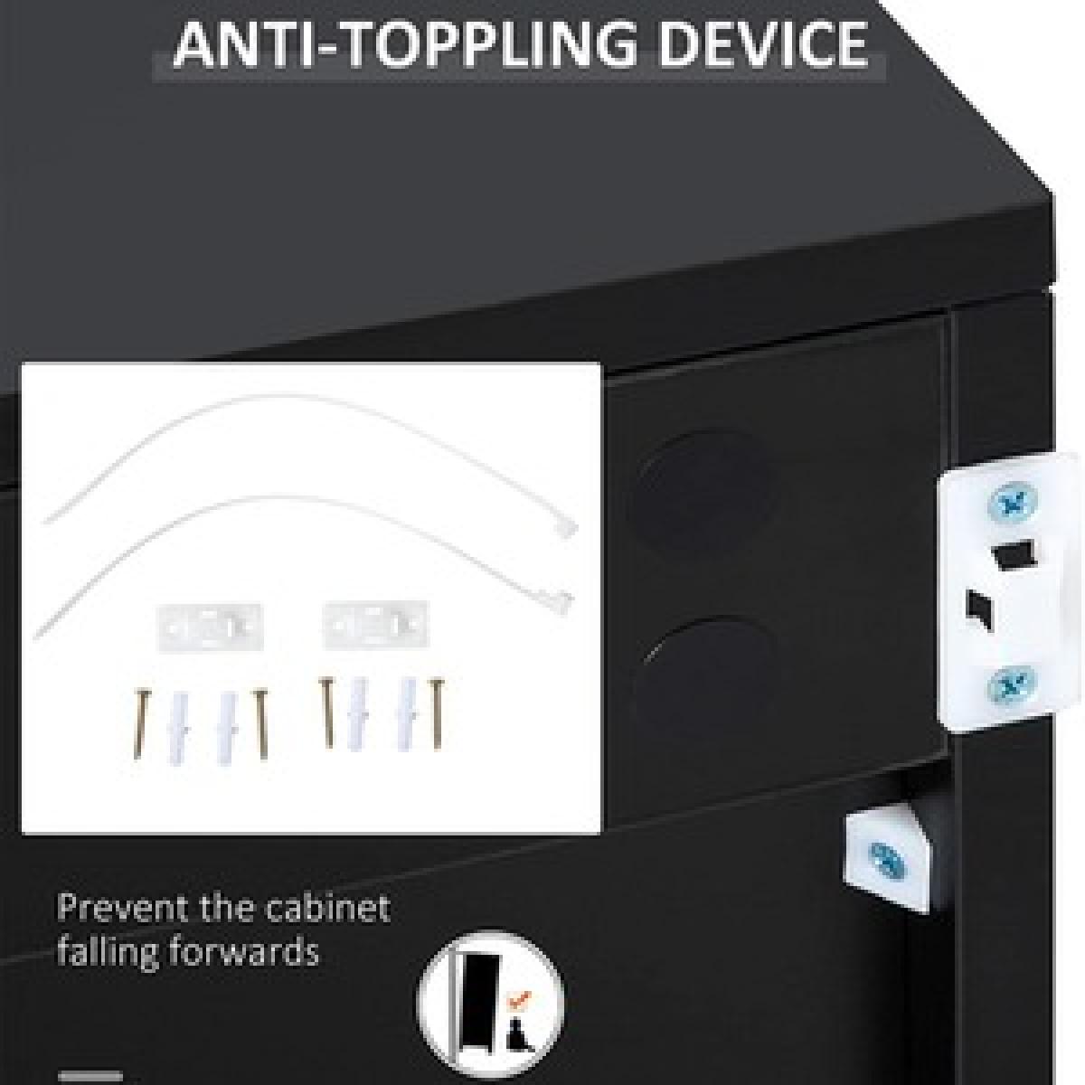 This HOMCOM cabinet is a durable and stylish addition to every home, keeping your space clean and tidy with ease. It's made from MDF for a durable structure, with anti-tipping straps on the back for safety. The practical design, with the push-click drawers and cabinet doors, makes them quick and effortless to open and close. The elevated base allows air to flow through for freshness. An effortless way to bring sleek style into your living space.