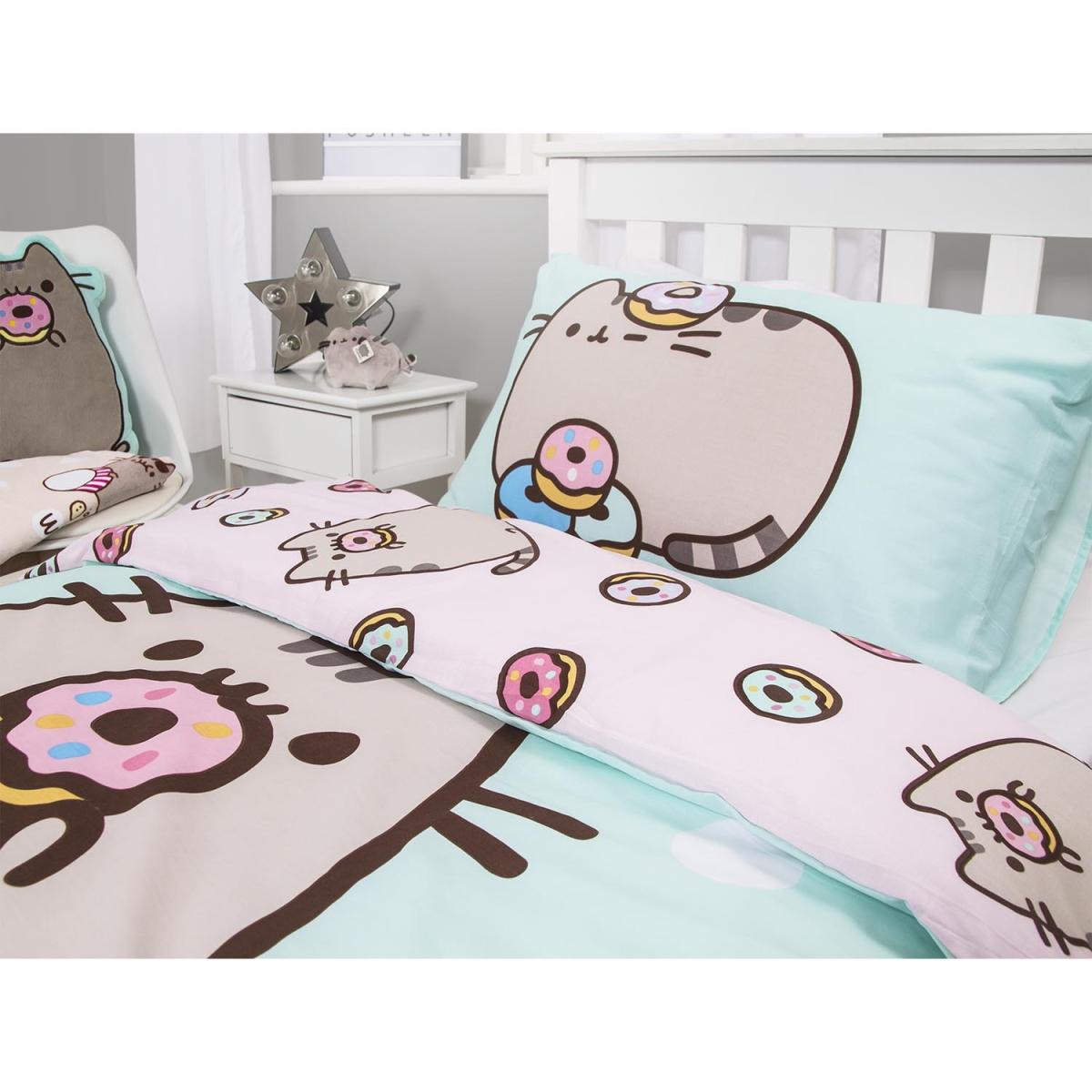 Super cute and stylish, this Pusheen Cat Donuts Duvet Cover and Pillowcase Set is the perfect addition to your child's bedding collection. Featuring a colourful design with Pusheen front and centre, eating a delicious donut, this bedding is sure to add colour and fun to any space. Made from a polycotton blend to keep your little one comfortable during the night, this set is a must-have for the linen cupboard.