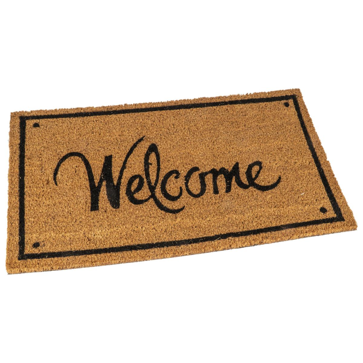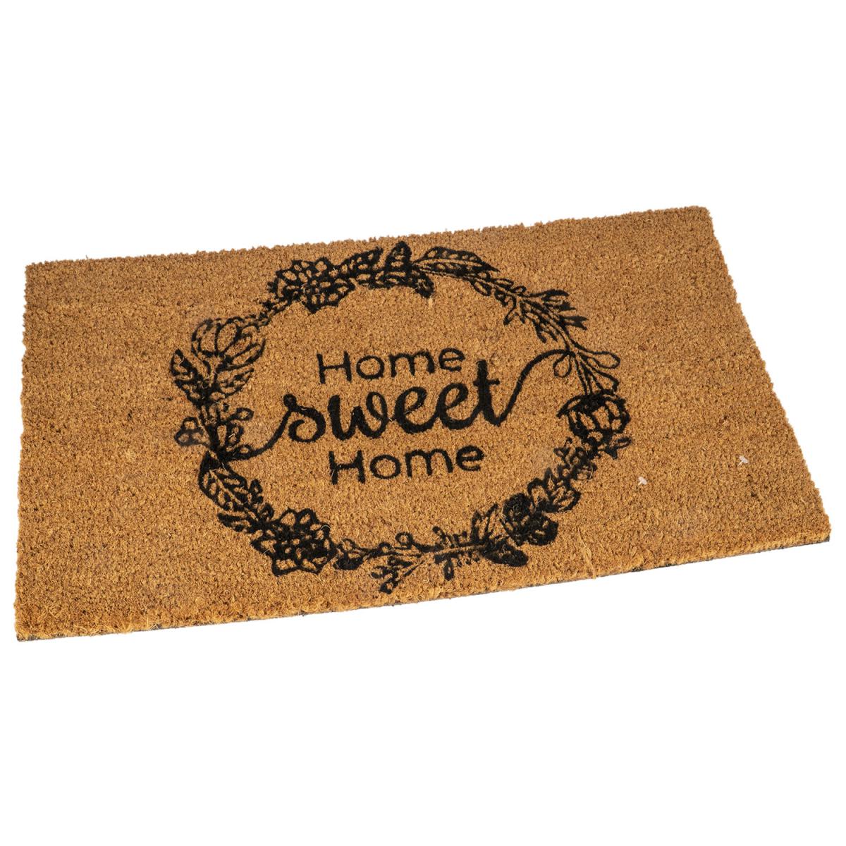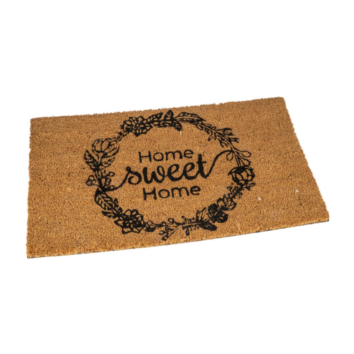 Give your home a charming, country feel with this gorgeous PVC Backed Coir Welcome Mat. This natural looking mat is made from hard-wearing coir (coconut husk) to give it a classic and dynamic look. Printed on the mat is a either the phrase "home sweet home" or a bold and brilliant "welcome" so you can greet your guests with gusto. Ideal for your front of back doors, these mats have a PVC backing to avoid slipping.