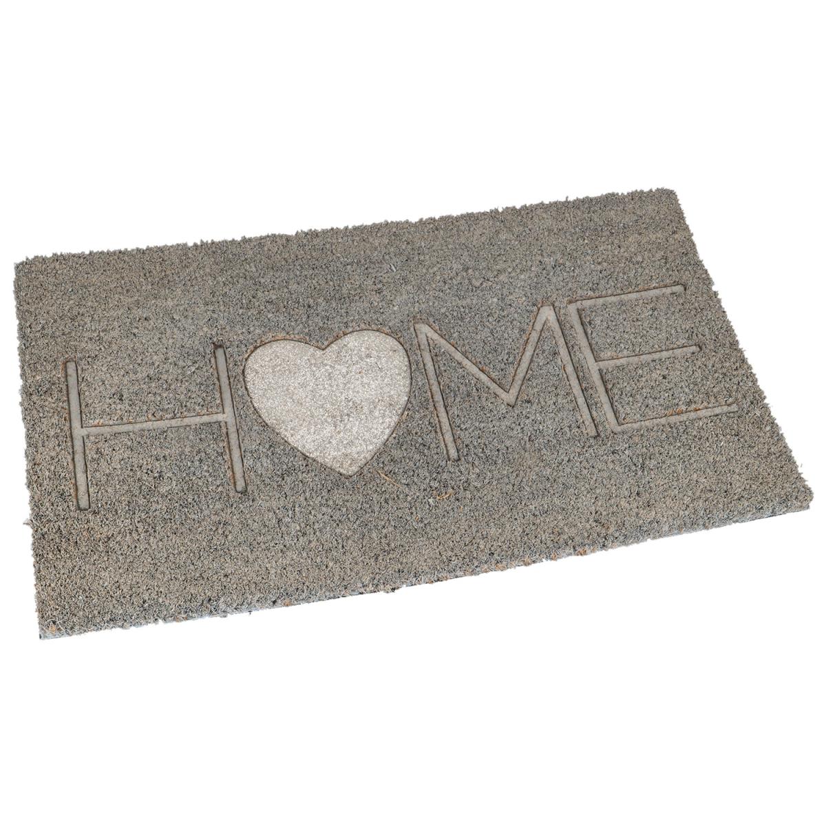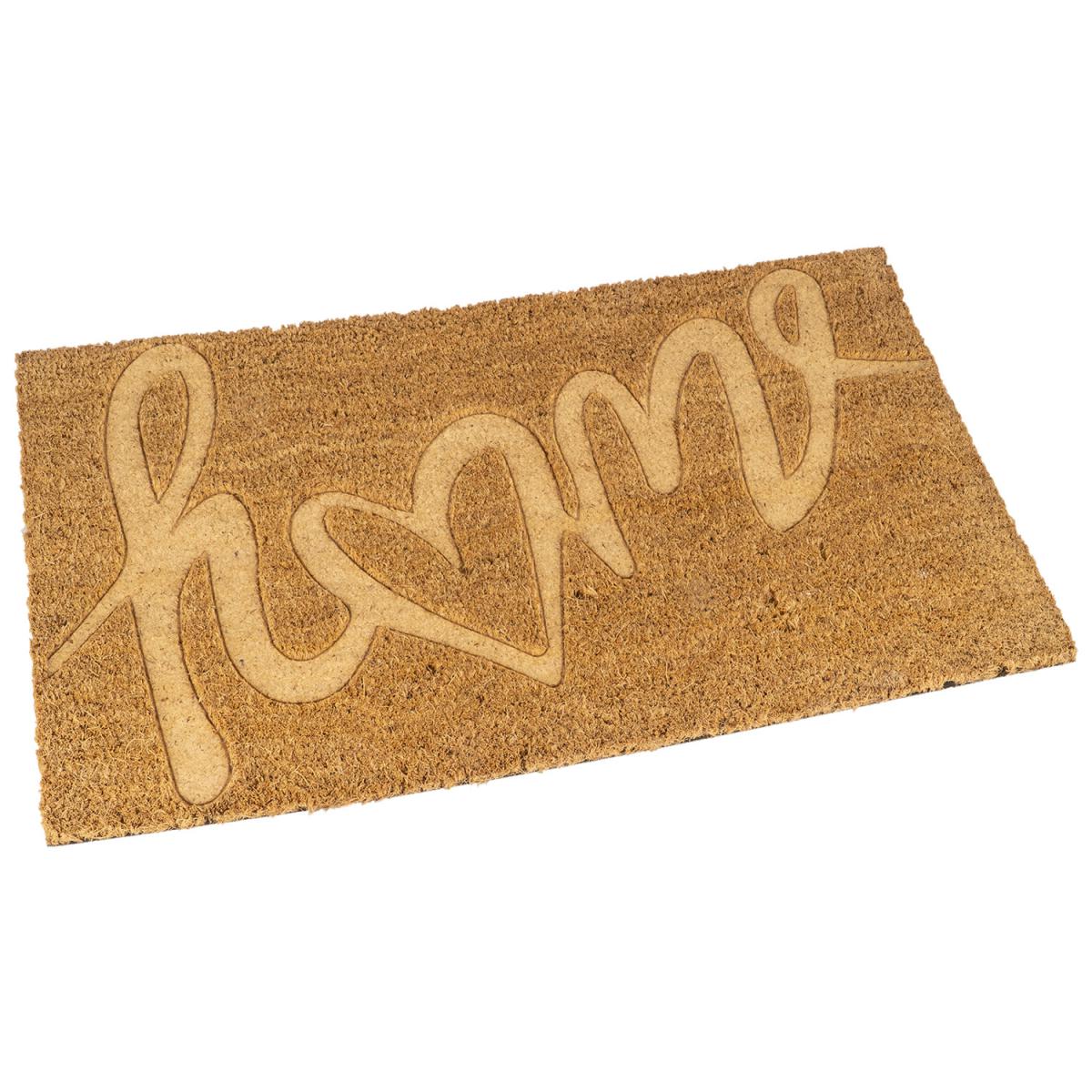 The PVC Backed Home Embossed Coir Mat is a stylish addition to your home, adding colour and rustic charm to your space. This hard-wearing mat is made from coir (coconut husk) and is backed with PVC to stop it from slipping when someone stands on it. Perfect for any home, this mat looks especially good when placed by your front or back door. The embossed pattern is the word "home" with a heart, making sweet and practical!