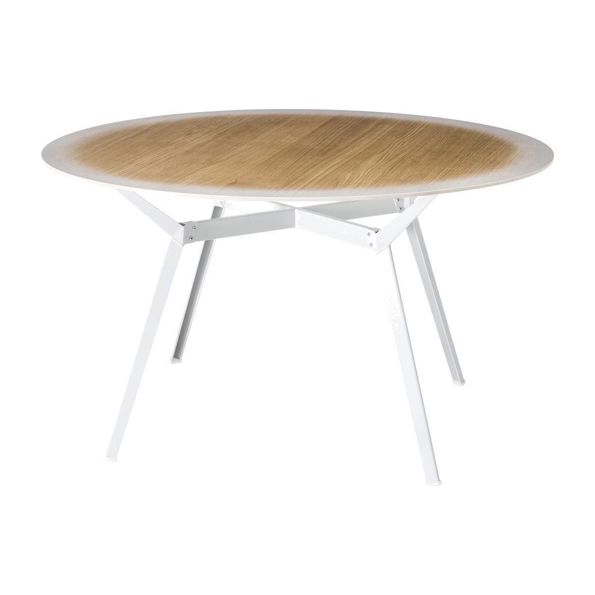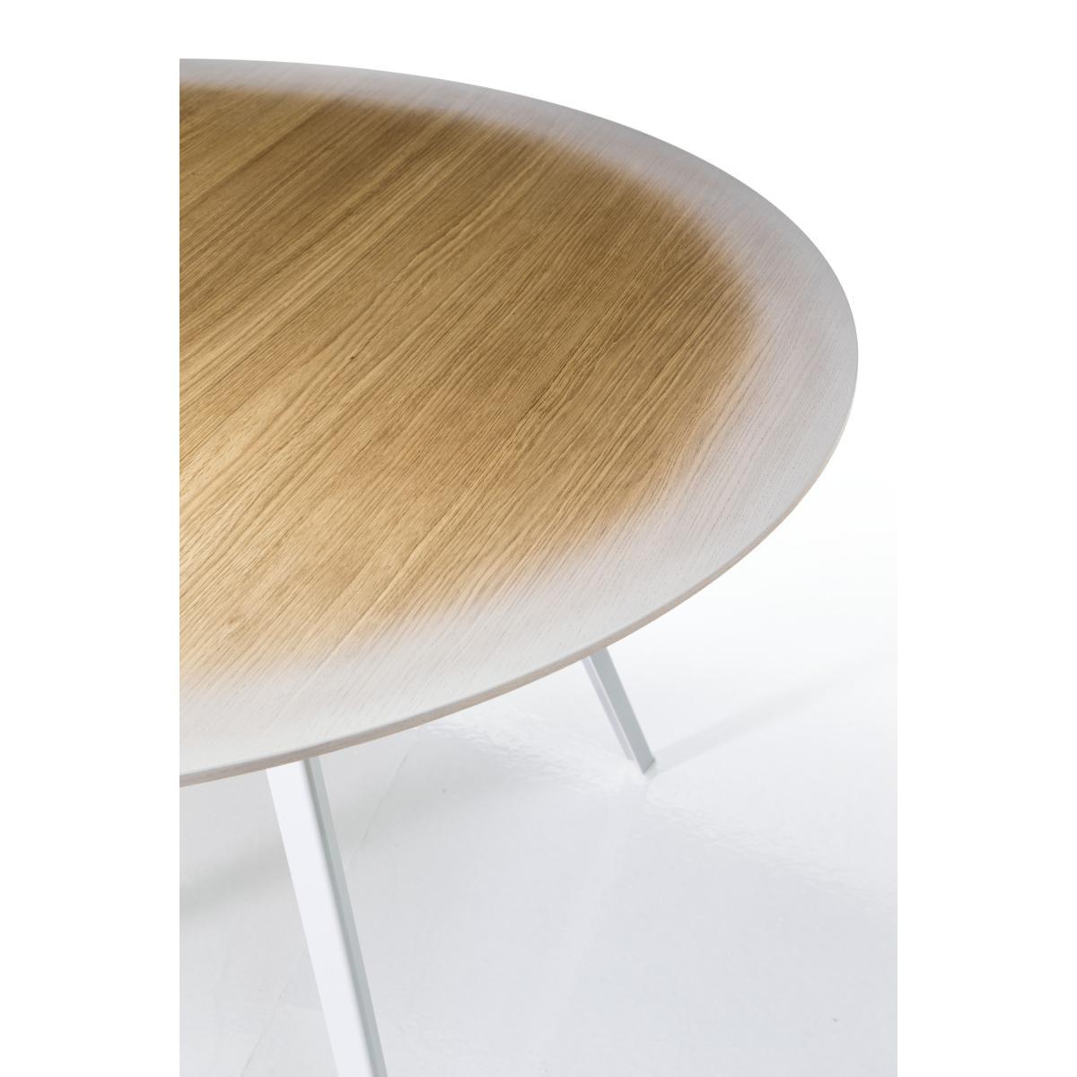 Solid white legs and white gradient treatment on the oak top. The treatment makes the wood appear like a magic. The section is decreasing towards the external border to give a lighter aspect to the top.