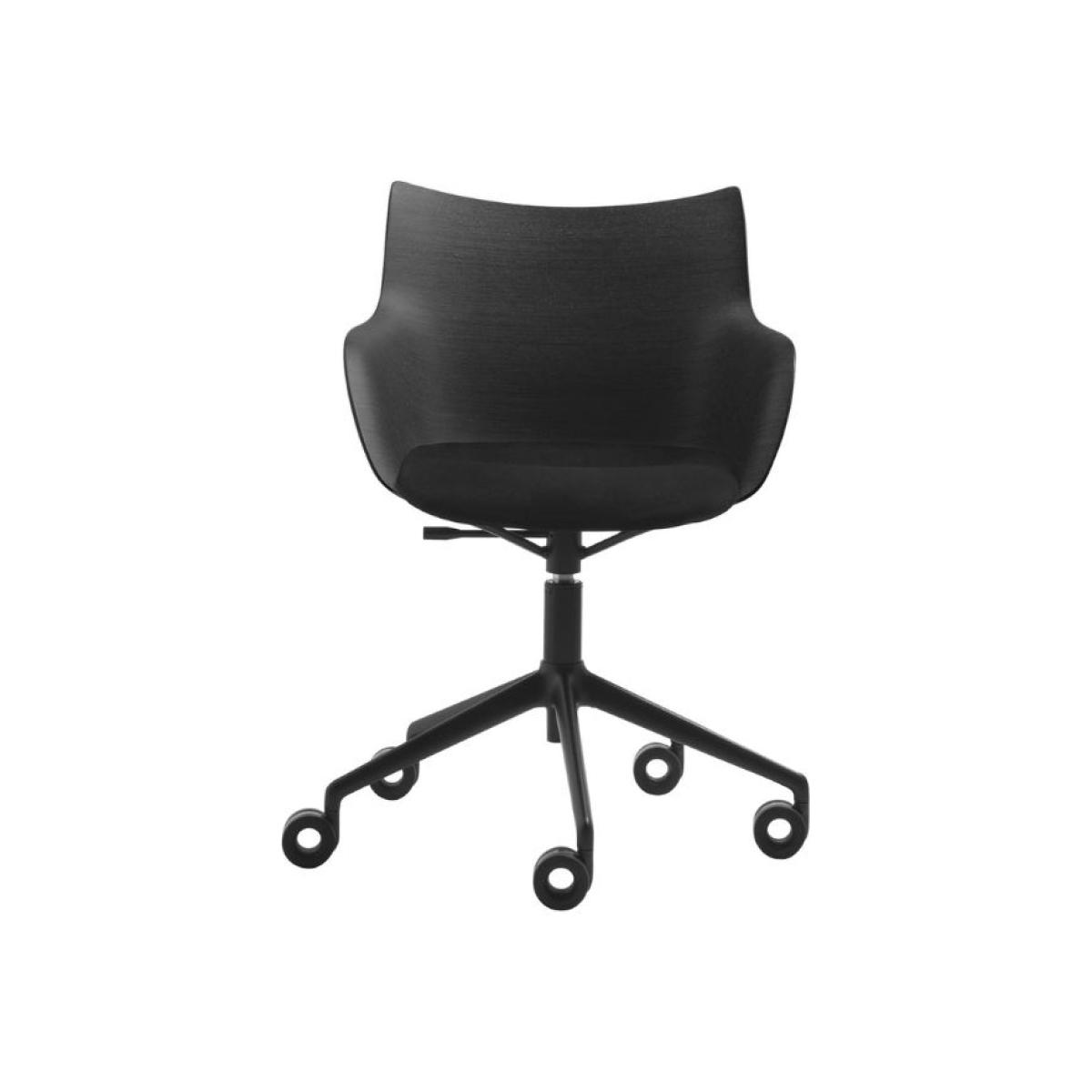 The Smart Wood family is growing with the arrival of the office chair on casters, which focuses on comfort thanks to its wide, welcoming seat. The seat height is adjustable. The seat is covered with Aquaclean® fabric. The poetry of wood embraces technology… Kartell creates an event by including wood in its catalogue for the first time in its history! With the Smart Wood collection, Kartell and Philippe Starck rise to a new challenge: working wood with the same fluidity as composite materials to give it a new look, full of finesse and curves. With its unique moulded wooden shell, the Smart Wood collection combines timeless elegance, contemporary shapes and perfect finishes. The generous curves and dimensions of the shell provide excellent seating comfort. The major figures Ray and Charles Eames were the first to experiment with moulding plywood into complex shapes. More than 50 years later, technological advances have allowed Kartell to offer even more with less. This is the Smart Wood collection. Philippe Starck explains: "I wanted to create wooden seats using just a minimum of material. Twenty years ago, you could bend wood two centimetres, then five, six, and so on. I wanted to bend it thirty-five centimetres... Each year, I gained another centimetre! To launch the Smart Wood range, it was necessary to invent a technology that did not exist." This feat was made possible thanks to a unique patented 3D technology that produces a wooden curvature of extreme proportions. The moulded wood adopts the incredible sinuous lines with enveloping curves, like an embrace that offers total comfort. To reduce the cutting down of trees, the shell uses very little material: just wood residues. It’s made from ash nano-shavings glued in nano-layers which are then laminated. Then, using machines that cut the wood in line, the wood takes on the appearance of a kind of fabric that can be deformed. For 10 to 15 minutes, the wood, now soft as silk, can be moulded. As it dries, it stiffens and returns to the texture of wood. Claudio Luti, president of Kartell, explains: "After years of research, we managed to work the wood while respecting the nobility of the material. Innovative technology has allowed us to stay true to the industrial characteristics of Kartell's DNA. With the Smart Wood collection, we changed the paradigm, so it’s no longer about using wooden elements to build a structure, but bending the wood so it turns into a three-dimensional seat. We have been able to fully express the true essence of wood by combining industrial production, beauty, robustness, comfort and flexibility into a single product." Inaugurating a new chapter in the brand's history, the Smart Wood collection is an integral part of a major project: ''Kartell Loves the Planet''. The latter aims to promote all good practices in terms of sustainability for a process of production and use of recyclable raw materials with a low environmental impact.