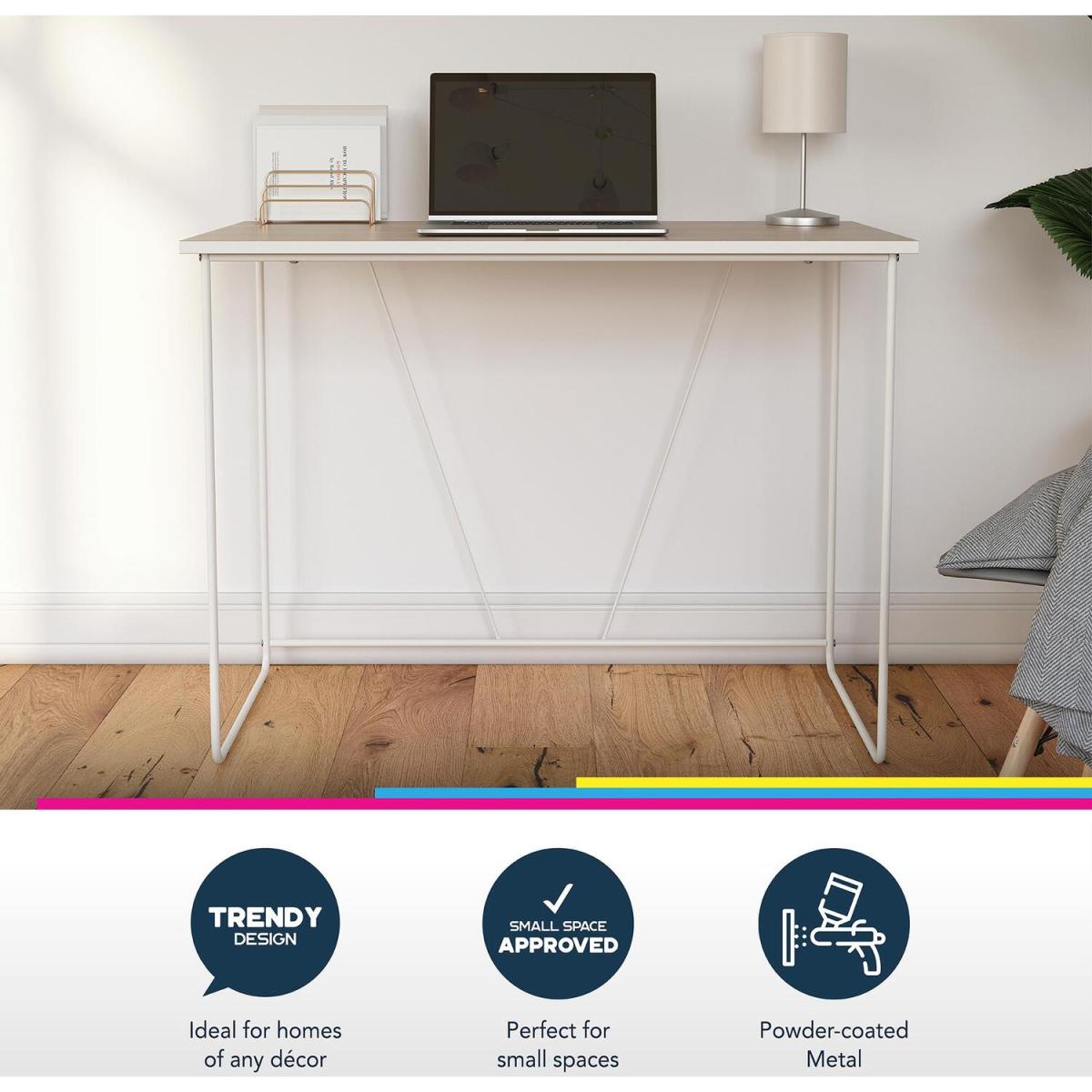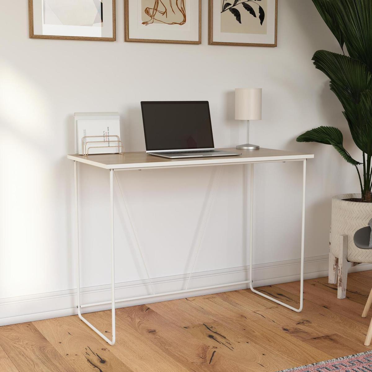 Elevate productivity and inspire creativity with the minimalistic design of the Queer Eye Dante Computer Desk. Featuring playful angles and elegant restrained silhouettes of matte white on natural woodgrain, this desk creates a light and airy feel for a look that's never overdone. Each piece is made from durable engineered wood and powder-coated metal, so you don't have to choose between style and affordability.