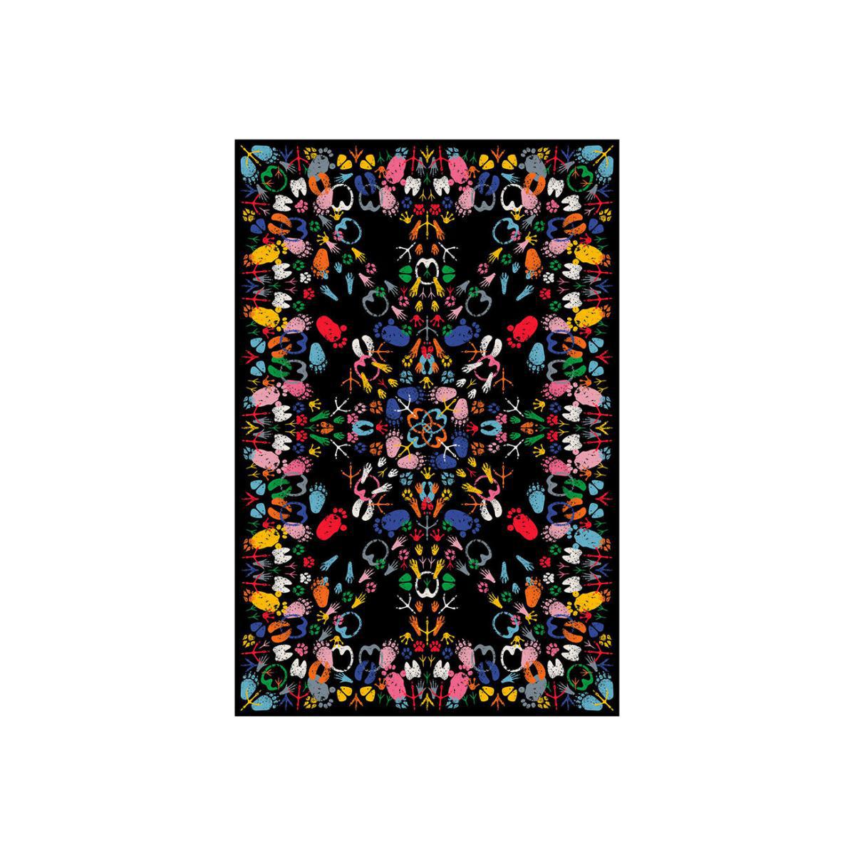Brighten up your home with this rug from Qeeboo. Featuring a striking print depicting the footprints of man and animals dancing together, it makes a bold statement in any space.