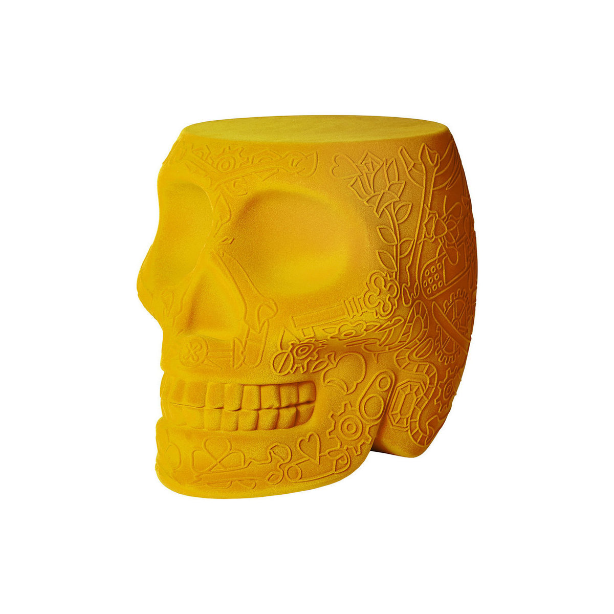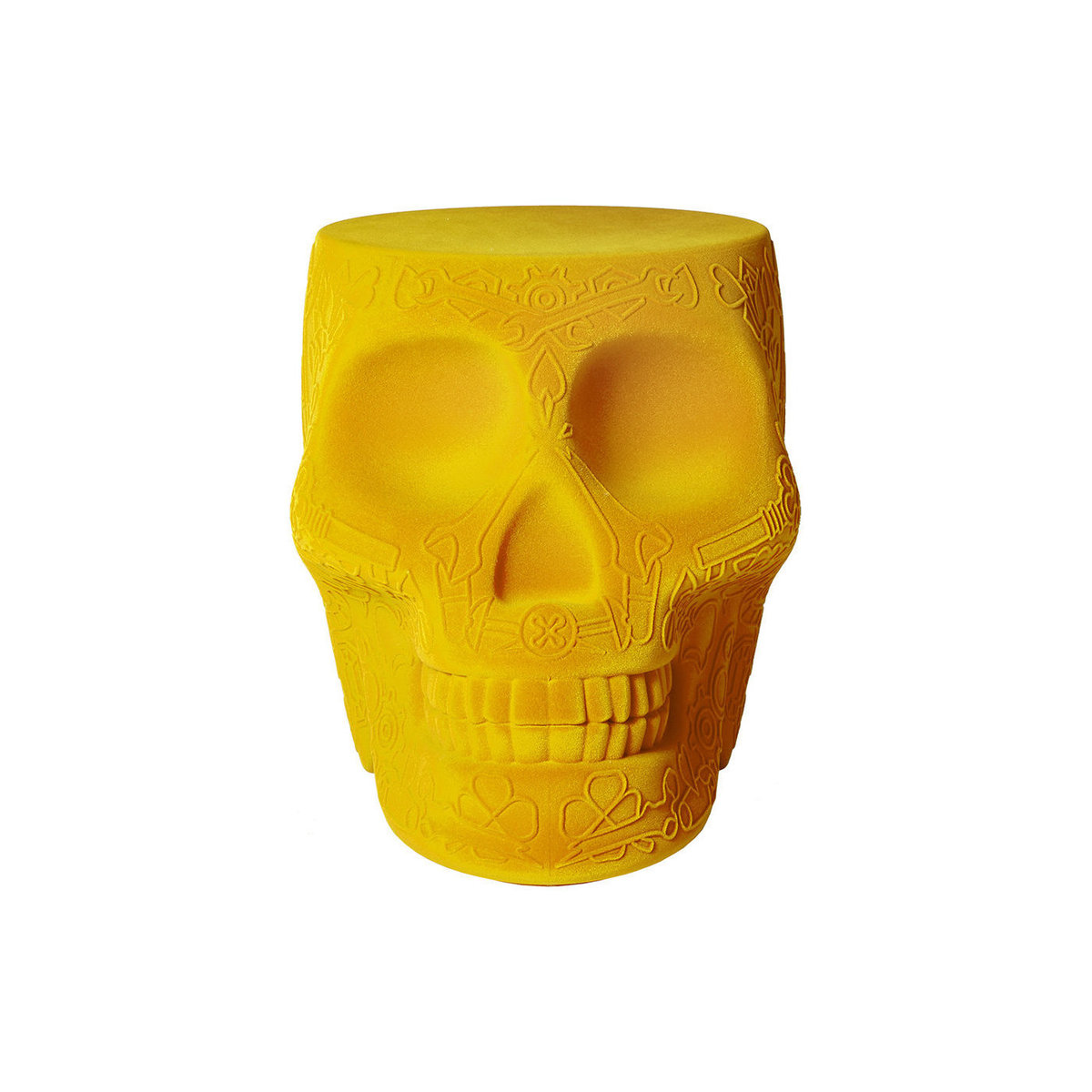 Qeeboo - Mexico Skull Velvet Stool/Side Table - Dark Gold