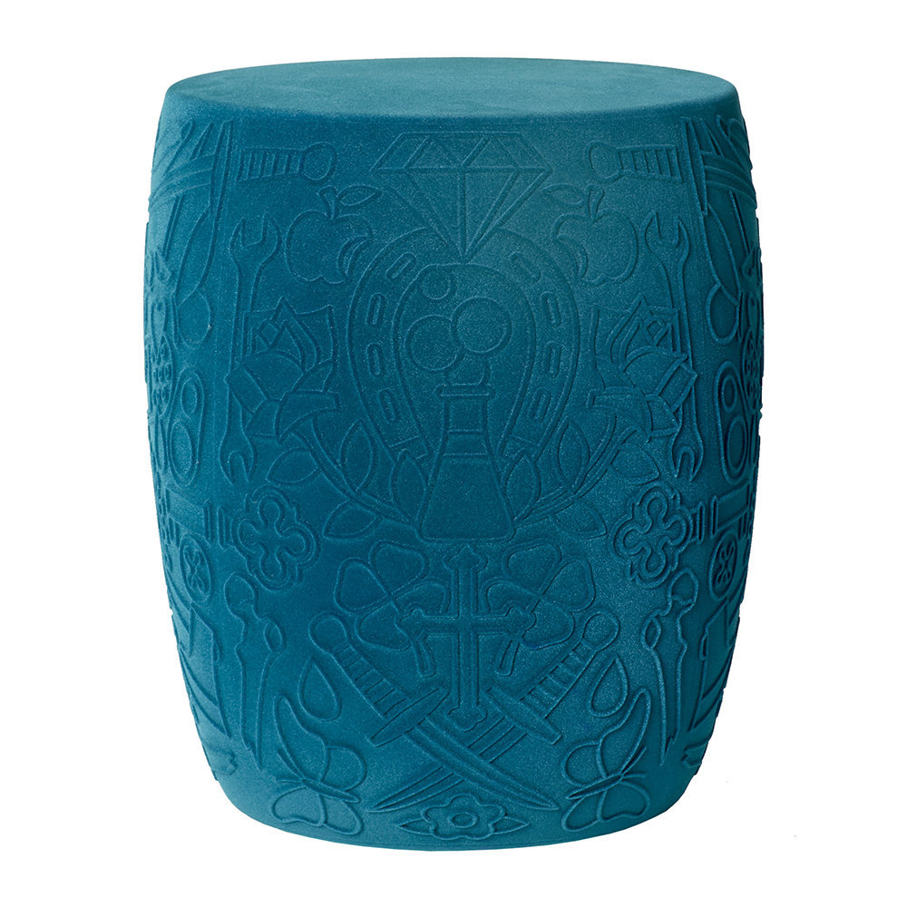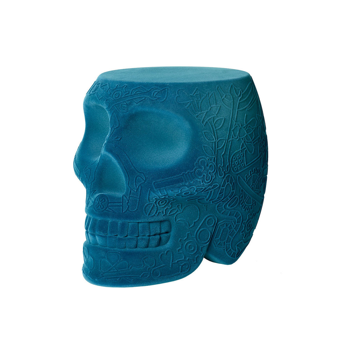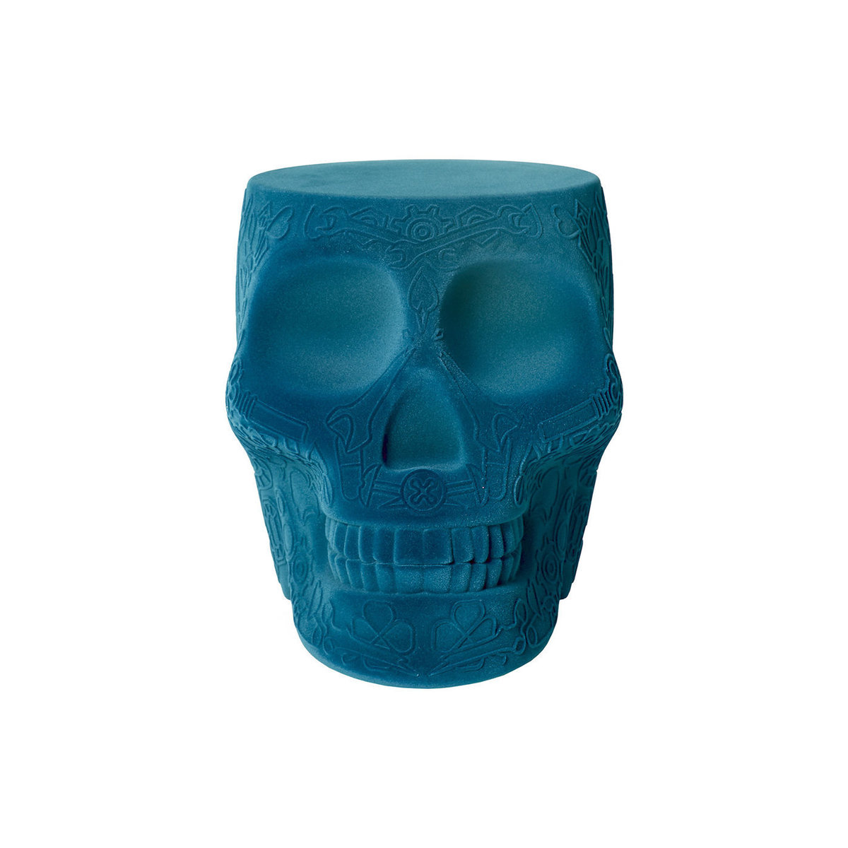Qeeboo - Mexico Skull Velvet Stool/Side Table - Light Blue