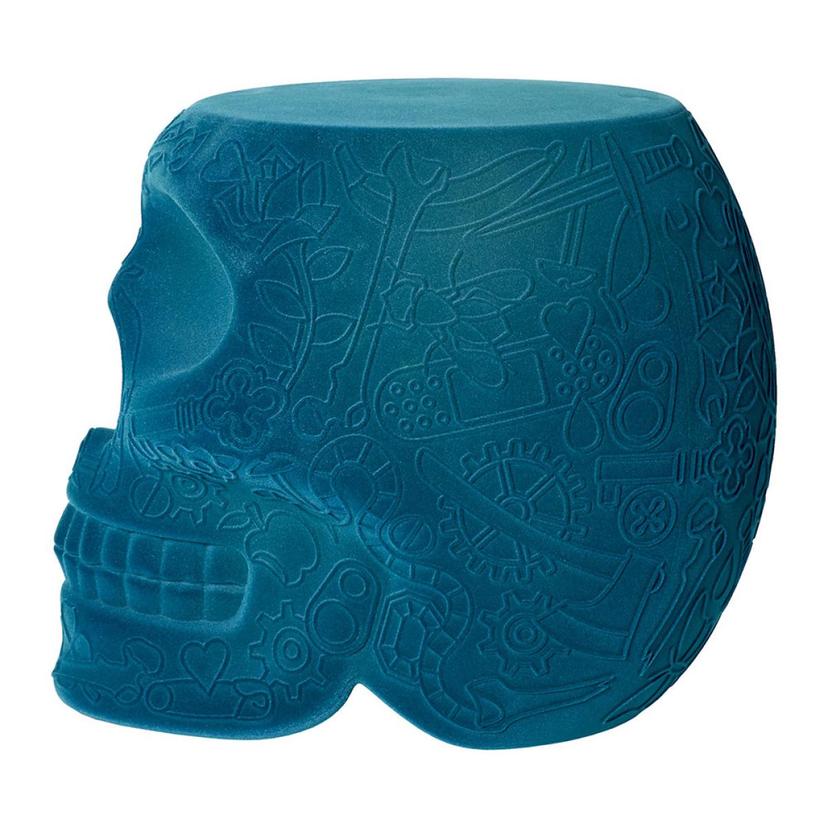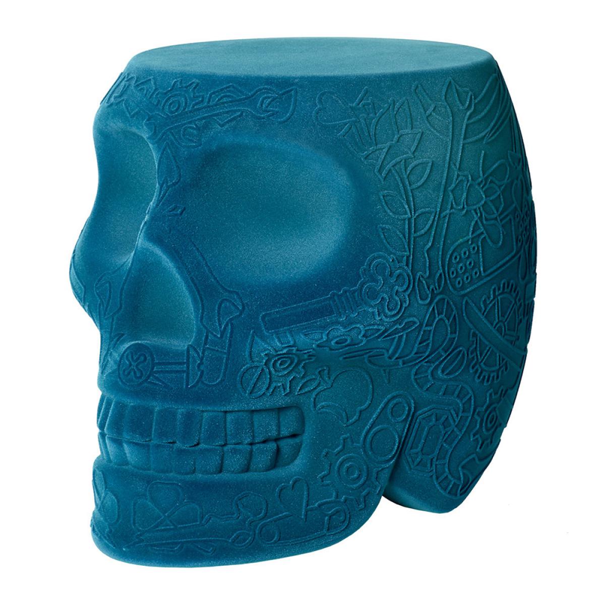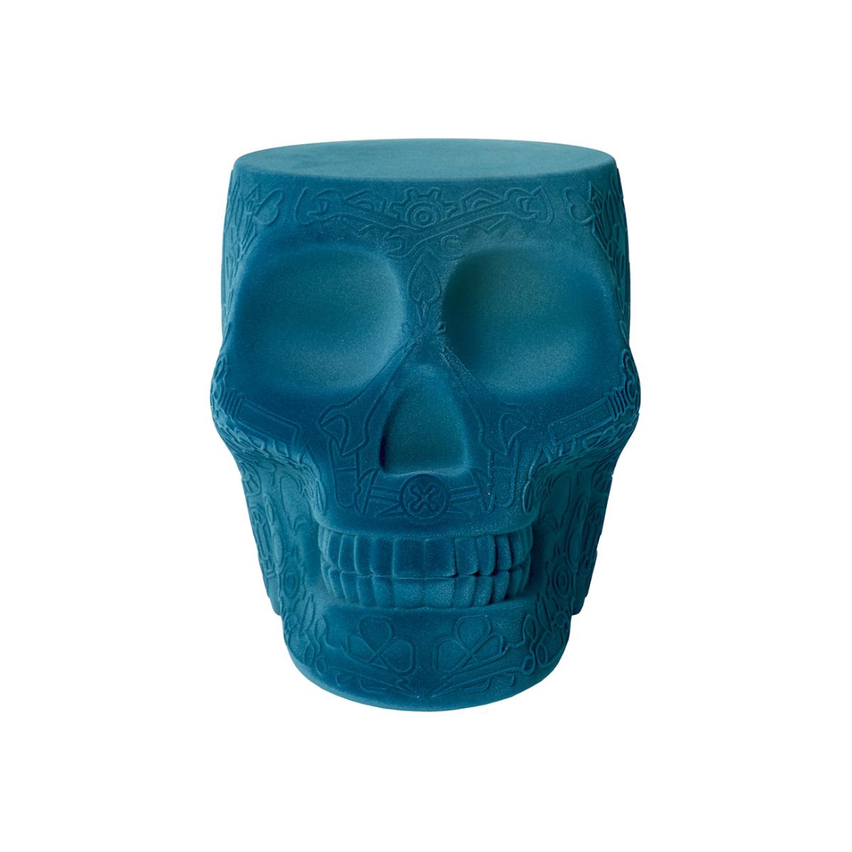 Qeeboo - Mexico Skull Velvet Stool/Side Table - Light Blue