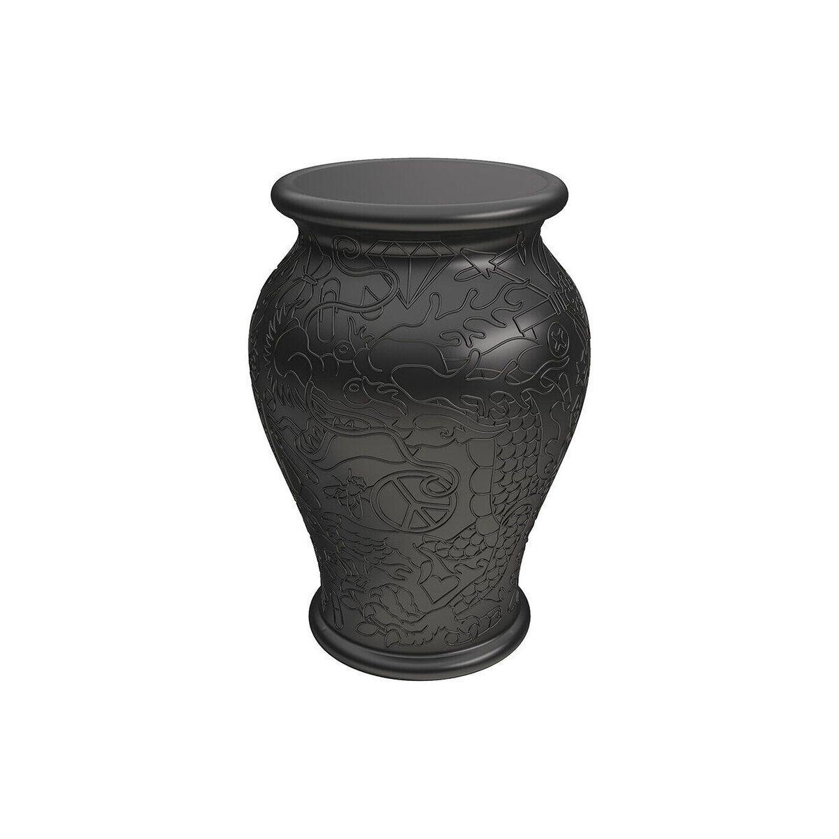 Complete a contemporary interior with this Ming Vase side table from Qeeboo. Made in Italy from polyethylene, this side table is designed by Studio Job and inspired by a traditional Ming vase. Featuring an iconic Chinese dragon surrounded by peace signs, diamonds and other symbols, this striking side table is suitable for both outdoor and indoor use and can also be used as a stool. Key features: * Side table * Material: polyethylene * Dimensions: H61xØ34.5cm * Designed by Studio Job * Contemporary design * Inspired by a traditional Ming vase * Featuring a Chinese dragon surrounded by symbols * Black tone * Suitable for indoor and outdoor use