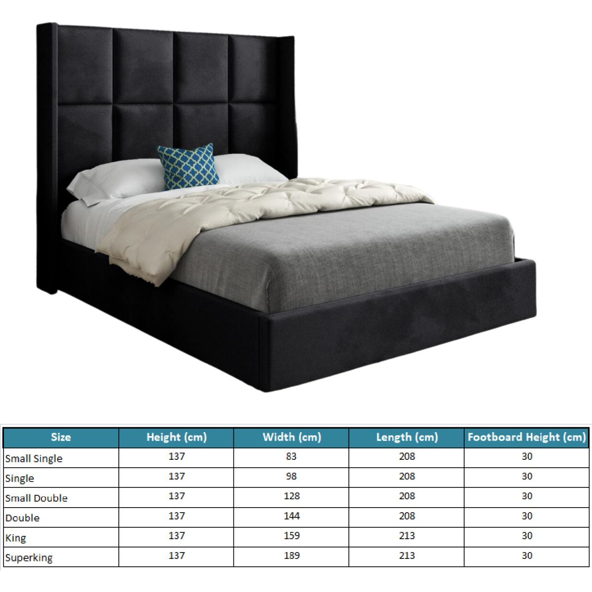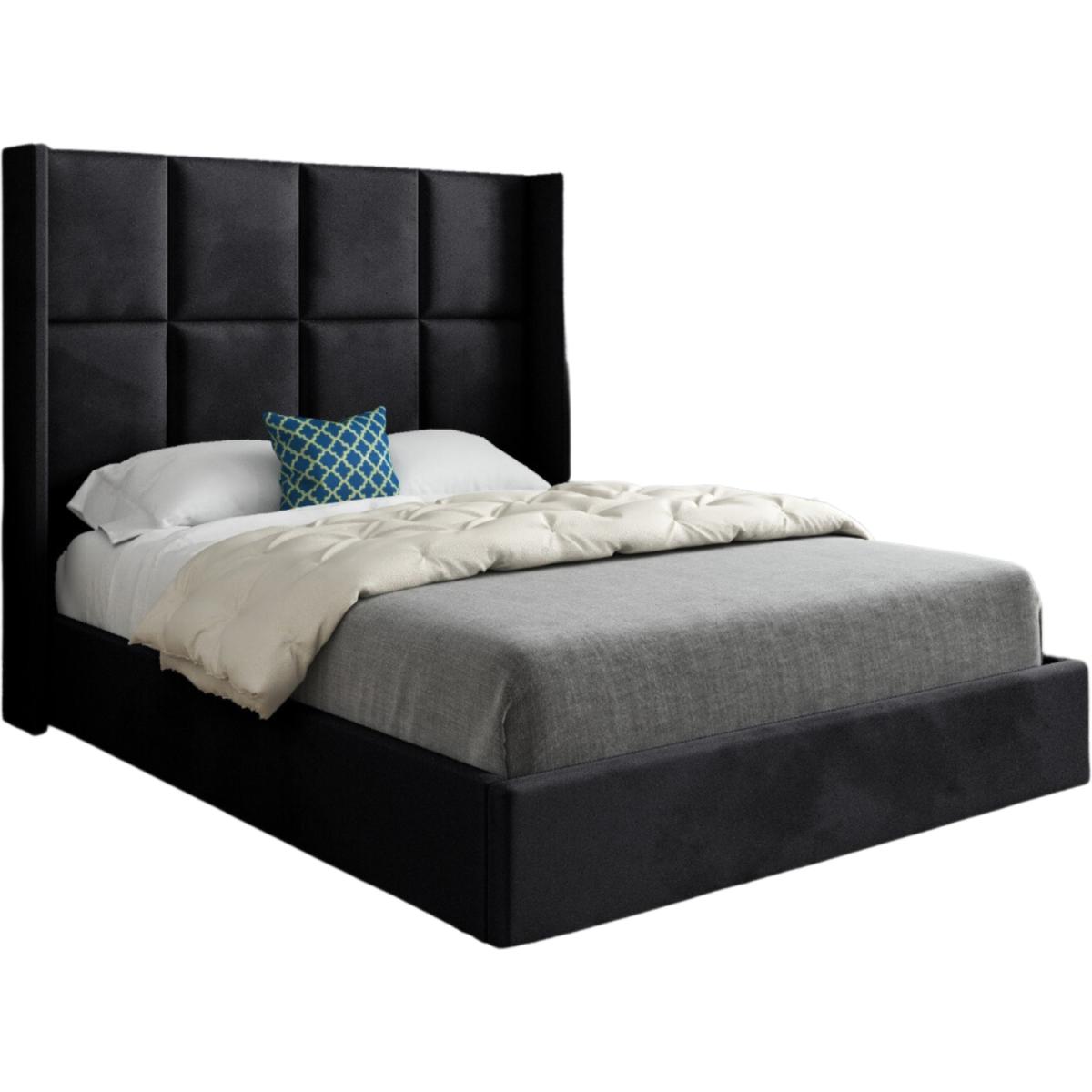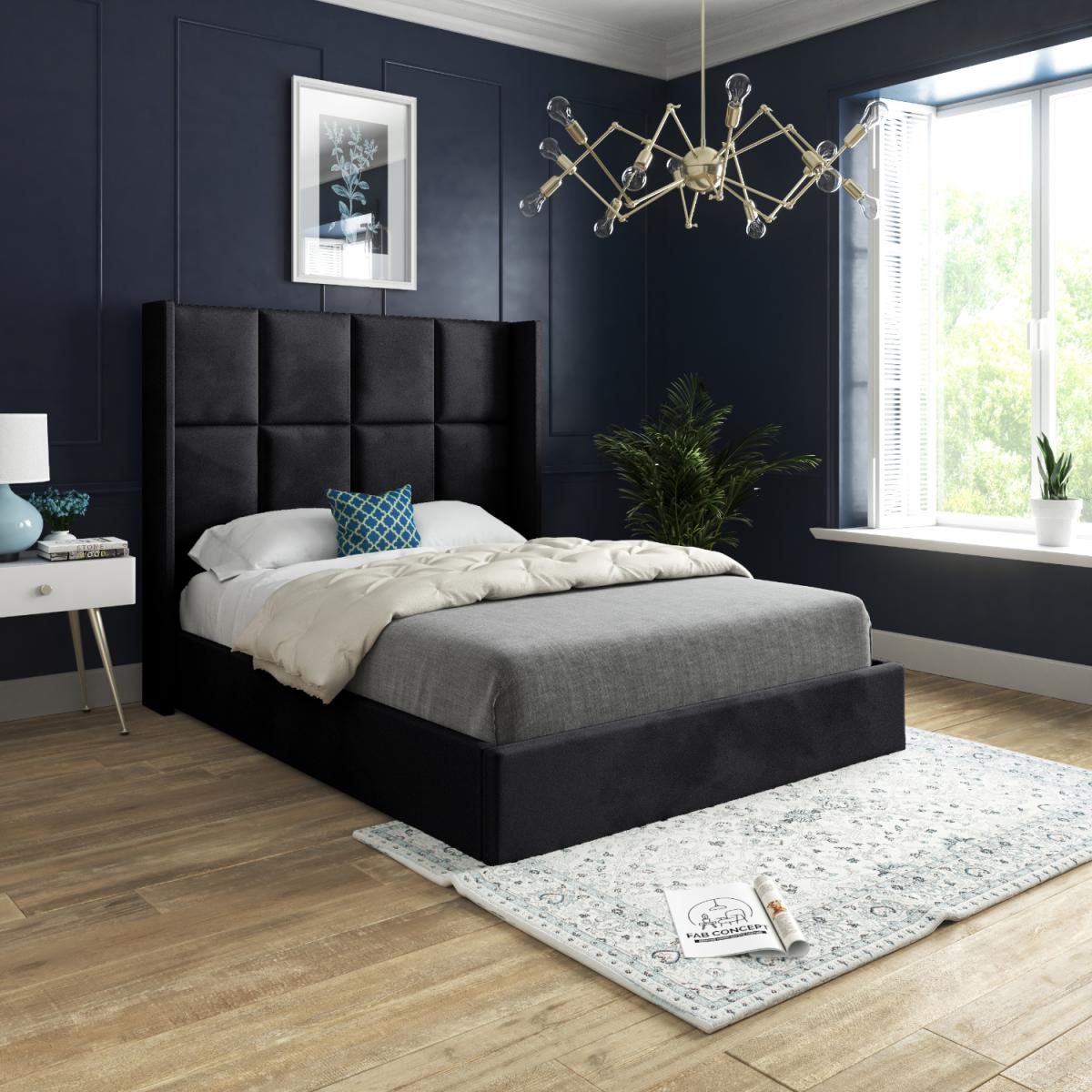 Quanta Straight Winged Upholstered Soft Velvet Bed Frame - Black / Superking