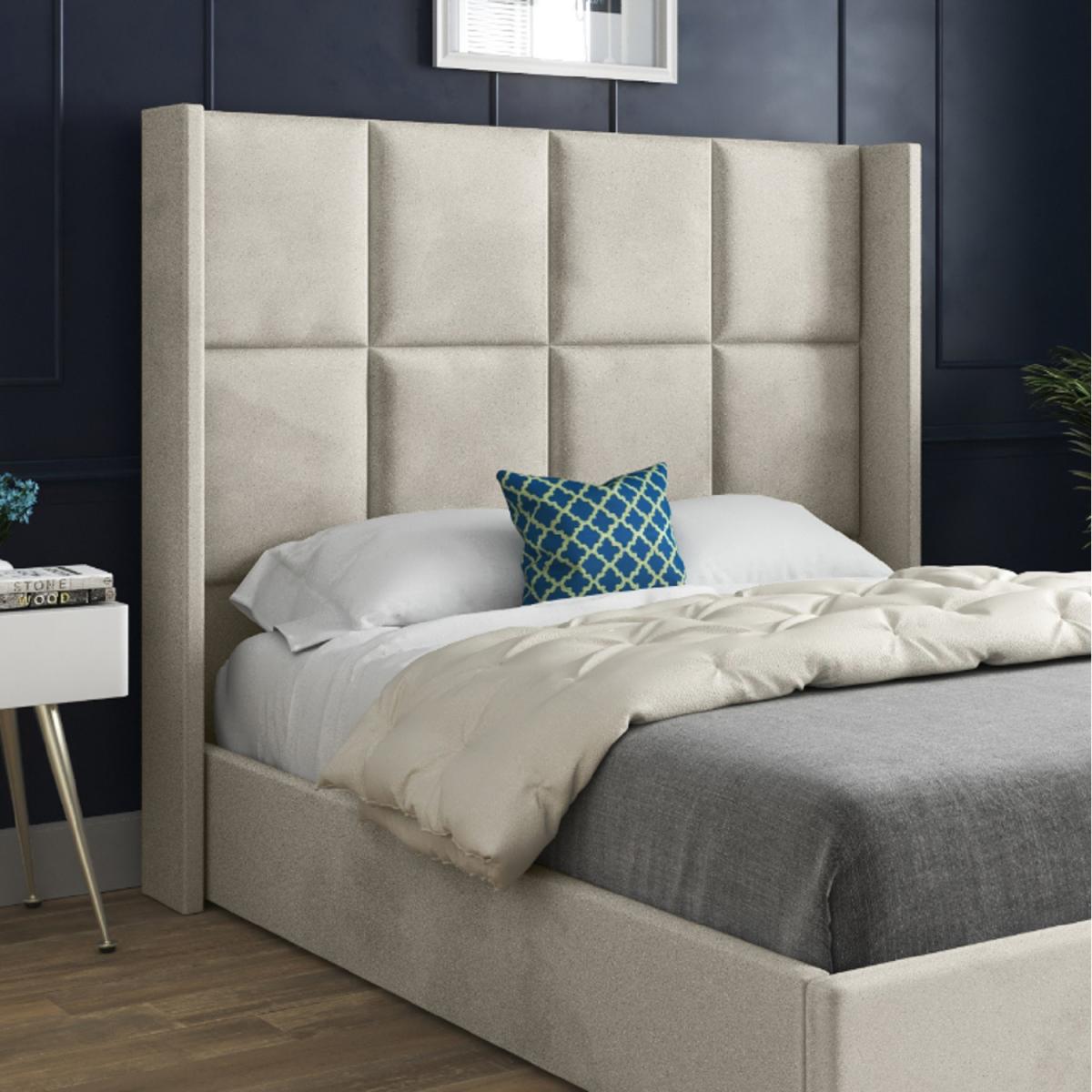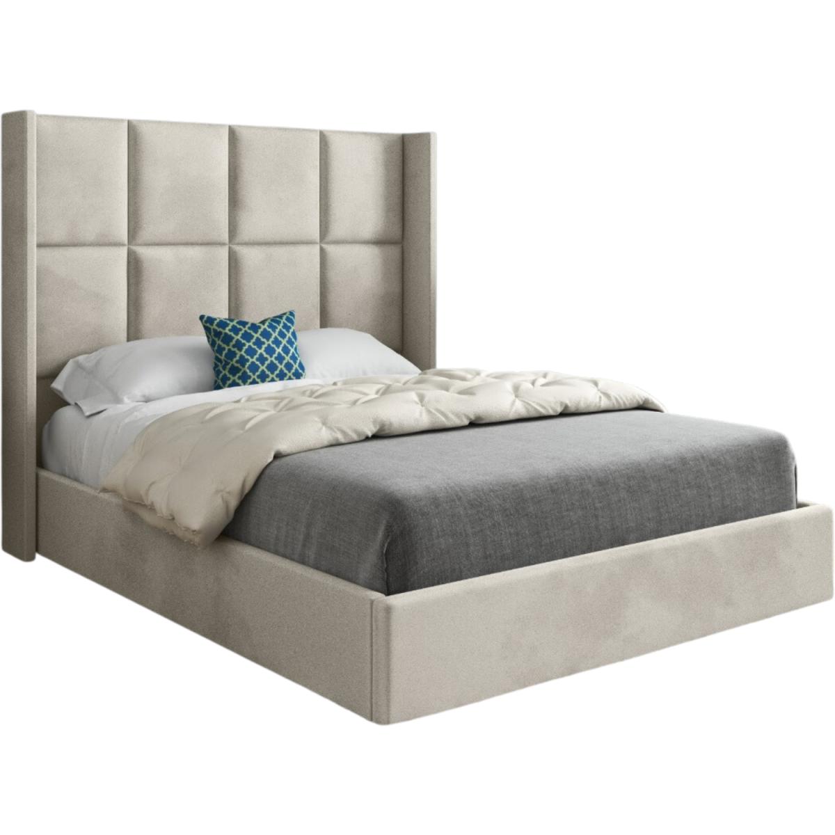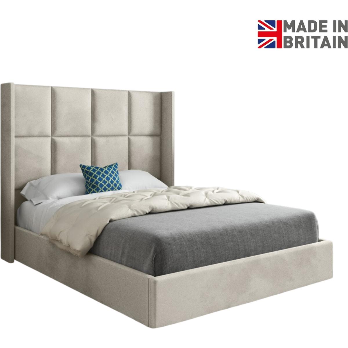 Quanta Straight Winged Upholstered Soft Velvet Bed Frame - Cream / King