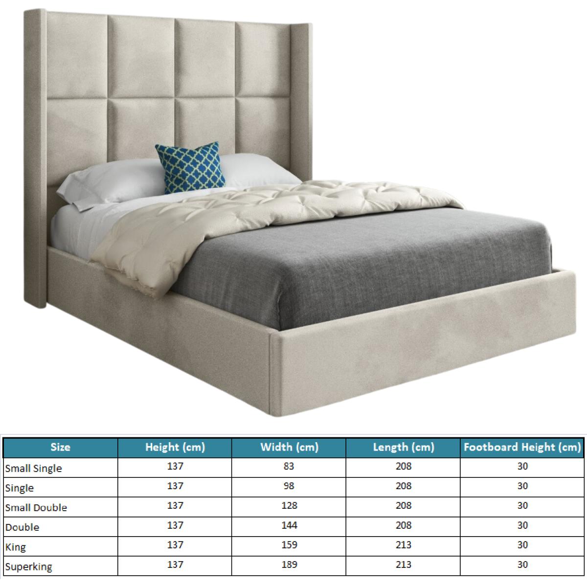 This bed features a modern panelled cube look. Its sleek style is a fabulous choice. The 7 inch protruding wings on this tall headboard with a low foot deliver a commanding presence. The bed speaks volumes in design and versatile choice for most interiors. The grid like design provides optical satisfaction as well as being effortlessly comfortable. The Quanta has a solid slatted base for robust quality and longevity.