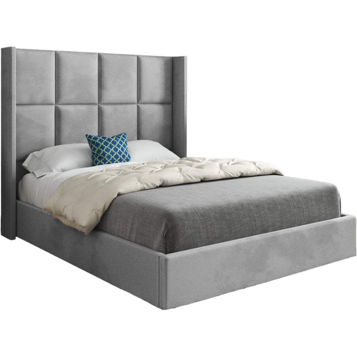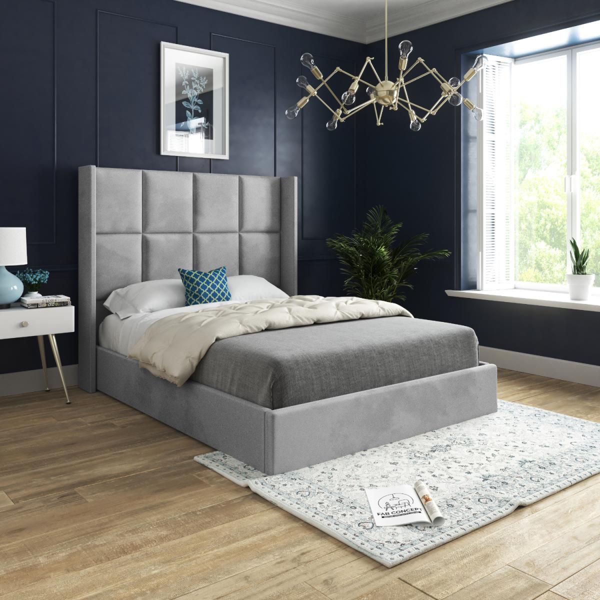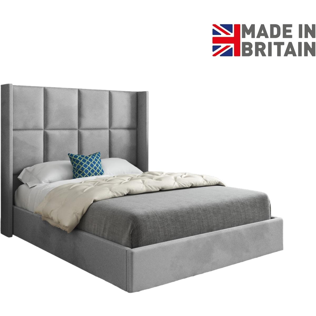 Quanta Straight Winged Upholstered Soft Velvet Bed Frame - Grey / Small Double