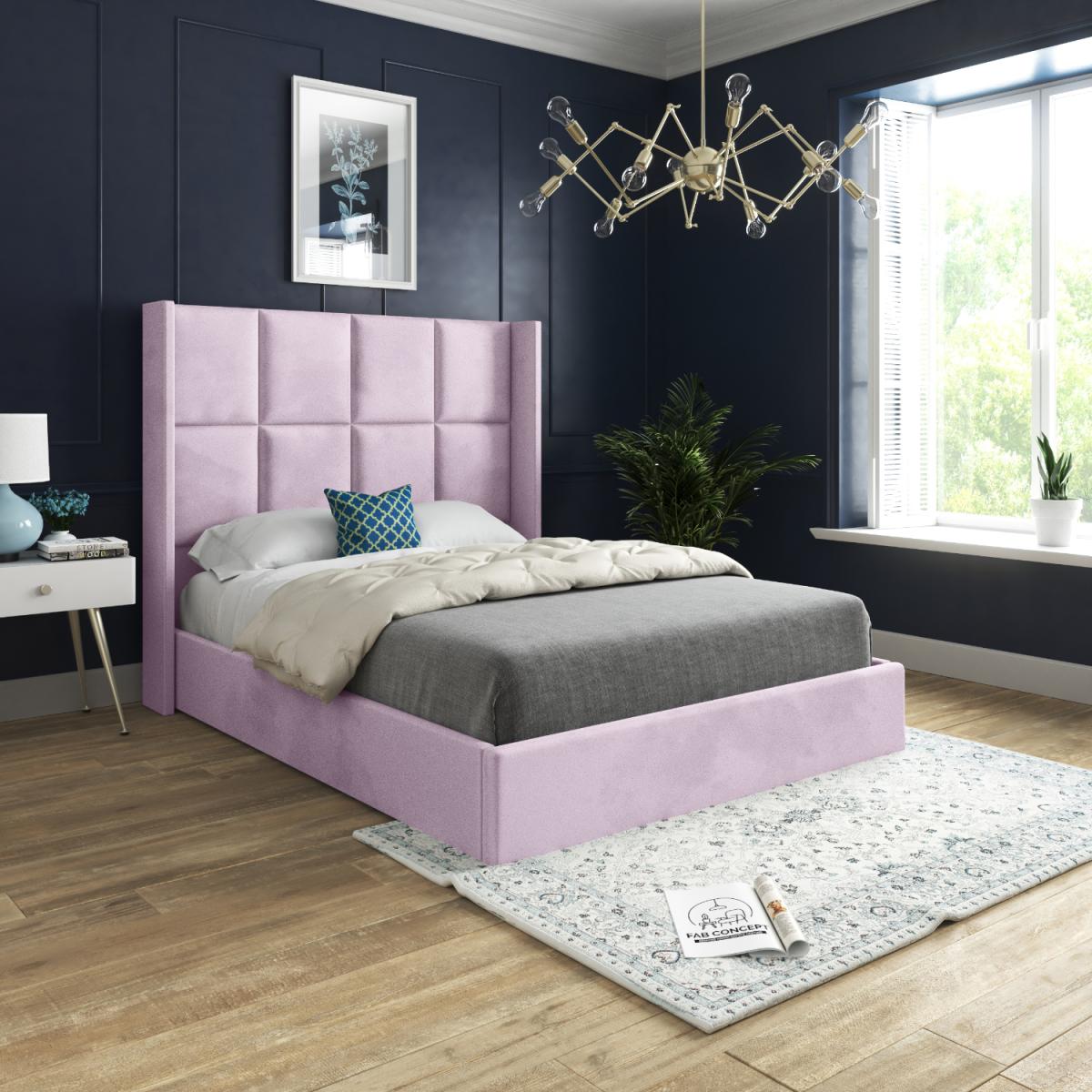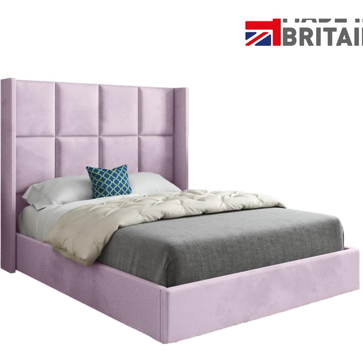 Quanta Straight Winged Upholstered Soft Velvet Bed Frame - Pink / Double