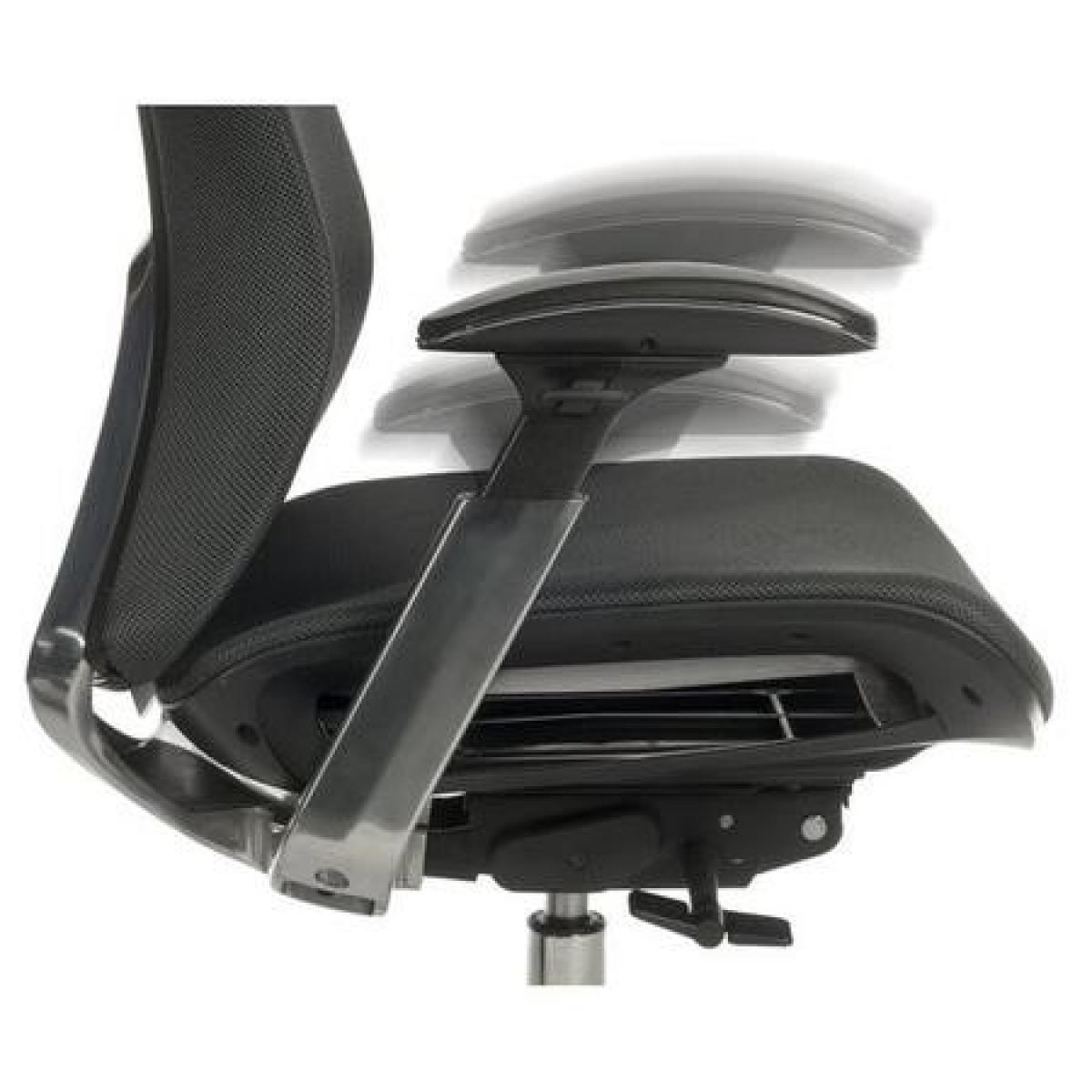This office chair strikes a great balance between functionality and modern style, making it an ideal choice for contemporary workspaces. I love its sleek black frame and mesh back, which add a touch of minimalism while ensuring breathability during long working hours. It works well in minimalist or industrial interiors, particularly paired with monochrome schemes or textured materials like concrete and wood. For styling tips, keep your desk area clean and uncluttered to highlight the chair’s clean lines, and consider adding soft accessories like a patterned cushion or colour-coordinated desk accessories to bring in a touch of personality without overwhelming the look. It's a practical yet stylish addition that complements most professional setups.