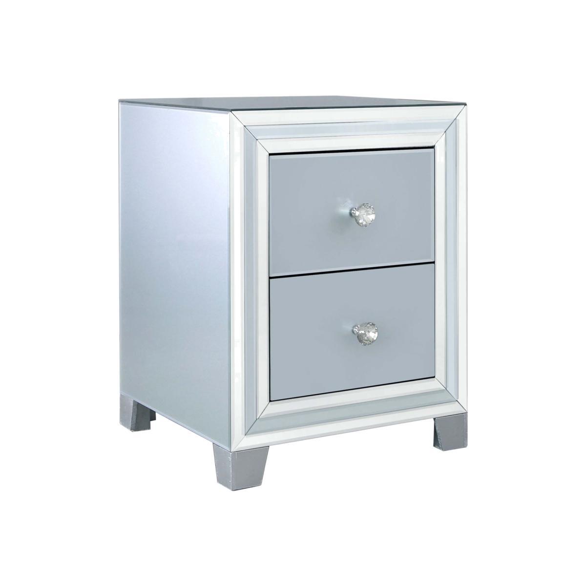 Quartz 2 Drawer Bedside Cabinet, Grey Glass and Mirror
