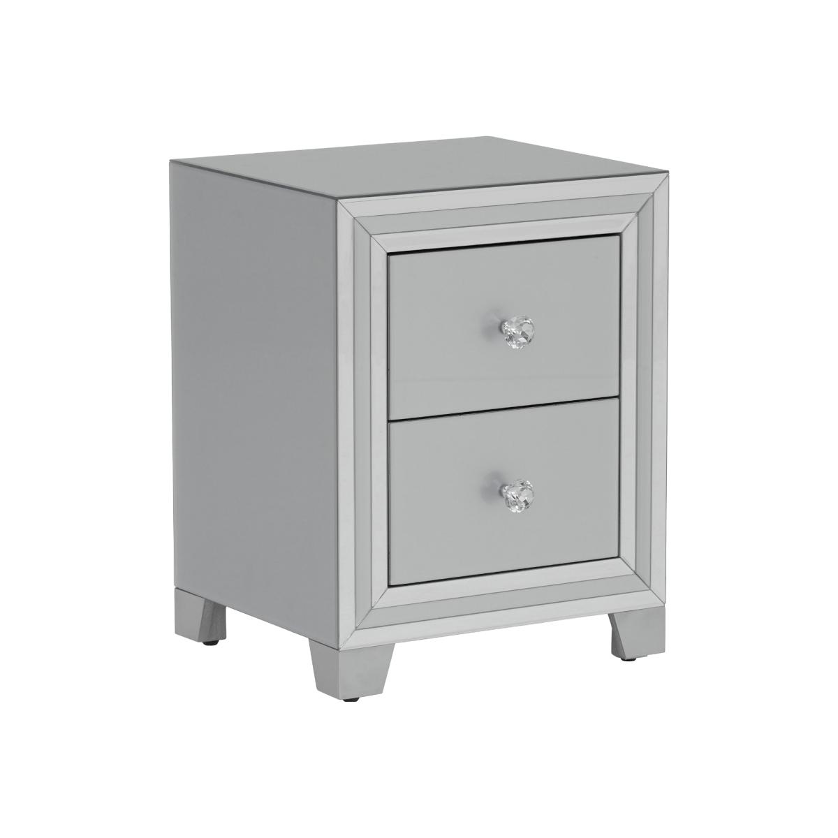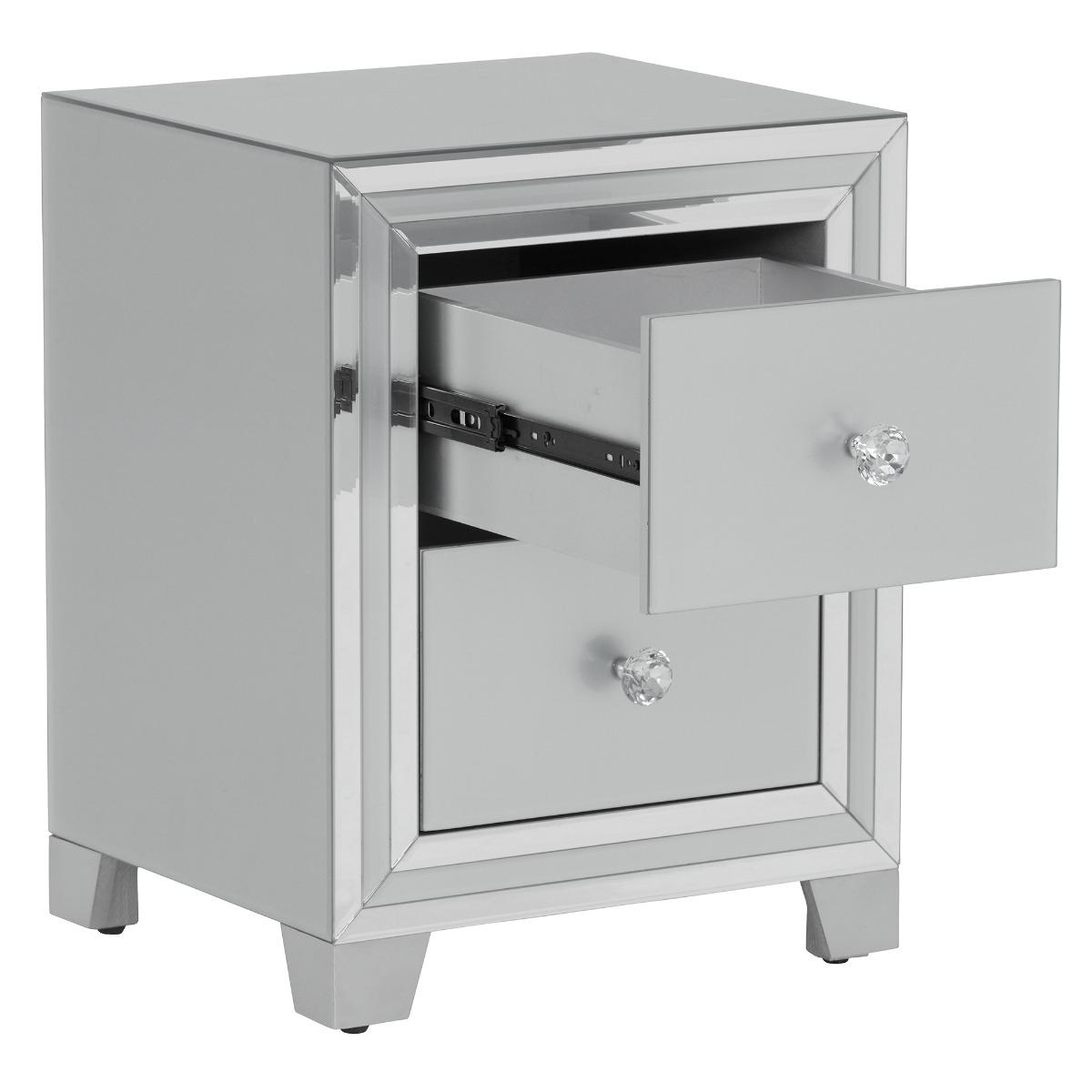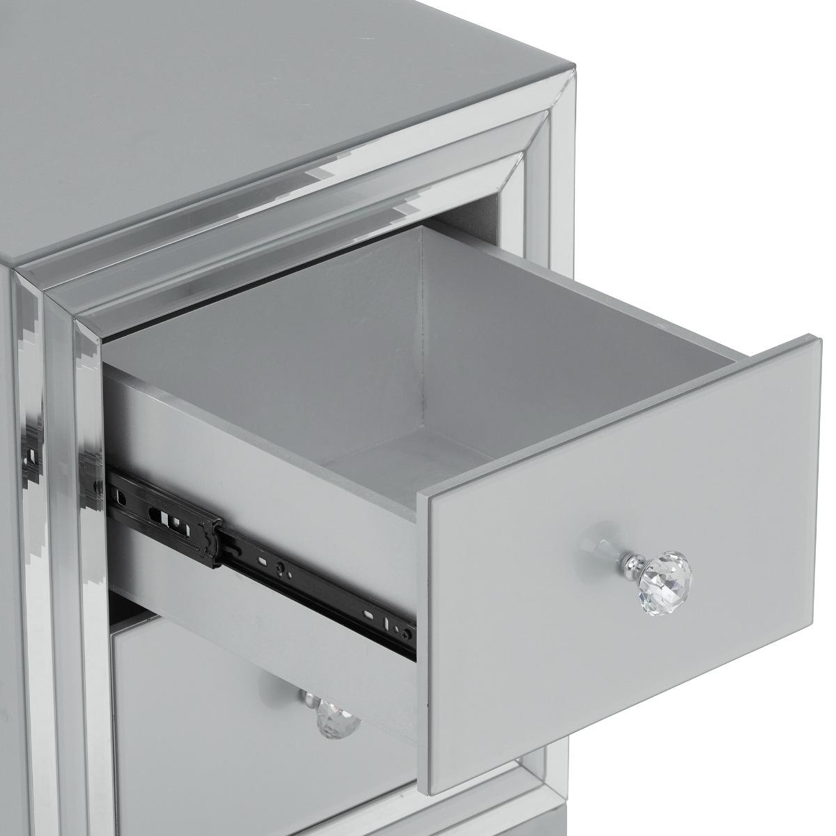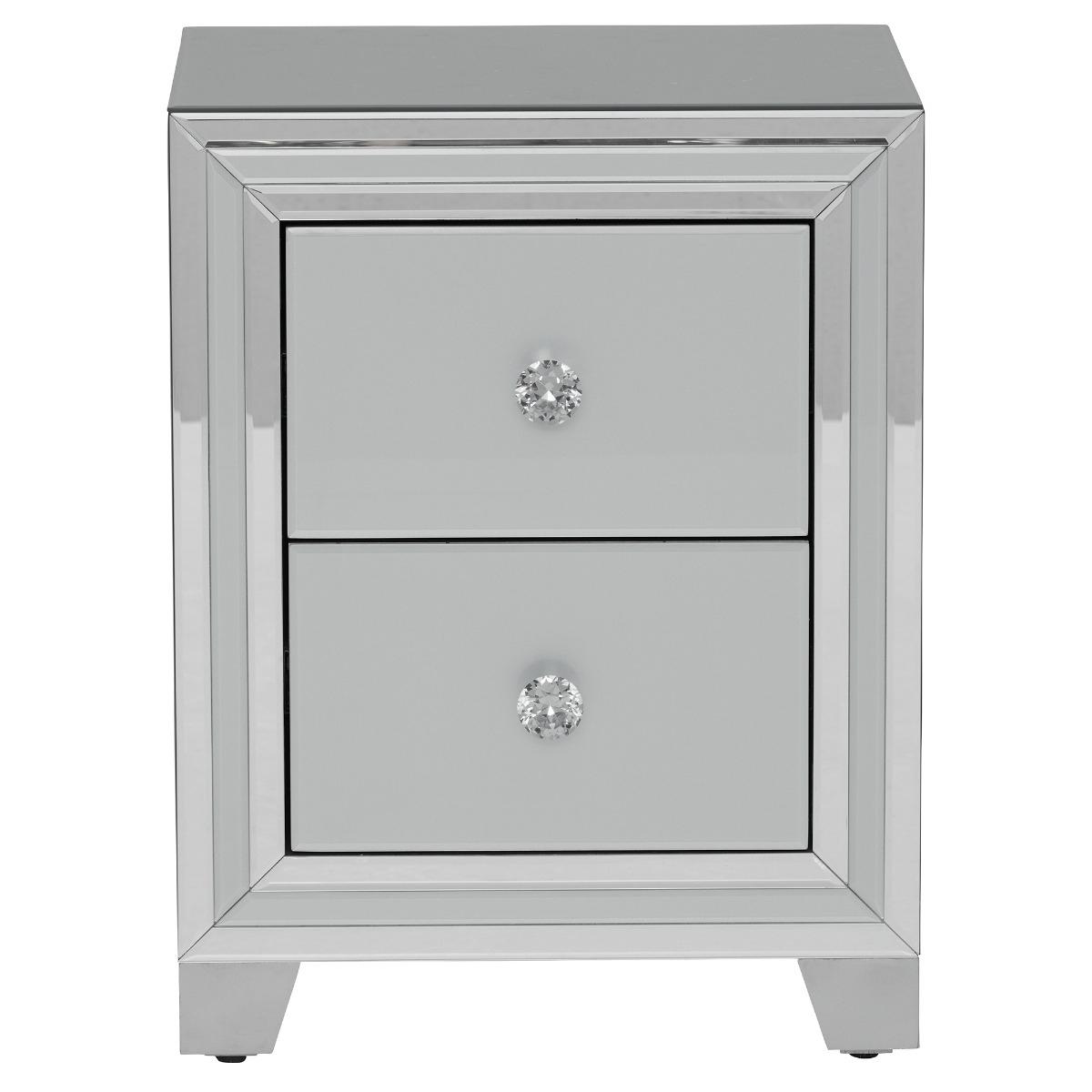 Design. Create a jewelled look in your bedroom with the Quartz 2 Drawer Bedside Cabinet. A beautifully practical piece with 2 sliding drawers that offers plenty of room for knick knacks. Crystal style handles emphasise the elegance of this piece and mirrored surfacing nods to art deco design. The Quartz 2 Drawer Bedside Cabinet would look perfect in a modern or traditional setting and pairs nicely with other items from the Quartz range.