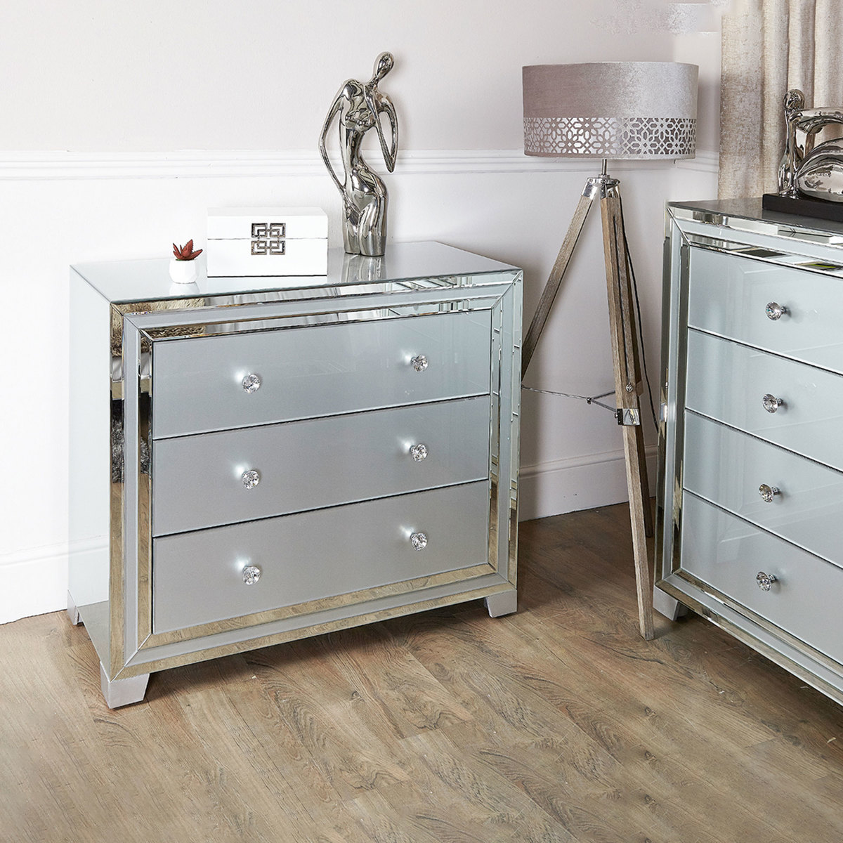 Quartz 3 Drawer Chest, Grey Glass and Mirror