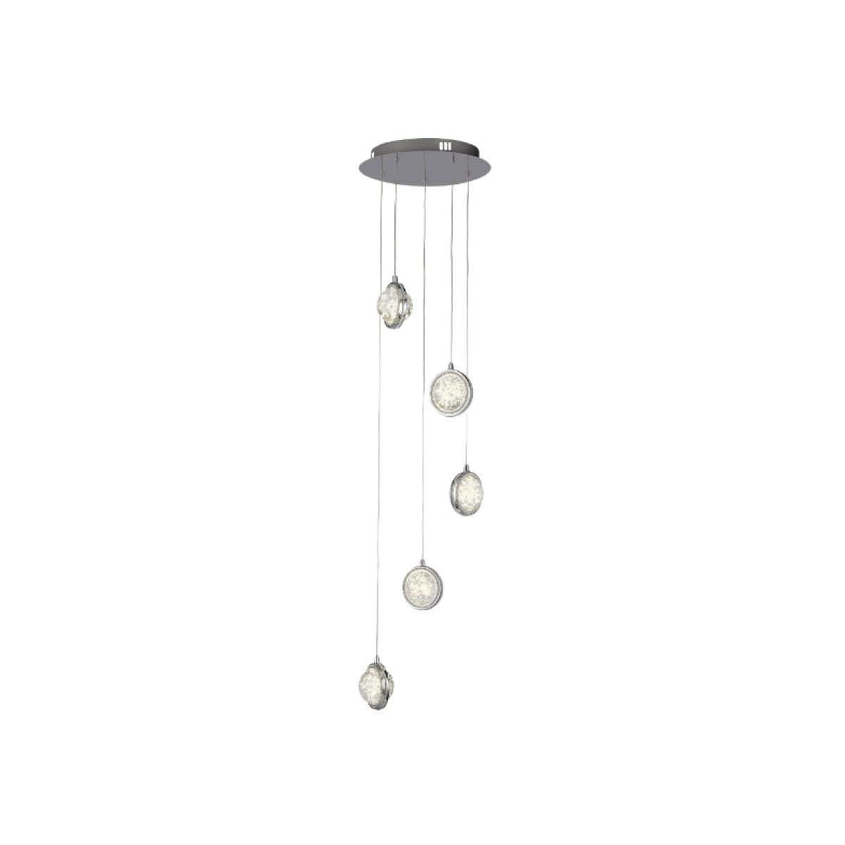 Modern 5 light multi drop pendant featuring a chrome finish Add a modern touch to your home with the Quartz ceiling pendant. Featuring a bubble glass detail and polished chrome finish, this ceiling light will look perfect in hallways and above staircases. Modern 5 light multi drop pendant featuring a chrome finish Add a modern touch to your home with the Quartz ceiling pendant. Featuring a bubble glass detail and polished chrome finish, this ceiling light will look perfect in hallways and above staircases.