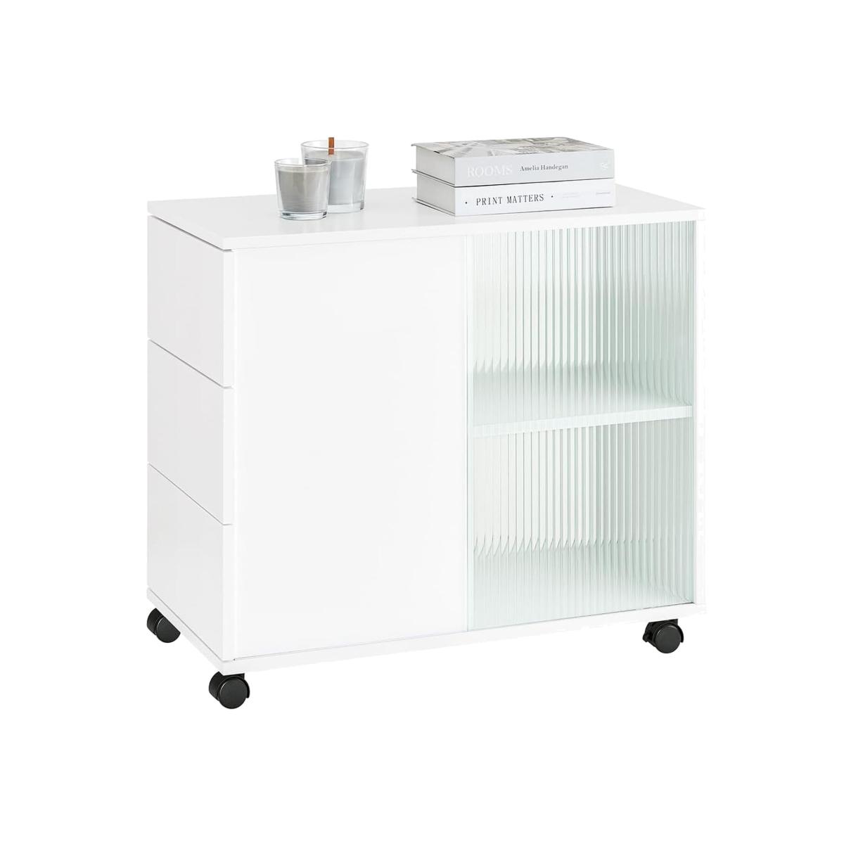 I love how this white file cabinet offers a clean, modern look that can seamlessly blend into various interiors, from contemporary offices to minimalist home study spaces. Its compact size makes it versatile for smaller rooms or tightly packed office corners, while the white finish keeps the space feeling bright and airy. Practical styling tips include pairing it with colourful organisational accessories or contrasting textures, such as a wooden desk or a plush fabric chair, to add warmth and personality. The sliding glass door on one side also provides an opportunity to display decorative items or keep some items visibly organised, making it both functional and visually appealing.