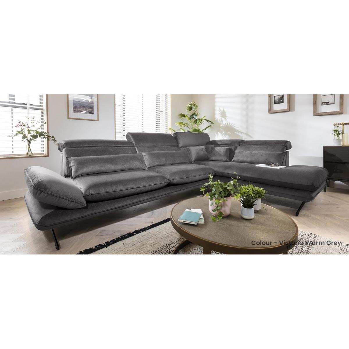 Make a statement in your living area with the 5 seater luxurious Reid modular corner sofa with open-end, as well as adjusting armrests and headrests for utterly comfortable lounging. An extra large sofa that instantly becomes the centrepiece of any modern, traditional or minimalist living room. Its robust, wooden frame and minimal metal legs ensure longevity, while the premium fixed upholstery covers thick layers of foam that guarantee supportive seating. The sleek lines and simplistic design of the sofa are enriched by the adjustable headrests and armrests that lend a practical charm to the overall appeal of the sofa set. This L-shape modular corner sofa is a functional 5-seater, adaptable to your interior dimensions by adding extra modules. The thickly padded sofa is tailored in a choice of over 50 exclusive premium fabrics that boast stitching that is expertly sewn by upholstery specialists. Stability of the sofa is ensured with durable metal legs. Need assistance? Use Live Chat to send us a message. If you need more information about this product, use the Live Chat service to speak to the team or send us a message. Spread the cost our with interest-free finance options. Minimum spend applies. W340cm D236cm H106cm Features adjustable armrests & headrests All dimensions are approximate due to fabric differences. Please allow tolerance of +/- 5cm to any direction