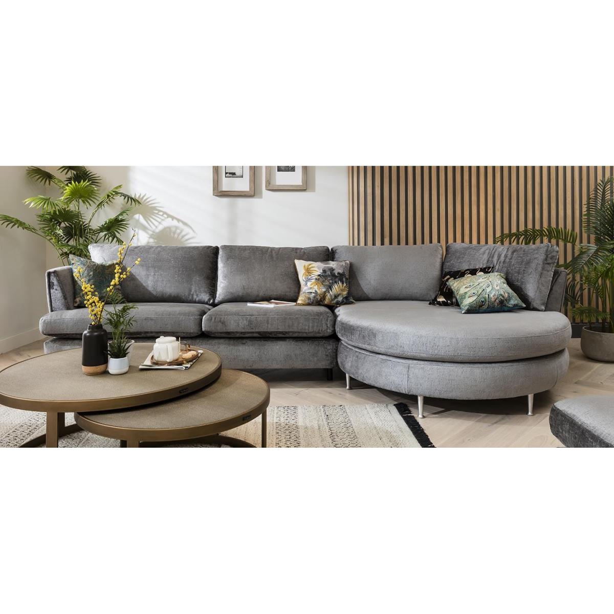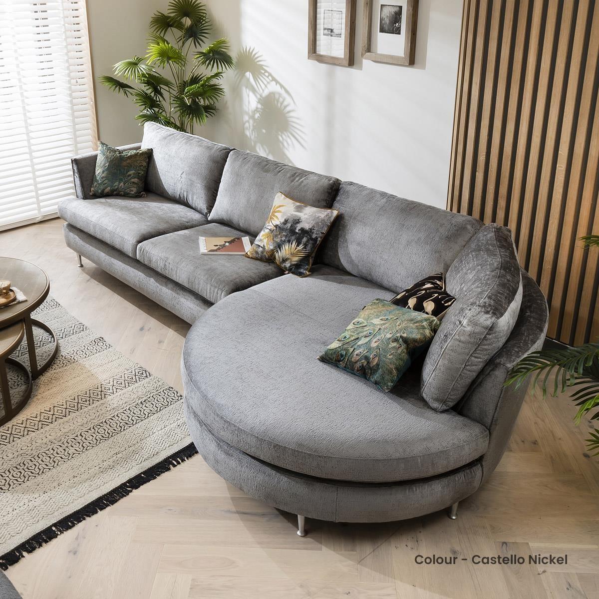 Tessa is a large modern 5 seater sofa that is also modular, with a spacious round chaise-end, perfect for modern family homes, offering comfort and style. Make your living room stylish and well-arranged with this modern sectional sofa. Create a cosy corner to relax in after a long day at work. Relax in luxurious comfort with this sectional sofa for five. It's curvaceous silhouette is upholstered in your choice of on-trend premium fabric, while silver Scandinavian-inspired metallic legs not only provide support to the construction but also give it a light impression. The elegantly curvaceous and sophisticated design of the sofa is enriched by generously deep seats and snuggle chair-inspired chaise-end that lends a relaxing charm to the overall appeal of the sofa set. This straight modular sofa is an amazingly sophisticated 5-seater sofa, adaptable to your interior dimensions by adding extra modules. The thickly padded sofa is tailored in a choice of 50 exclusive premium fabrics that boast stitching that is expertly sewn by upholstery specialists. Thanks to the well-balanced sink in' feel and its sophisticated look, this sofa is exclusively designed for indulgent comfort. Need assistance? Use Live Chat to send us a message. If you need more information about this product, use the Live Chat service to speak to the team or send us a message. Spread the cost our with interest-free finance options. Minimum spend applies. W352cm D165cm H90cm Fully modular extendable design All dimensions are approximate due to fabric differences. Please allow tolerance of +/- 5cm to any direction