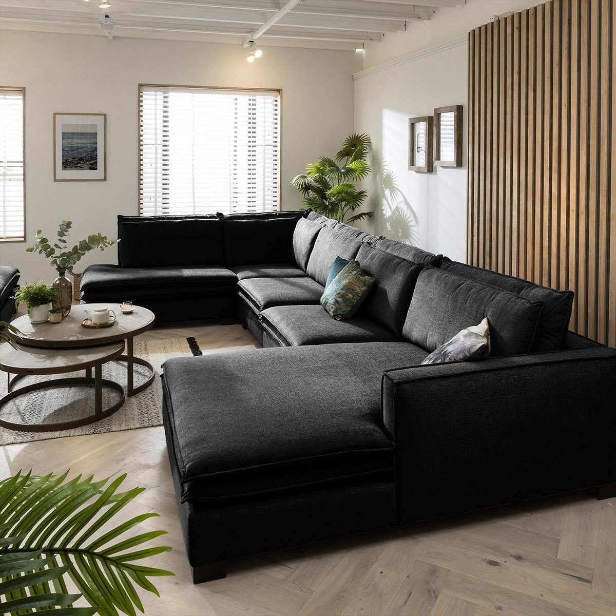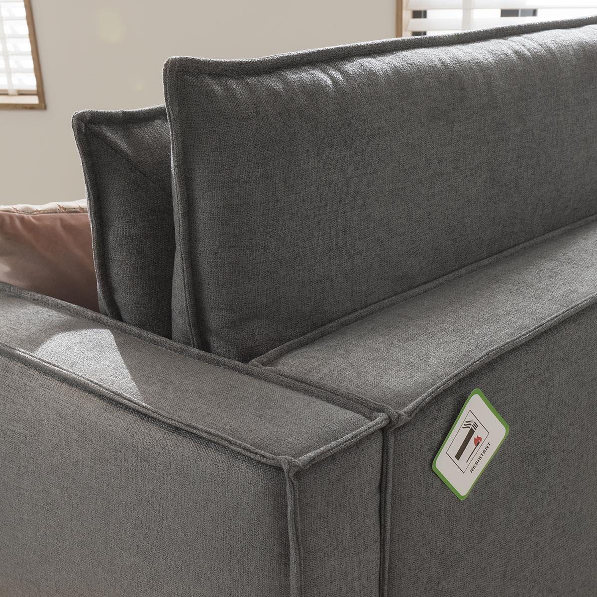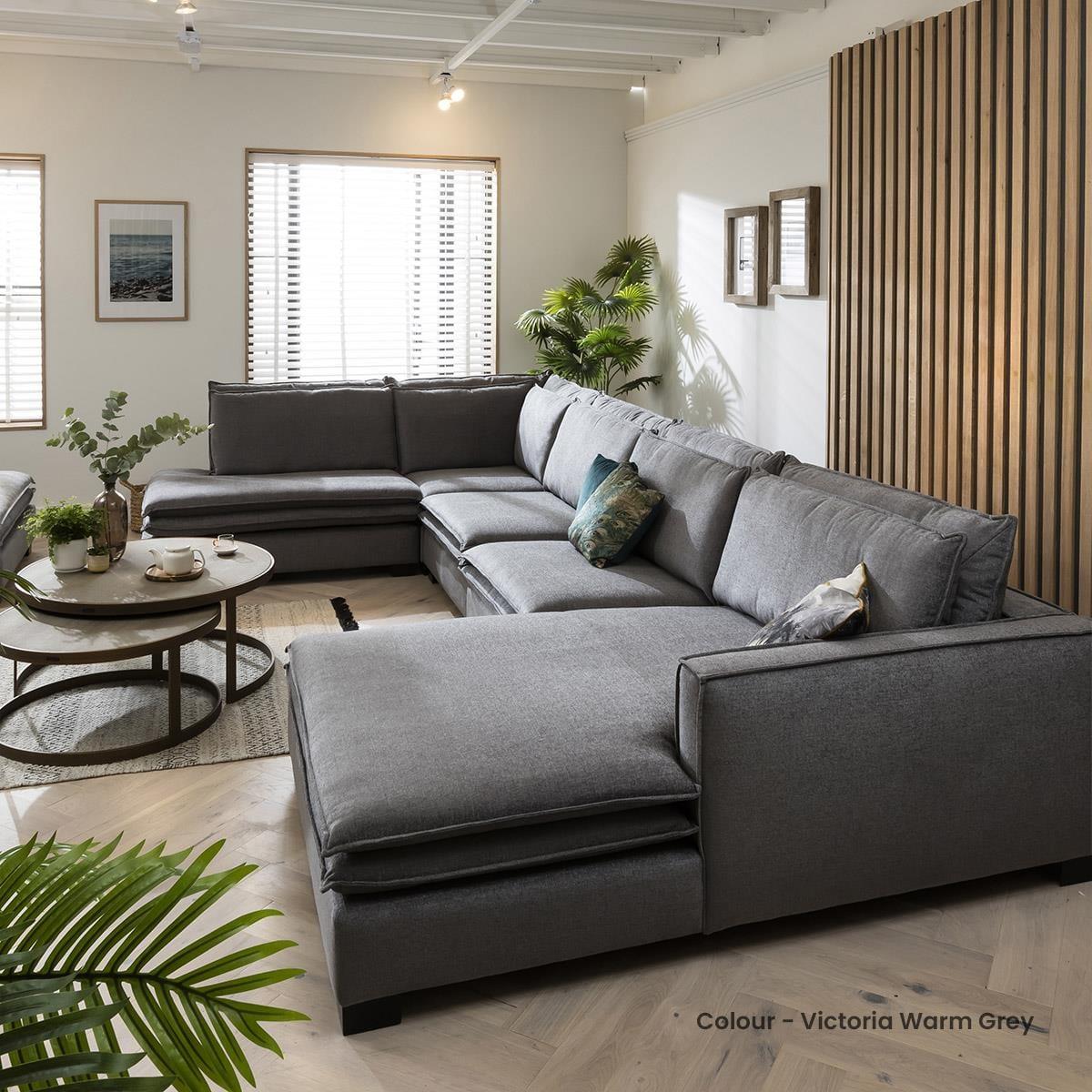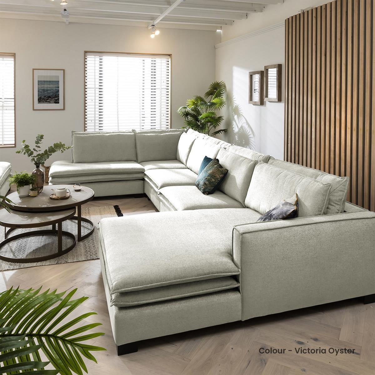 The Kyle modular 6 seater left-hand corner sofa with chaise-end, designed with long, elegant lines, with light expression that offers deep modern comfort in any home. Make your living room stylish and well-arranged with this modern sectional sofa. The Kyle XL collection offers extra deep seating & style that instantly becomes the centrepiece of any modern, traditional or minimalist living room. Its robust, wooden frame and legs ensure longevity, while the premium upholstery covers thick layers of foam that guarantee comfortable seating. The sleek lines and simplistic design of the sofa are enriched by the dual-cushion seat and backs that add a cosy charm to the overall appeal of the sofa set. Stretch out freely thanks to the extra wide chaise-end which offers plenty of room for 2 people to snuggle - the perfect cinema room sofa! This L-shape modular corner sofa with chaise-end is a functional 6-seater, adaptable to your interior dimensions by adding extra modules. The thickly padded sofa is tailored in a choice of 50 exclusive premium fabrics that boast stitching that is expertly sewn by upholstery specialists. Stability of the sofa is ensured with durable wooden legs. With its modern appearance, this sofa fits well with an array of décors making a chic centrepiece of any room. Need assistance? Use Live Chat to send us a message. If you need more information about this product, use the Live Chat service to speak to the team or send us a message. Spread the cost our with interest-free finance options. Minimum spend applies. W446cm D249cm H92cm Fully modular extendable design All dimensions are approximate due to fabric differences. Please allow tolerance of +/- 5cm to any direction