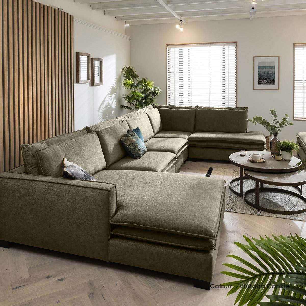 The Kyle modular 6 seater right-hand corner sofa with chaise-end, designed with long, elegant lines, with light expression that offers deep modern comfort in any home. Make your living room stylish and well-arranged with this modern sectional sofa. The Kyle XL collection offers extra deep seating & style that instantly becomes the centrepiece of any modern, traditional or minimalist living room. Its robust, wooden frame and legs ensure longevity, while the premium upholstery covers thick layers of foam that guarantee comfortable seating. The sleek lines and simplistic design of the sofa are enriched by the dual-cushion seat and backs that add a cosy charm to the overall appeal of the sofa set. Stretch out freely thanks to the extra wide chaise-end which offers plenty of room for 2 people to snuggle - the perfect cinema room sofa! This L-shape modular corner sofa with chaise-end is a functional 6-seater, adaptable to your interior dimensions by adding extra modules. The thickly padded sofa is tailored in a choice of 50 exclusive premium fabrics that boast stitching that is expertly sewn by upholstery specialists. Stability of the sofa is ensured with durable wooden legs. With its modern appearance, this sofa fits well with an array of décors making a chic centrepiece of any room. Need assistance? Use Live Chat to send us a message. If you need more information about this product, use the Live Chat service to speak to the team or send us a message. Spread the cost our with interest-free finance options. Minimum spend applies. W446cm D249cm H92cm Fully modular extendable design All dimensions are approximate due to fabric differences. Please allow tolerance of +/- 5cm to any direction