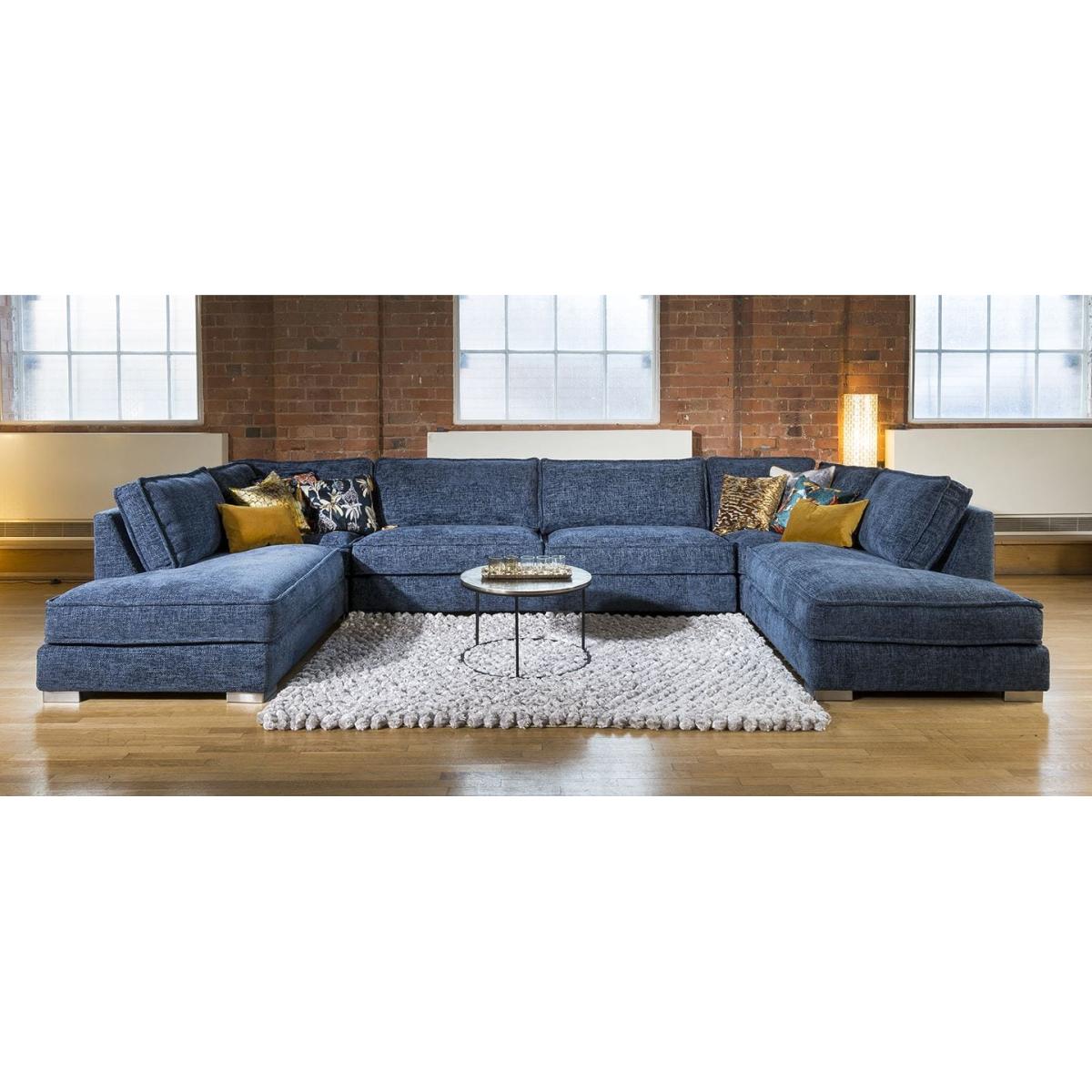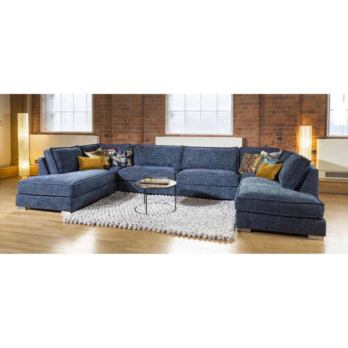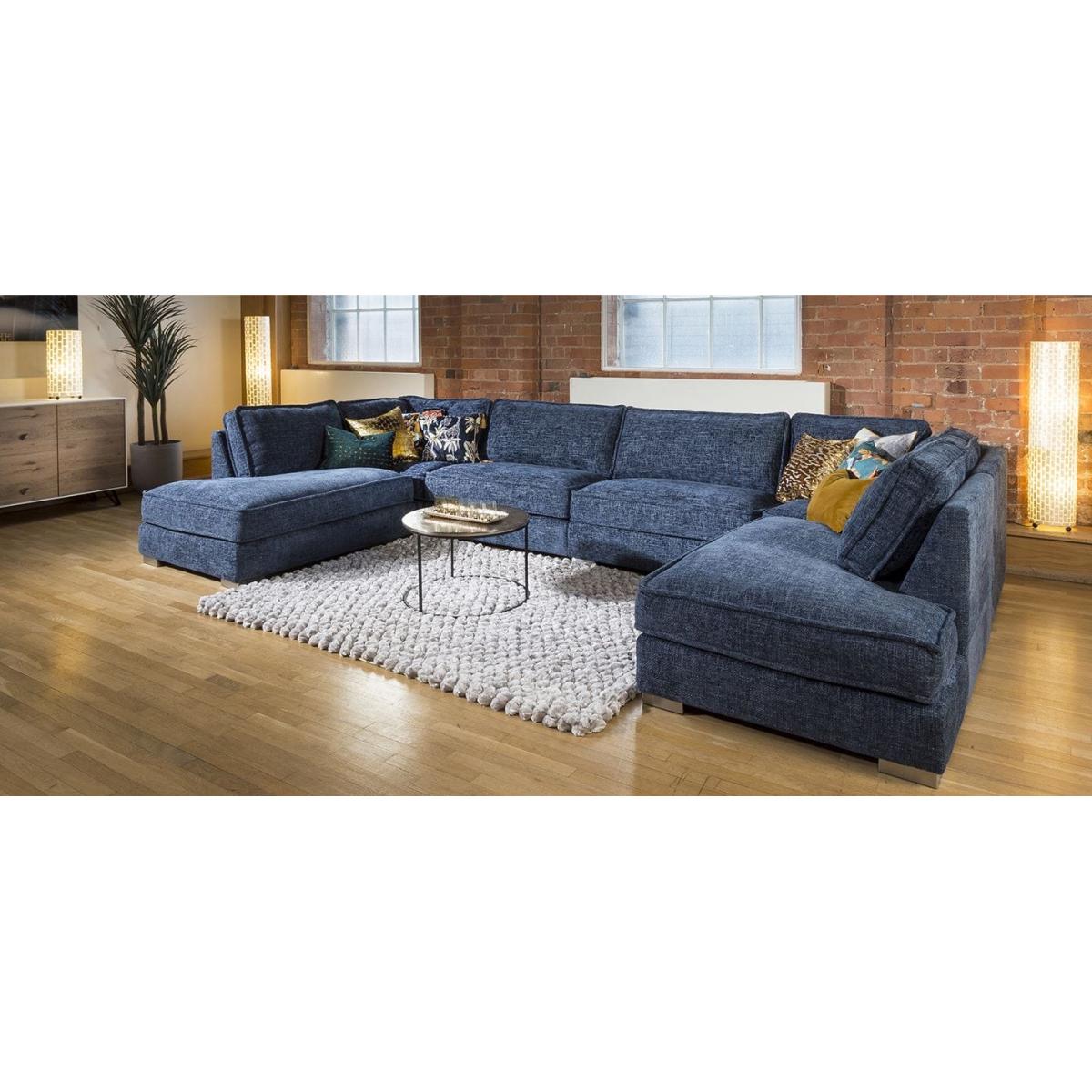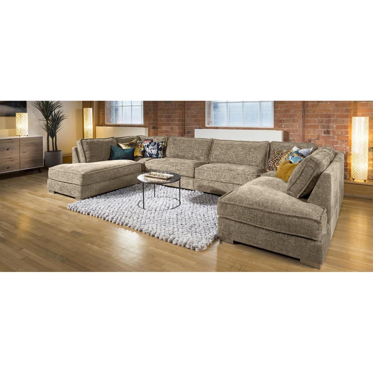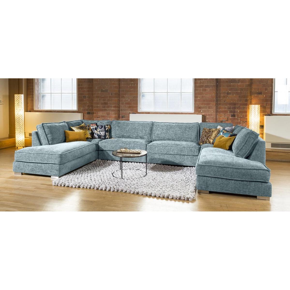 The exquisite Lexci 7 seater settee is exclusive to Quatropi. The contemporary couch can easily seat up to 7 people and would look perfect in any living area or cinema room. The Lexci 9 sofa is a great addition to the Lexci range and would be complemented by one of the matching Lexci armchair. This sofa is fully customisable with a full range of fabrics & colours to choose from. Beautiful design with soft padded arms, massive corner and U shaped sofa options and two different sizes of footstools. The Lexci range includes large back pillow cushions that doesn't only provide a stunning look, they also give versatility to ensure your comfort whatever your size or seating position. All pieces are superb quality with exceptional attention to detail especially the French stitched seams. Some of the great features of the Lexci range include oversize sections including corners, middle sections, footstools and Chaise ends, striking brushed stainless feet, thick French seams and soft back cushions give a completely unique contemporary look. Built with pillow soft hollow-fibre and high density foam cushion fillings, plump the back cushions occasionally to keep them looking fabulous. The Lexci range is completely modular so you can add and take away pieces as you need. Let our experts help you find the exact size and shape to fit your space perfectly. W400cm D220cm H83cm Soft Sit Cushions All dimensions are approximate due to fabric differences. Please allow tolerance of +/- 5cm to any direction
