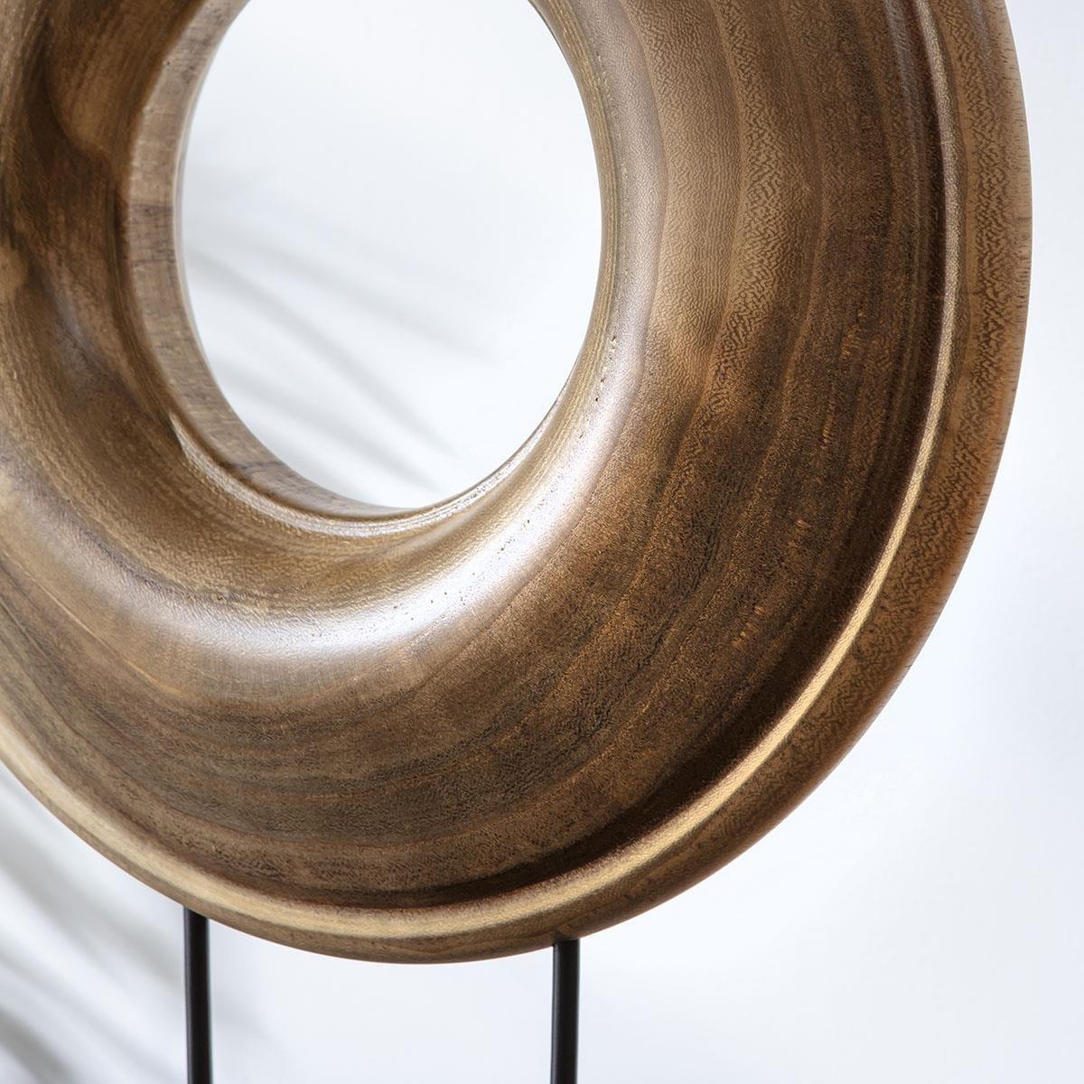 Elevate your decor with this elegant wooden disc ornament. Crafted from natural wood with a smooth finish, it features a minimalist design with a central hole. Mounted on a sleek black metal base, it blends timeless style and modern charm, perfect for any setting. Quatropi modern home accessories offer stylish room decorations with contemporary designs and premium finishes. Crafted for durability, our home accessories elevate any modern home. Make a lasting impression and enhance your space with beautiful home decorations and accessories for the home. These modern pieces are handcrafted in small batches by skilled artists, ensuring each one is perfect down to the smallest detail. With meticulous attention to quality, they add a sophisticated touch to any space, perfect for those seeking artistry and exclusivity in every design. Got a question about this piece? Contact our team who are on-hand and ready to assist you. Use the live chat function for quick and easy support. W35cm D8cm H45cm Premium home accessory Decorative ornament