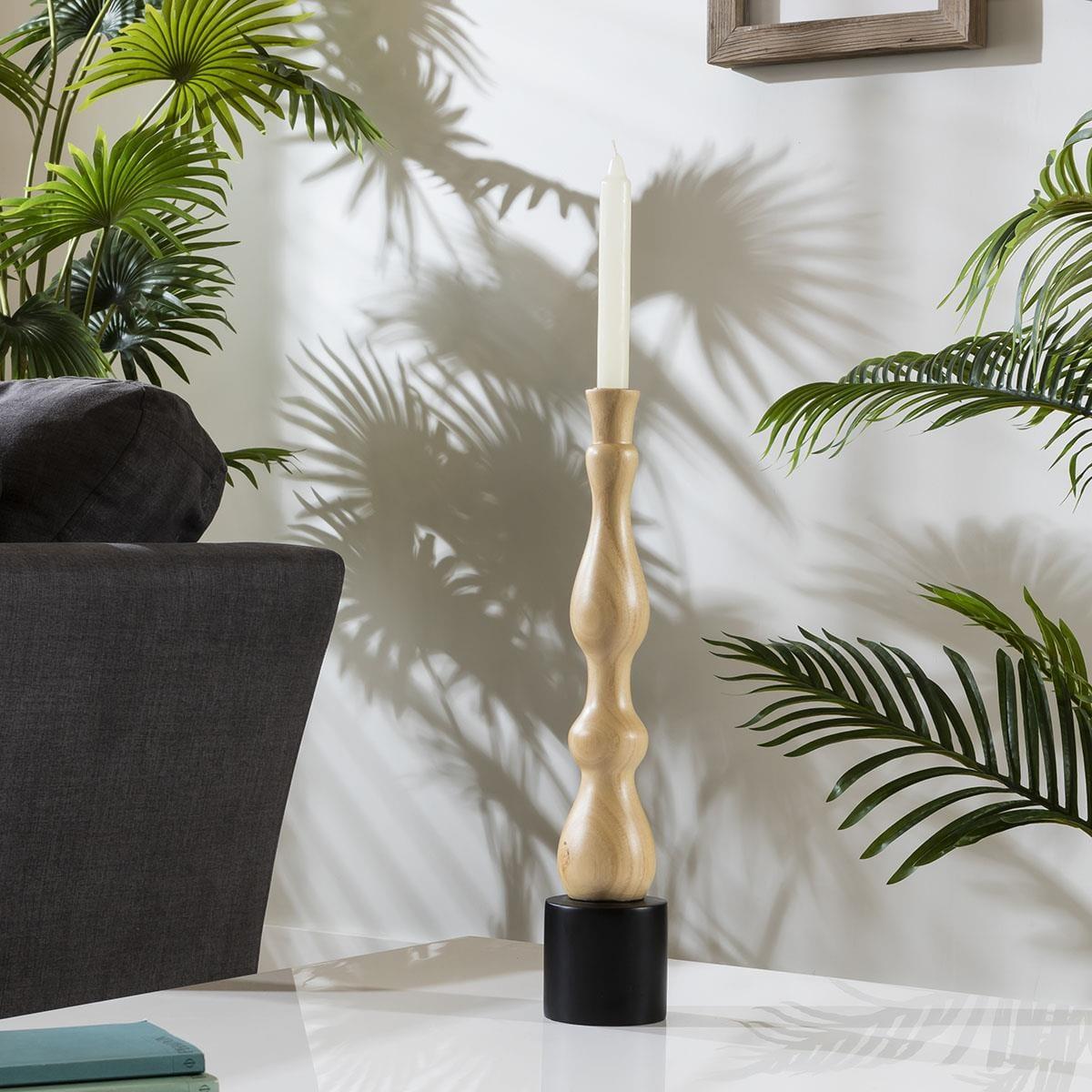 I really like this carved wooden candle holder for its sculptural quality and versatility. Its natural wood finish makes it a great accent piece in both modern and more traditional interiors, especially those with a neutral or earthy colour palette. It works well displayed on a mantel, sideboard, or centre of a dining table to add warmth and interest. For practical styling tips, try pairing it with smaller candles or combining it with other natural elements like potted plants or textured ceramics to create a layered, balanced visual. Its 42cm height makes it ideal as a statement piece that enhances a space without overpowering it.