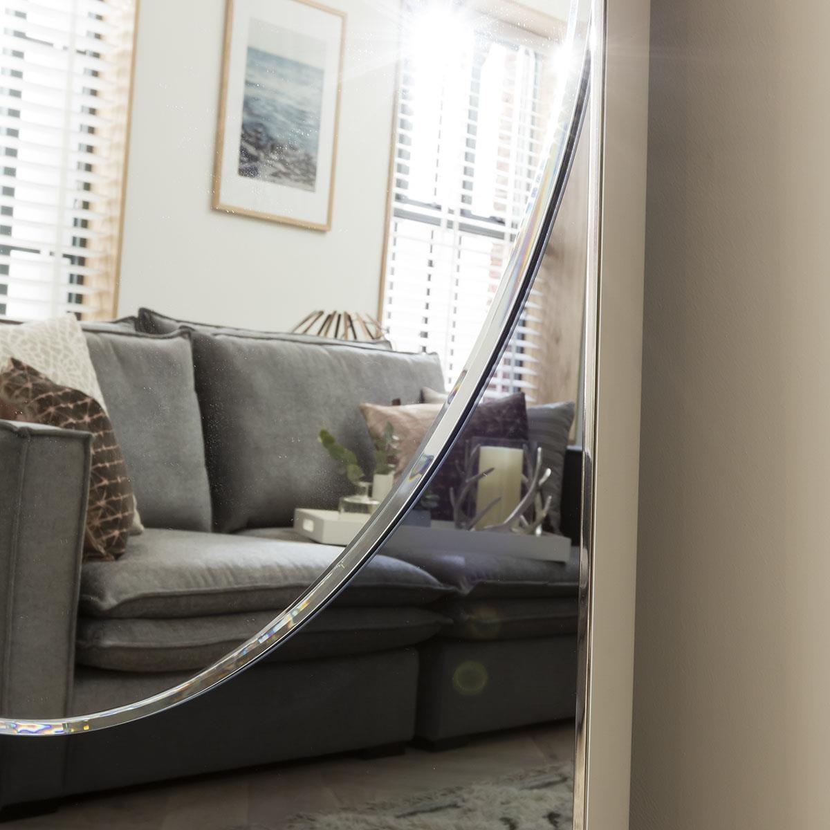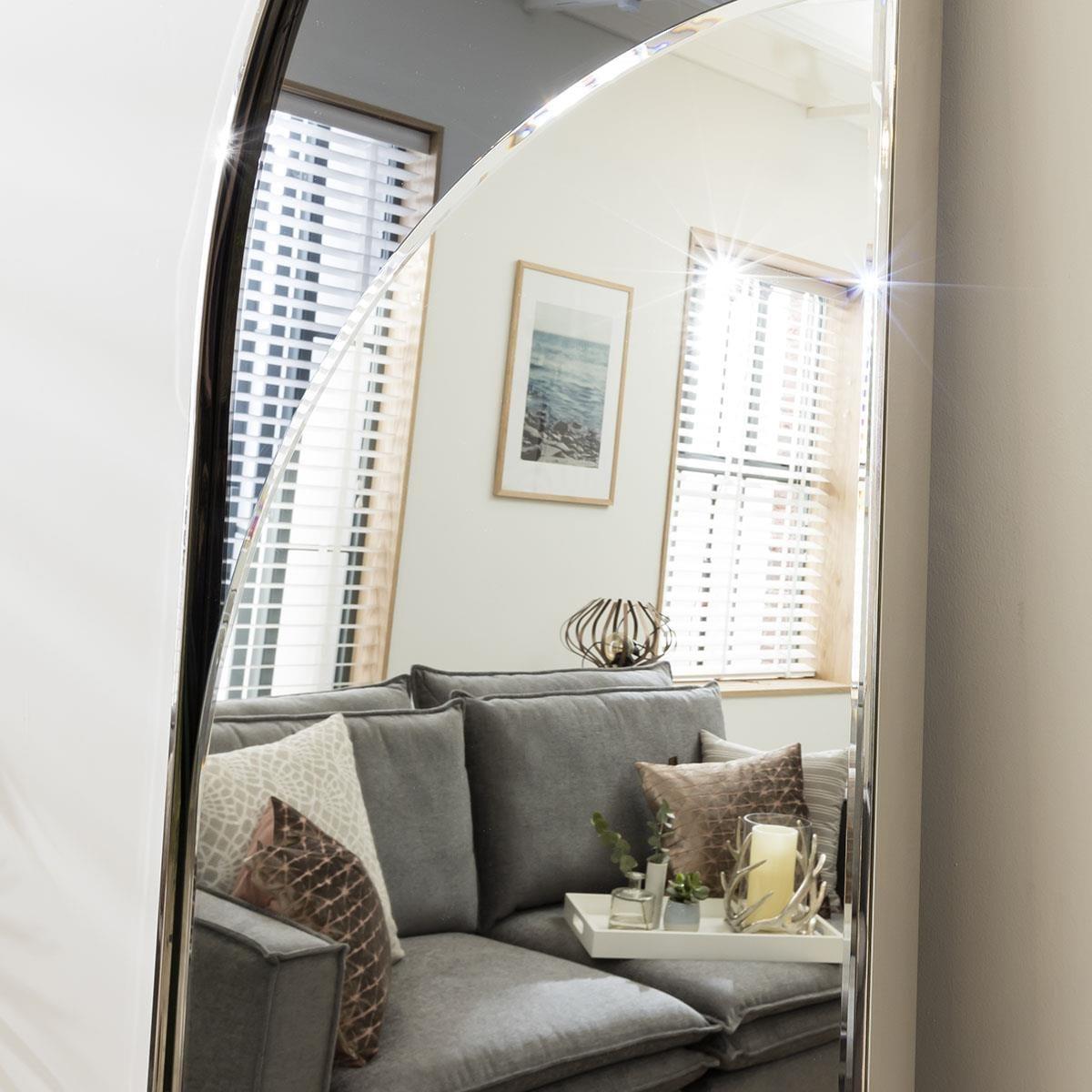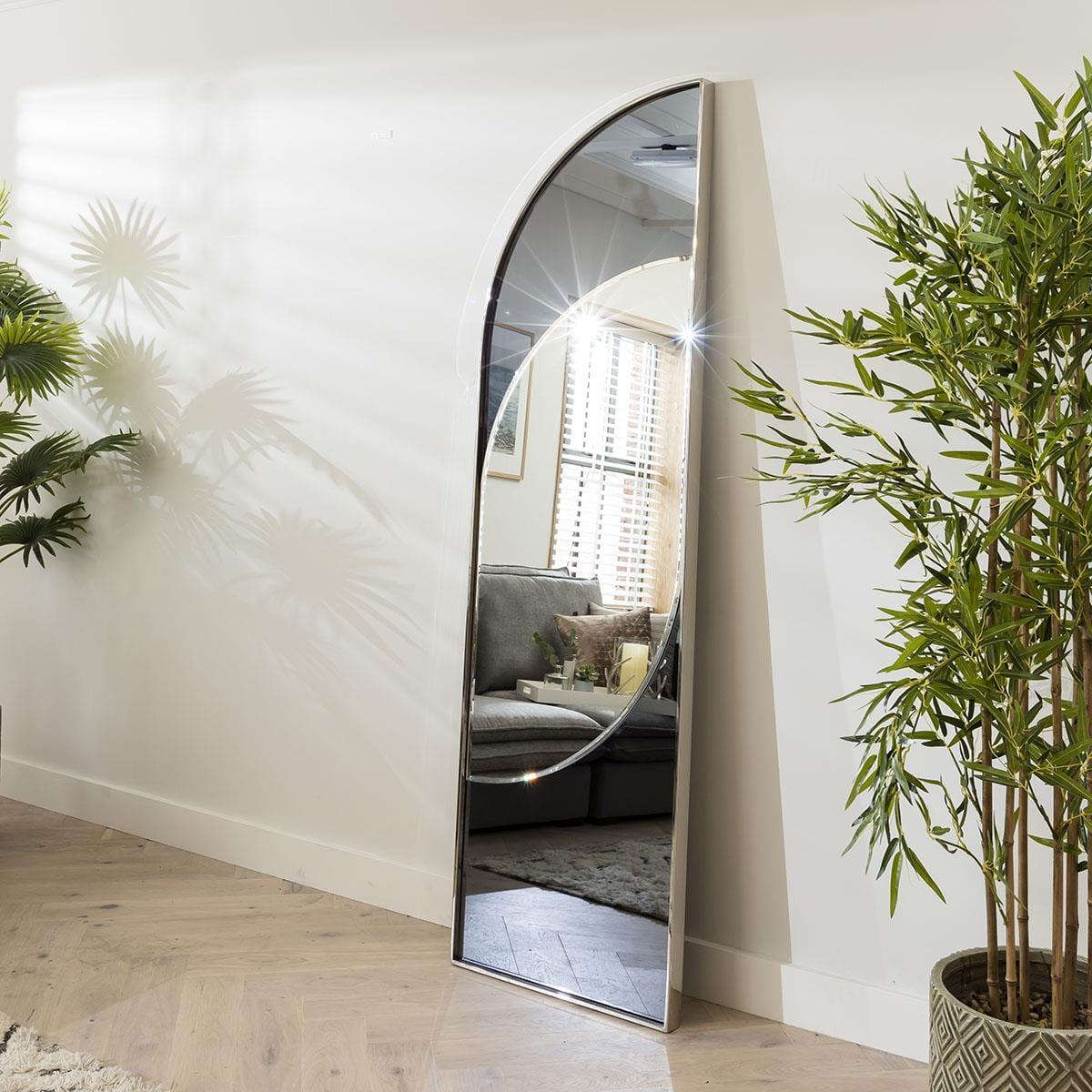 This full length lean-to dress arch mirror adds a touch of class to any room. Consisting of a high-quality shiny stainless steel frame, smoked from the top and bottom of the mirror itself to add a touch of elegance to your room. This 200cm tall lean-to dress mirror is 60cm wide and suitable for any decor. W60cm D5cm H200cm 2 Metre Mirror Quatropi Modern Home Accessories