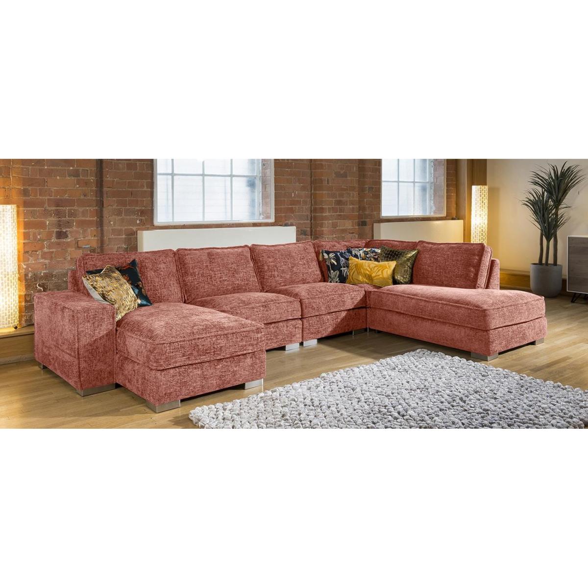 The luxury Lexci 5 seater settee is exclusive to Quatropi. The Modern sofa can comfortably seat 5 people and would look perfect in any living room or cinema room. The Lexci 15. R sofa is a great addition to the Lexci range and would be complemented by one of the matching Lexci footstools. This settee is fully customisable with a full range of fabrics & colours to choose from. Beautiful design with soft padded arms, massive corner and U shaped sofa options and two different sizes of footstools. The Lexci range includes large back pillow cushions that doesn't only provide a stunning look, they also give versatility to ensure your comfort whatever your size or seating position. All pieces are superb quality with exceptional attention to detail especially the French stitched seams. Some of the great features of the Lexci range include oversize sections including corners, middle sections, footstools and Chaise ends, striking brushed stainless feet, thick French seams and soft back cushions give a completely unique contemporary look. Built with pillow soft hollow-fibre and high density foam cushion fillings, plump the back cushions occasionally to keep them looking fabulous. The Lexci range is completely modular so you can add and take away pieces as you need. Let our experts help you find the exact size and shape to fit your space perfectly. W365cm D220cm H83cm Soft Sit Cushions All dimensions are approximate due to fabric differences. Please allow tolerance of +/- 5cm to any direction