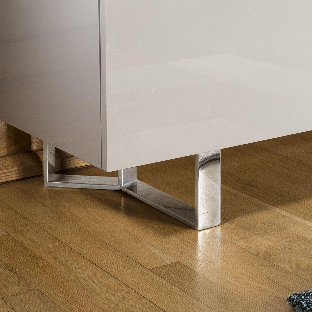 Our Darcy range is the ultimate in affordable, ultra-modern luxury. The sleek combination of light dove grey hi-gloss paint and mirror finish stainless steel kinked legs are setting a new standard in funiture fashion. The Darcy 1.6mtr TV cabinet features 3 large drawers, a thick high-gloss top and super cool offset bright stainless legs. Matching sideboard, coffee tables and end tables also available. Wonderful Unique Design. W48cm D160cm H45cm Stainless Steel Detailing Matching Items Available