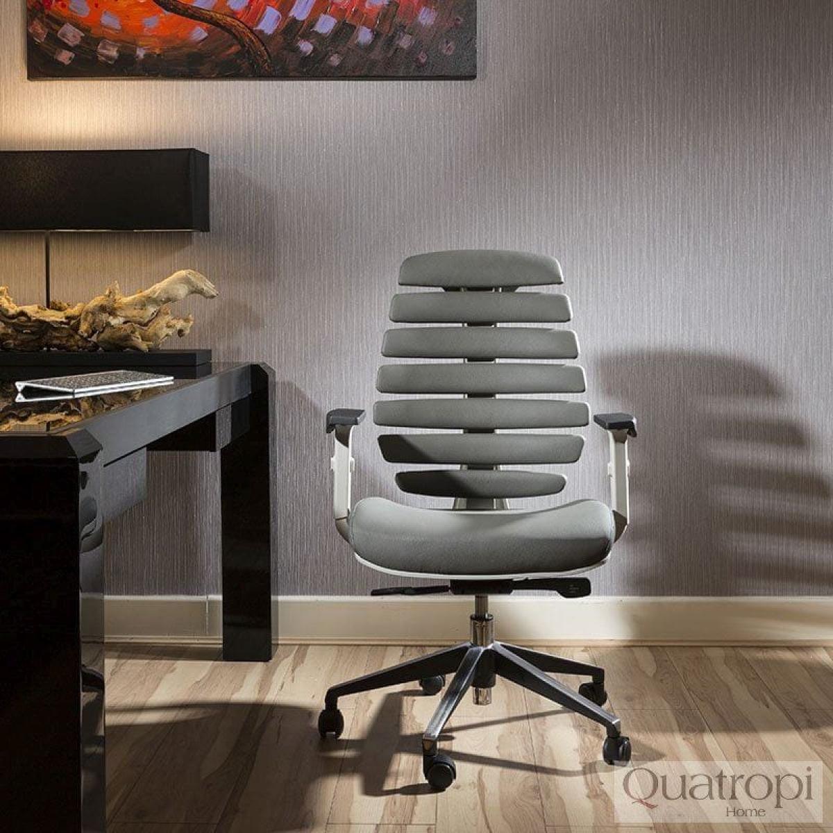 Unique Patented Morphorlogical Fish Bone Style Ultra Ergonomic Luxury Executive Office Chair. Many years of development, testing and refining have resulted in what we believe to be the best office chair ever. The super supple back panel has 3 remarkable features: (1) It will twist and turn exactly like your spine. (2) It has a special tilting function that removes the need to slide the base (3) Each horizontal section of the back is designed to curve around the body for incredible support. Additional Features include adjustable: Seat height, Arm height, Recline angle, sliding seat and adjustable synchronised mechanism. The Fish Bone back provides flex zones ensuring constant support of back and lumbar area, it was designed specifically for those who are in an office chair for eight hours or more per day, and require "Intensive Use Seating" to keep them comfortable for long periods of time. W52cm D52cm H110cm Excellent Back Support Available in other colours