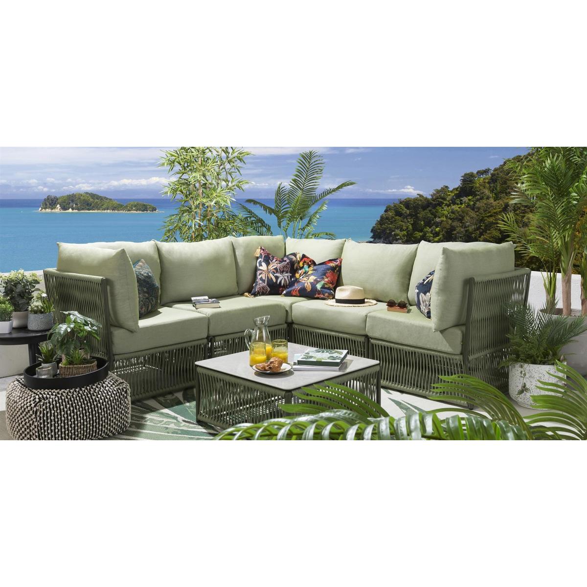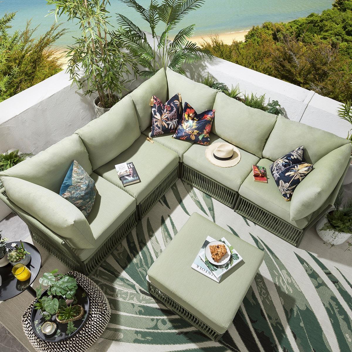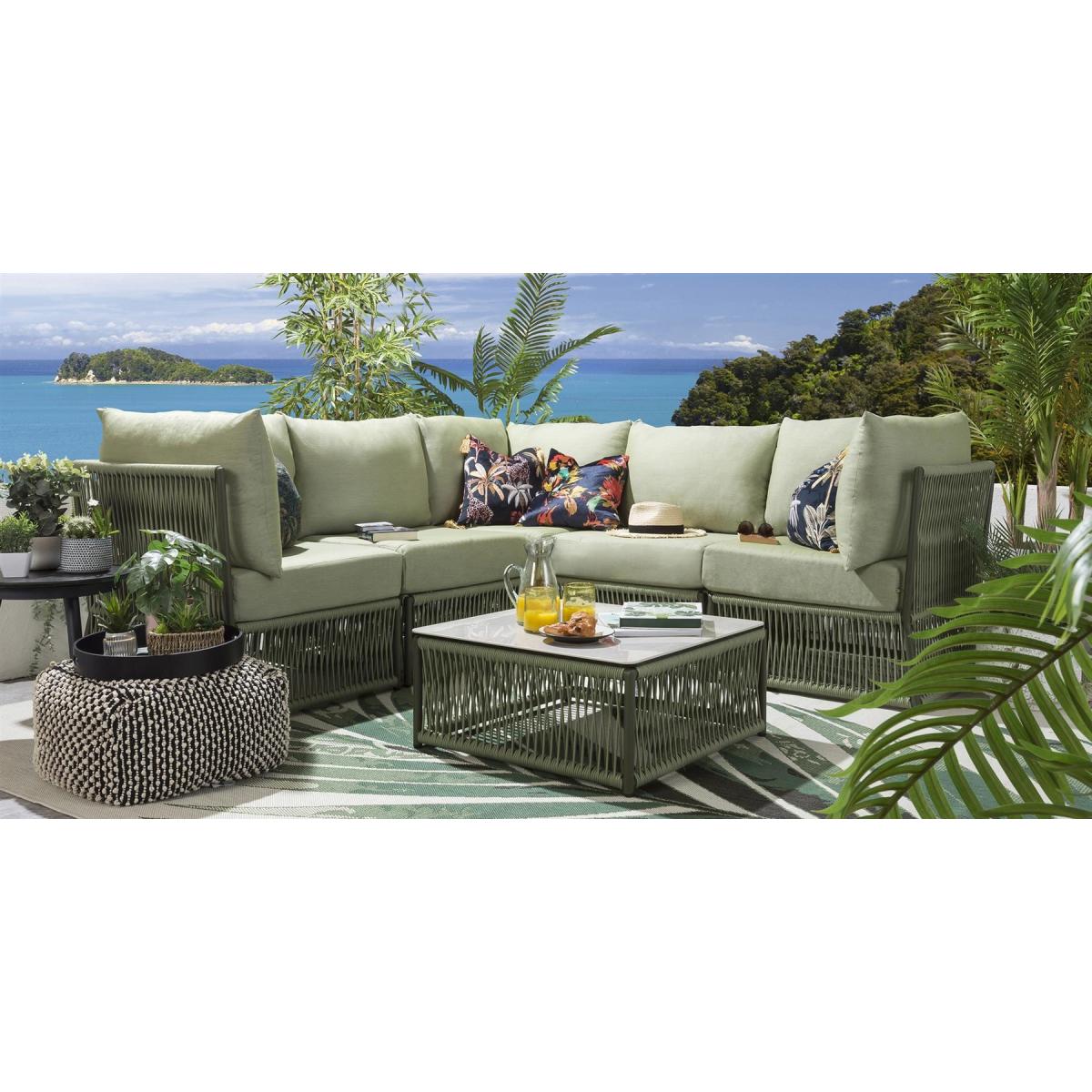 The Quatropi Luxury Cole Modular Outdoor Sofa Range is the perfect choice for outdoor relaxation and entertaining. Featuring luxurious deep cushions, this range of outdoor sofas is designed for maximum comfort and style. The frames are made from lightweight, durable aluminum, which is corrosion-resistant and perfect for withstanding the elements in any season. The sofas come in two color options ' blue or green ' and feature a 5-year warranty. The fabric used is weather-resistant and will remain looking good for years to come, even in the harshest climates. The cushions are filled with a high-grade foam for maximum comfort, and come with winter and rain covers for added protection. The Quatropi Luxury Cole Modular Outdoor Sofa Range is the perfect choice for anyone looking to create a stylish and comfortable outdoor seating area The Cole Modular Outdoor Sofa Range from Quatropi is perfect for al-fresco dining, entertaining, or simply relaxing in the garden. The modular design and range of sizes make it easy to configure a seating area that suits your needs, and the contemporary styling ensures that it will look great no matter what the occasion. W218cm D218cm H75cm Set Includes 3 x corner sections, 2 x middle sections, 1 x coffee table/footstool Free Winter Cover