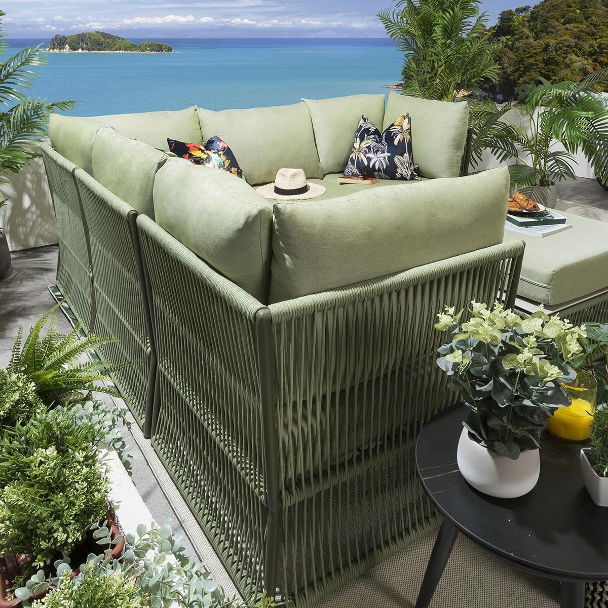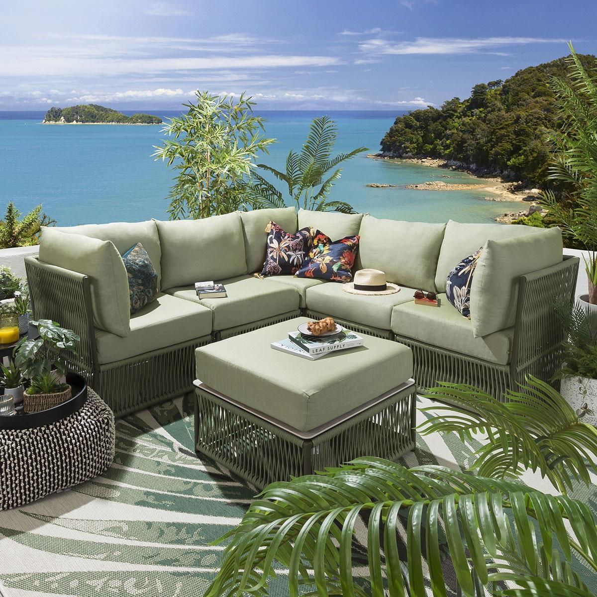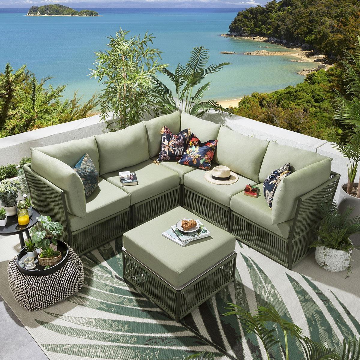 The Quatropi Luxury Cole Modular Outdoor Sofa Range is the perfect choice for outdoor relaxation and entertaining. Featuring luxurious deep cushions, this range of outdoor sofas is designed for maximum comfort and style. The frames are made from lightweight, durable aluminum, which is corrosion-resistant and perfect for withstanding the elements in any season. The sofas come in two color options ' blue or green ' and feature a 5-year warranty. The fabric used is weather-resistant and will remain looking good for years to come, even in the harshest climates. The cushions are filled with a high-grade foam for maximum comfort, and come with winter and rain covers for added protection. The Quatropi Luxury Cole Modular Outdoor Sofa Range is the perfect choice for anyone looking to create a stylish and comfortable outdoor seating area The Cole Modular Outdoor Sofa Range from Quatropi is perfect for al-fresco dining, entertaining, or simply relaxing in the garden. The modular design and range of sizes make it easy to configure a seating area that suits your needs, and the contemporary styling ensures that it will look great no matter what the occasion. W218cm D218cm H75cm Set Includes 3 x corner sections, 2 x middle sections, 1 x coffee table/footstool Free Winter Cover