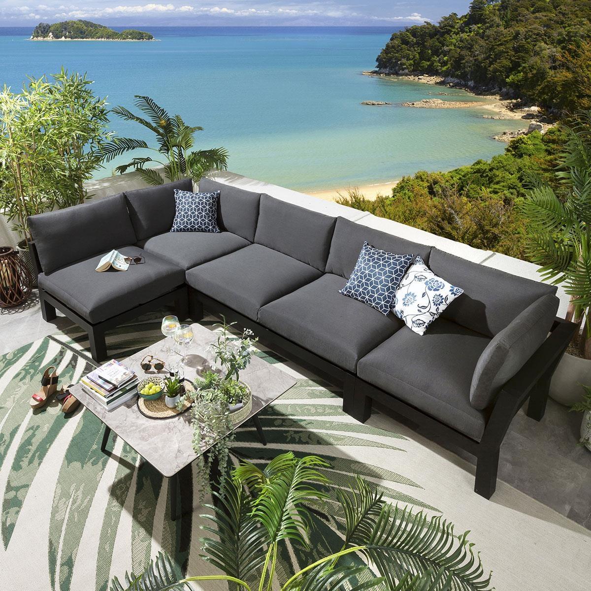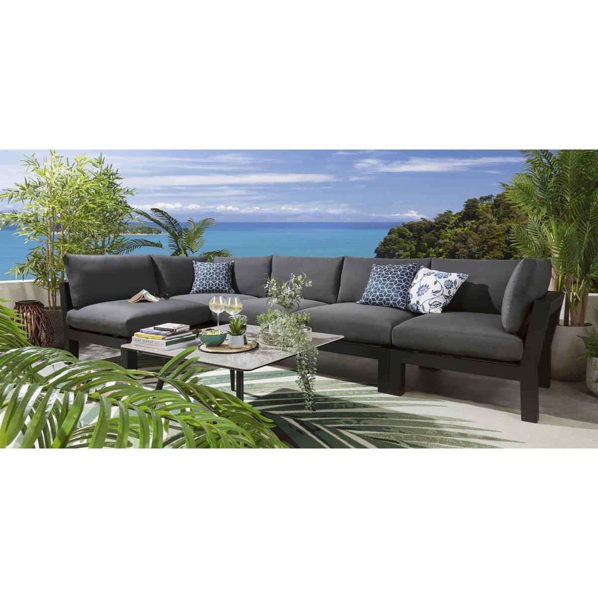 The Quatropi Zara Extra Large Garden Modular Sofa Range is the perfect choice for bringing style, comfort and luxury to your outdoor space. Featuring huge, deep, soft cushions that provide unrivaled levels of comfort, this range is designed to provide maximum comfort and relaxation. The oversized aluminum frame ensures durability and stability, while the weather covers offer further protection from the elements. With many sectional pieces enabling customers to design the ideal shape and size sofa for their patio, this range provides the perfect solution to creating a beautiful outdoor living space. Whether you're entertaining friends and family, or just simply want to relax outdoors, the Quatropi Zara Extra Large Garden Modular Sofa Range is the perfect choice. Spread the cost our with interest-free finance options. Minimum spend applies. W268cm D257cm H91cm Set includes 2 x corner sections, 1 x 2 seater middle sections, 1 x middle section, 1 x coffee table Modular design